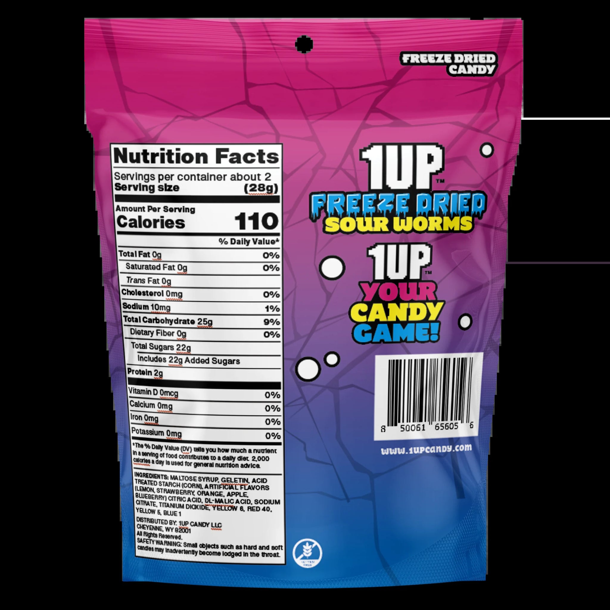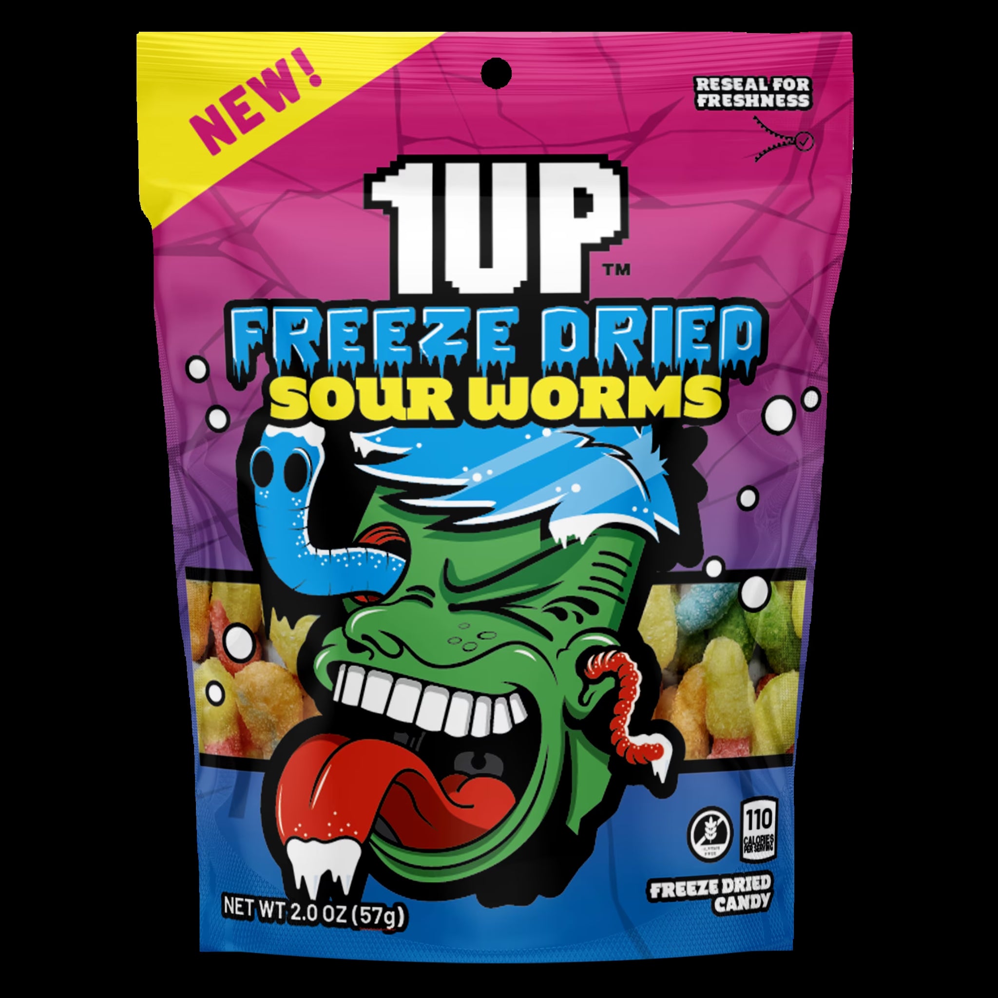 Meet your new favorite sour snack: 1UP Freeze Dried Sour Worms — a wildly crunchy, flavor-packed twist on the classic candy you grew up loving. We’ve taken your favorite chewy, tangy sour worms and transformed them through our freeze-drying process into light, airy explosions of intense fruity flavor and bold sour punch. Each worm delivers a satisfying crunch followed by a mouth-puckering burst of sweet and sour goodness. The once-chewy texture is now crisp and melt-in-your-mouth, making every bite a new adventure in candy innovation. It’s like your favorite worms got superpowers — crunchy, loud, and impossible to put down. Perfect for on-the-go snacking, late-night munchies, gaming fuel, or sharing with friends (if you’re feeling generous), our resealable bag keeps the crunch locked in wherever life takes you. With 1UP Freeze Dried Sour Worms, you’re not just snacking — you’re leveling up. Grab a bag, feel the crunch, and experience sour worms like never before!