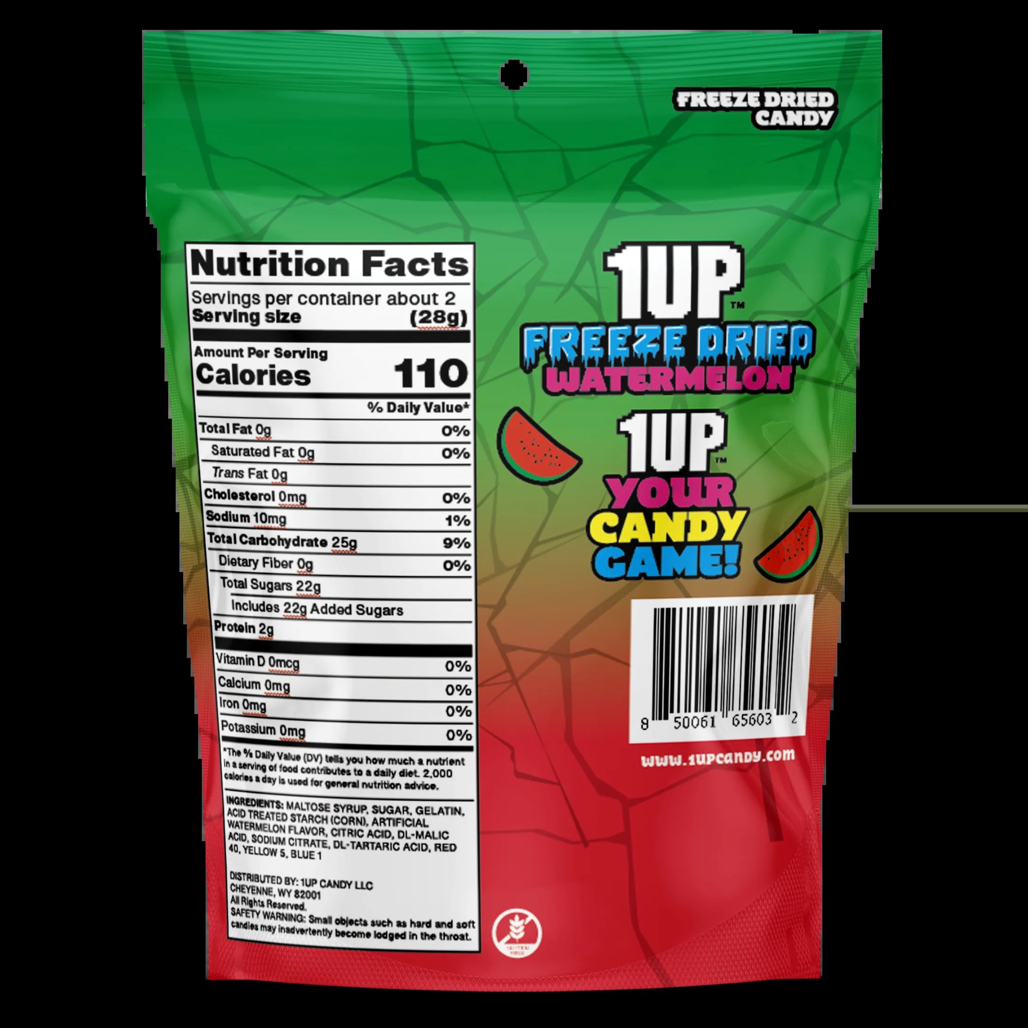 Get ready for a whole new way to enjoy watermelon with 1UP Candy Freeze Dried Watermelon! We’ve taken the juicy, refreshing taste of summer’s favorite fruit and given it an exciting, crunchy twist that will blow your mind. Through our special freeze-drying process, each watermelon piece transforms into a light, airy, and ultra-crunchy snack bursting with sweetness and big flavor. Every bite delivers that unmistakable sweet, juicy watermelon taste you love, but with a crisp texture that keeps you coming back for more. It’s the perfect snack for satisfying your sweet tooth without the mess — no drips, no sticky fingers, just pure watermelon bliss in a crunchy, addictive form. Packaged in a resealable bag, 1UP Freeze Dried Watermelon is ideal for snacking on the go, sharing with friends, or keeping all to yourself during gaming sessions, road trips, or movie nights. Fun, flavorful, and totally unexpected, this is watermelon like you’ve never experienced it before. Join the crunch revolution and level up your snacking game today!