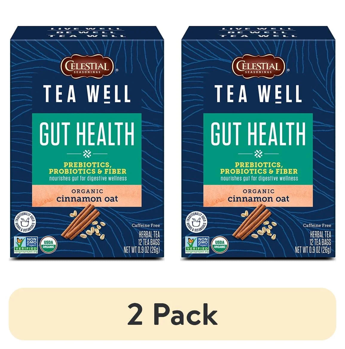 (2 Pack) Celestial Seasonings Teawell Gut Health Organic Cinnamon Oat Herbal Tea Bags, 12 Count