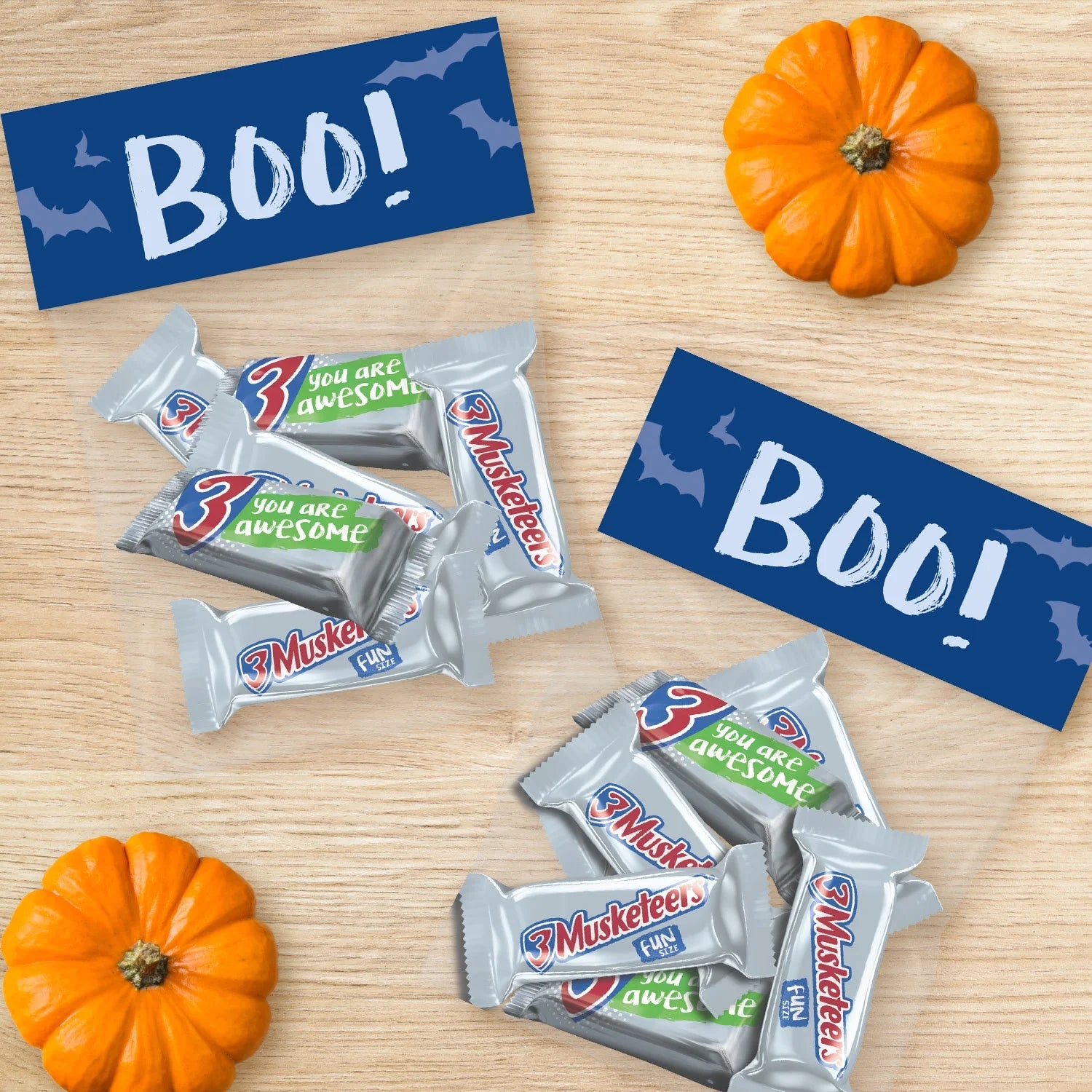 Get ready for Halloween night with this bag of 3 MUSKETEERS Milk Chocolate Halloween Candy Bulk Pack. Each bag contains fun size individually wrapped 3 MUSKETEERS, light and fluffy whipped chocolate center and enrobed in rich milk chocolate. These festive treats are a delicious way to fill up your candy bowl with Halloween flair, whether at home or at the office. Enjoy the classic taste of real milk chocolate with each 3 MUSKETEERS Halloween Chocolate Bar in this fun Halloween blend.