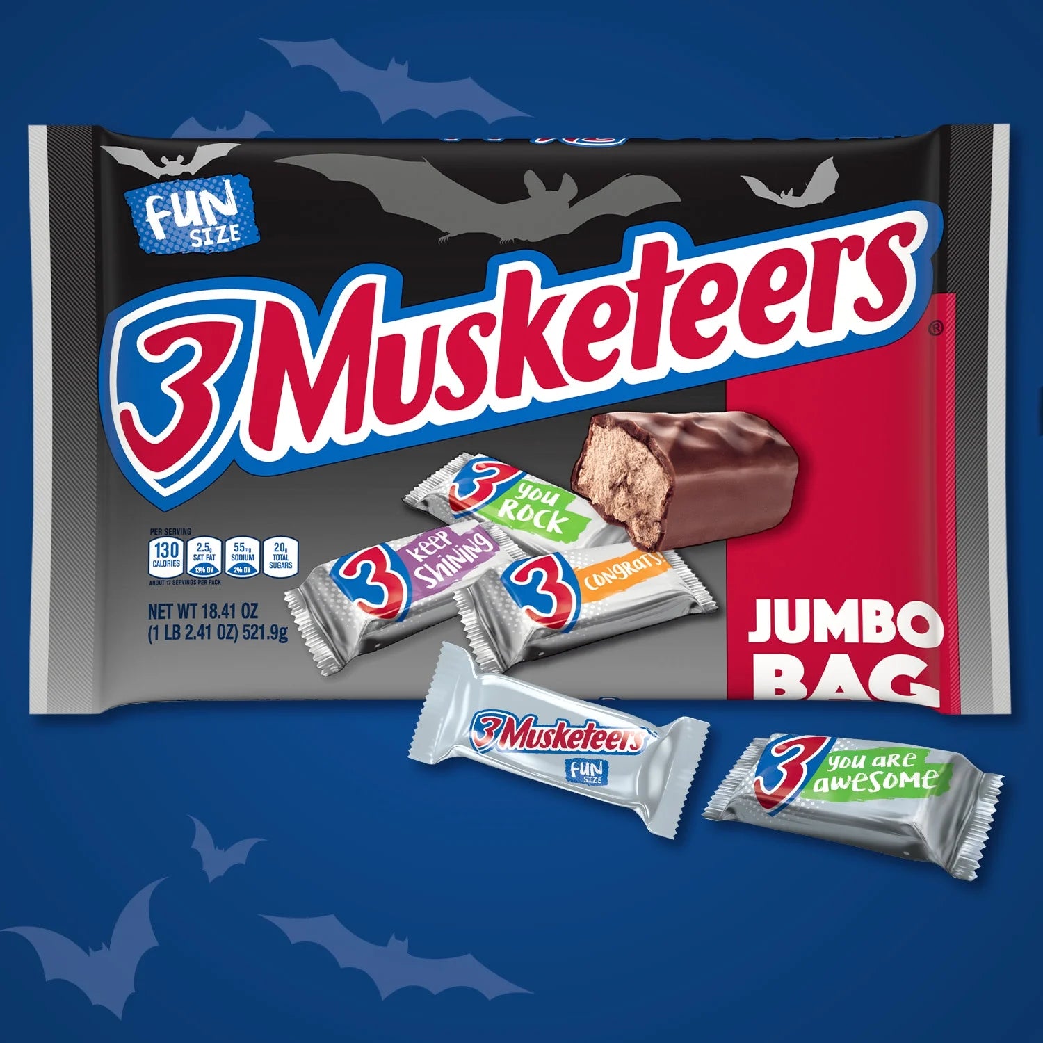 - Ghost all out during Halloween movie marathons with deliciously whipped chewy Fun Size 3 MUSKETEERS chocolate candy bars