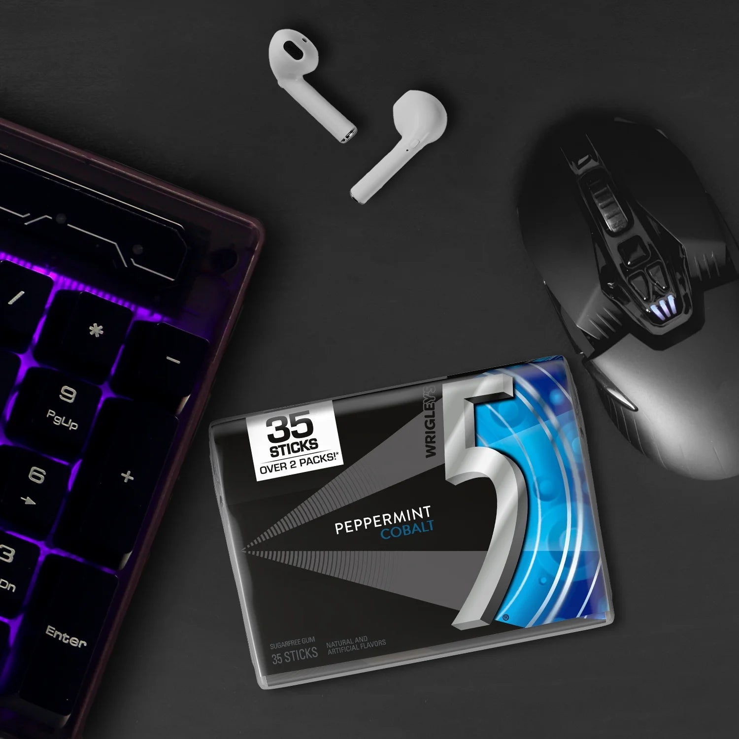 Ever wonder what it feels like to chew 5 Gum? Icy, cool, chilling, invigorating. Chew your way into the world of intense frosty flavor with 5 Gum Peppermint Cobalt Sugarfree Gum. Each stick of sugarless mint gum delivers a bold burst of peppermint flavor that immerses your senses and awakens your world. Picture this: binge-watching your favorite show while chewing icy 5 Gum Peppermint Cobalt. How about blasting your favorite playlist and savoring cool peppermint flavor of 5 Gum at the same time. Talk about head-to-toe stimulation. Don’t keep the icy experience of 5 Gum Peppermint Cobalt to yourself. Take this sleek 35-stick pack of 5 Gum Peppermint Cobalt Sugar Free Gum wherever you go and share the peppermint wave with a chew of 5 Gum. Stimulate your senses with 5 Gum Peppermint Cobalt Sugarfree Gum.