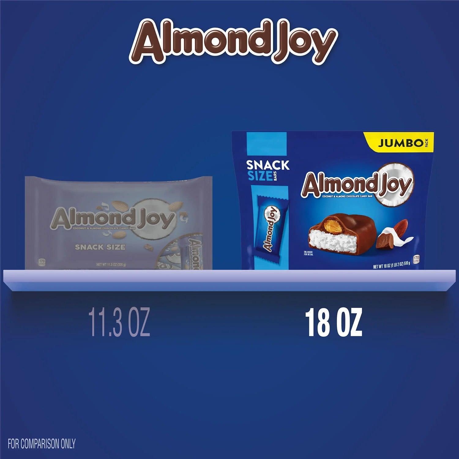 - Contains one (1) 18-ounce jumbo pack of ALMOND JOY Coconut and Almond Chocolate Snack Size Candy Bars