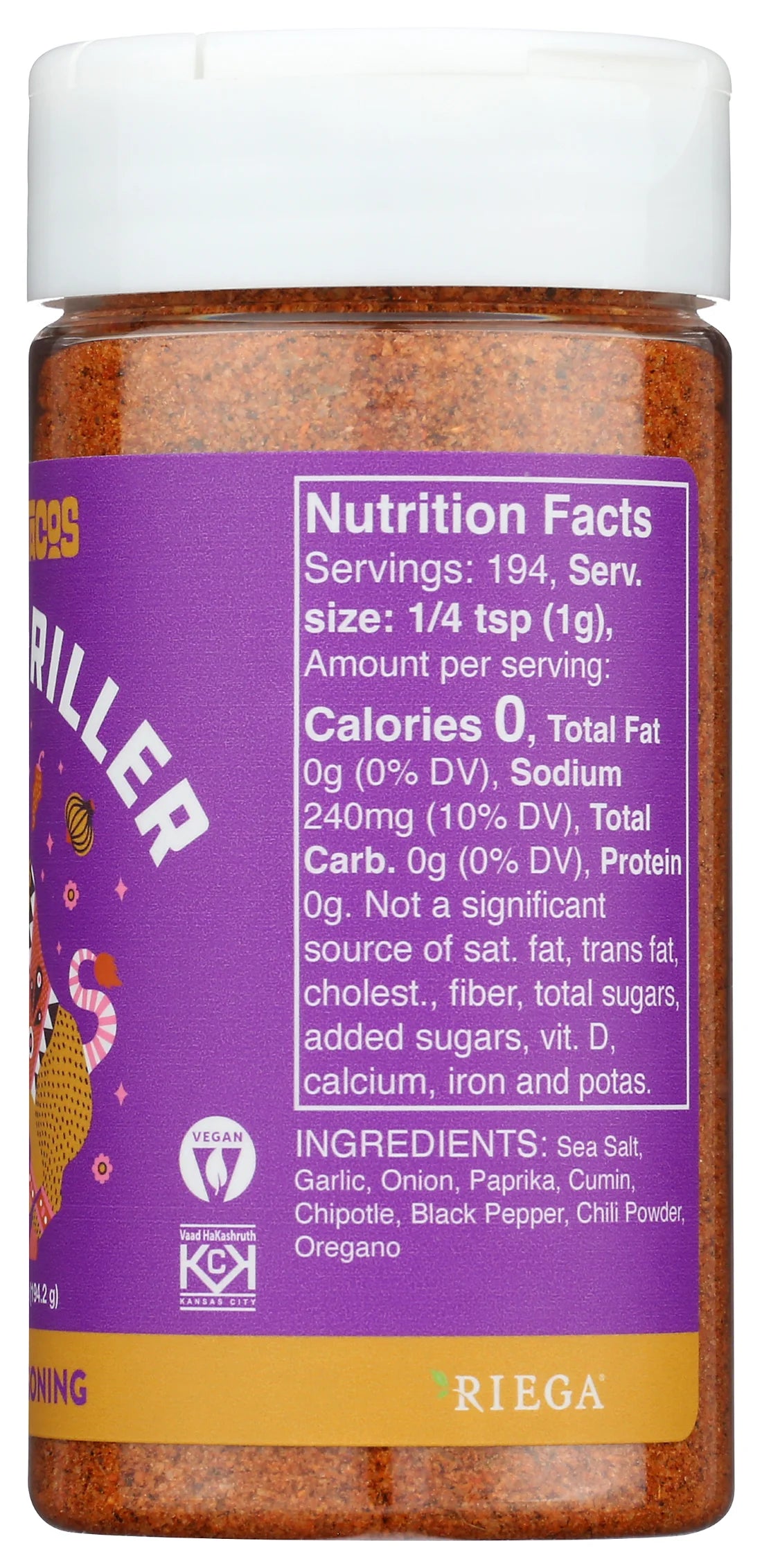 Sea Salt, Garlic, Onion, Paprika, Cumin, Chipotle, Black Pepper, Chili Powder, Oregano/div>