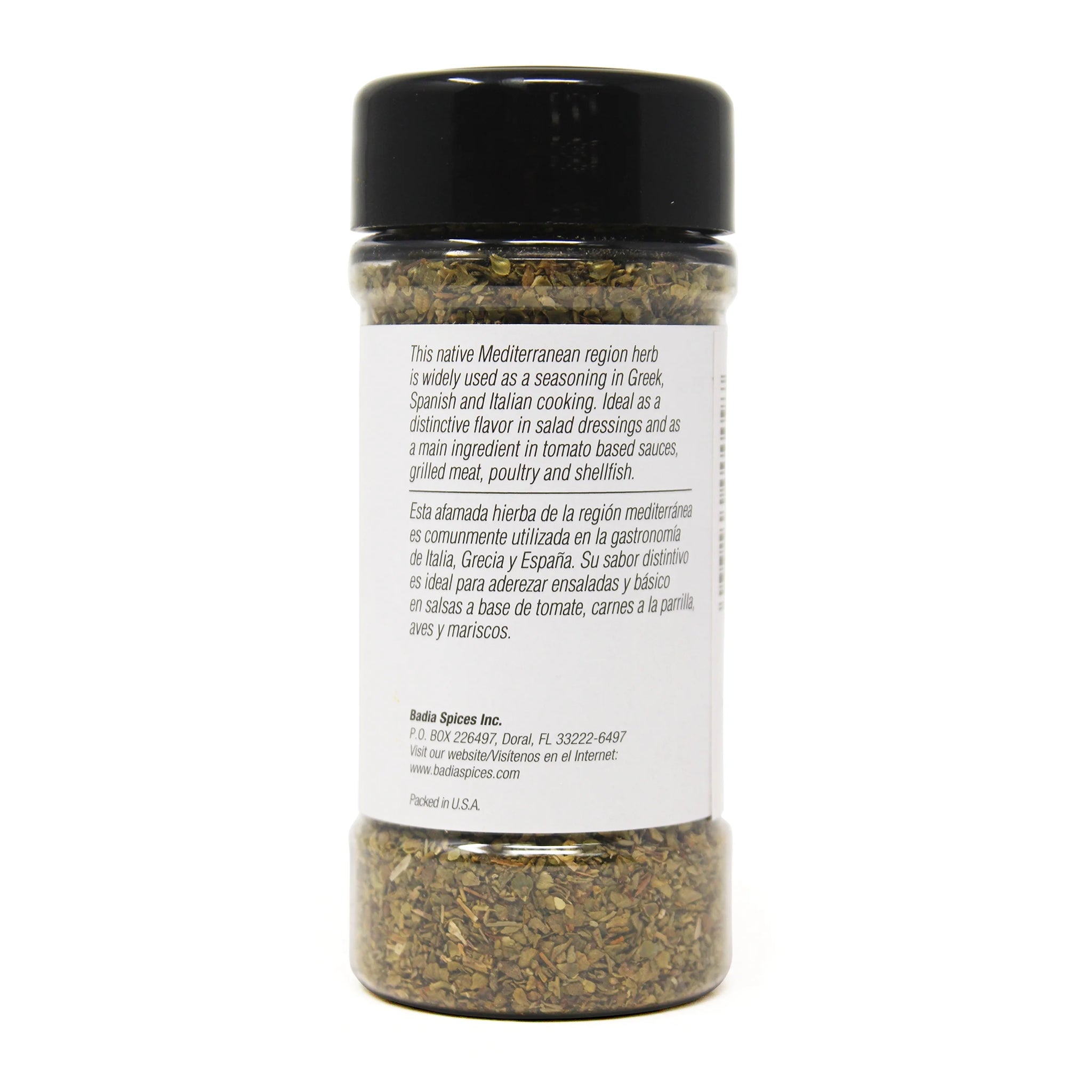 A gluten free food. This native Mediterranean region herb is widely used as a seasoning in Greek, Spanish and Italian cooking. Ideal as a distinctive flavor in salad dressings and as a main ingredient in tomato based sauces, grilled meat, poultry and shellfish. Visit our website: www.badiaspices. Please recycle! Packed in USA.