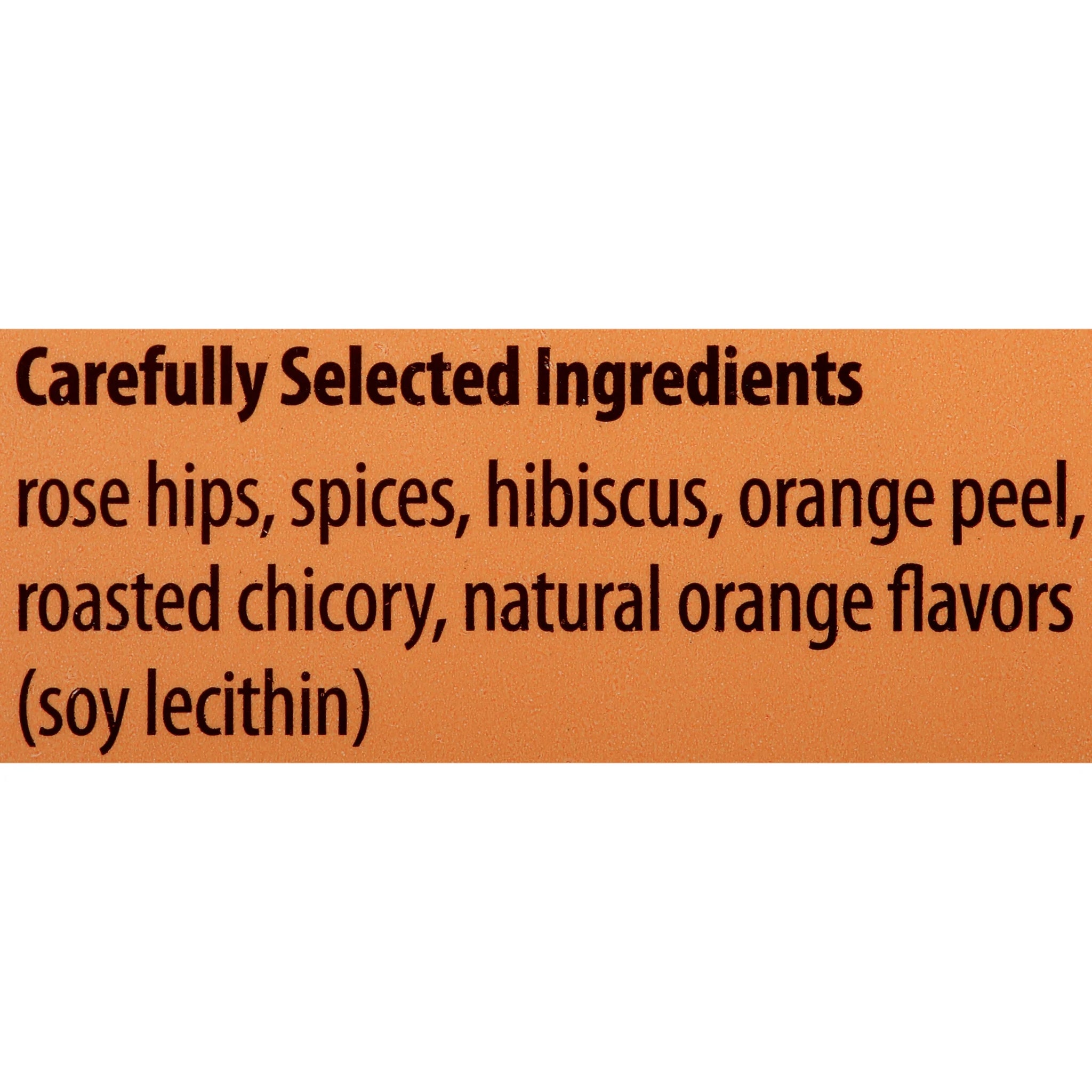 Rose Hips, Spices, Hibiscus, Orange Peel, Roasted Chicory, natural Orange Flavors (Soy Lecithin)./div>