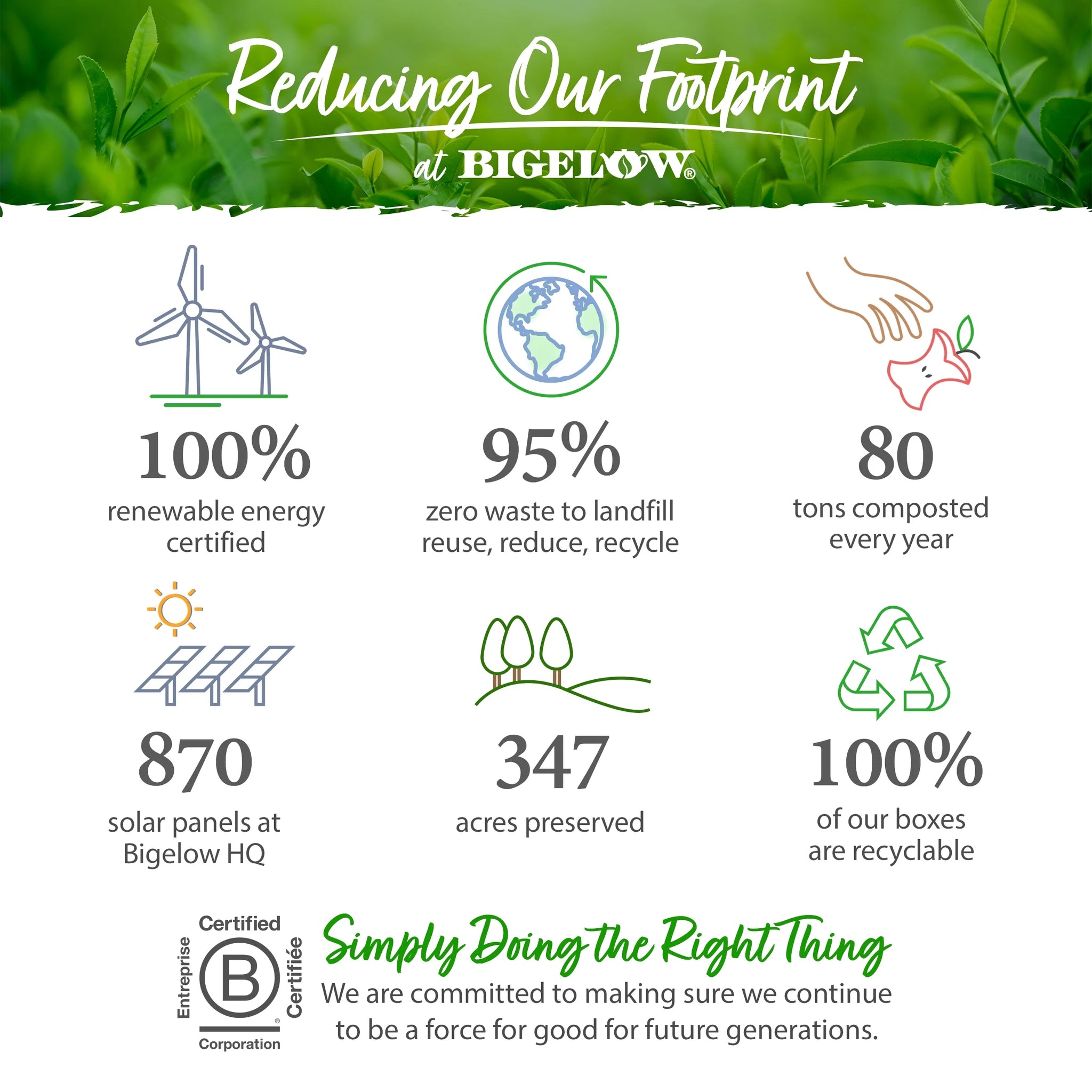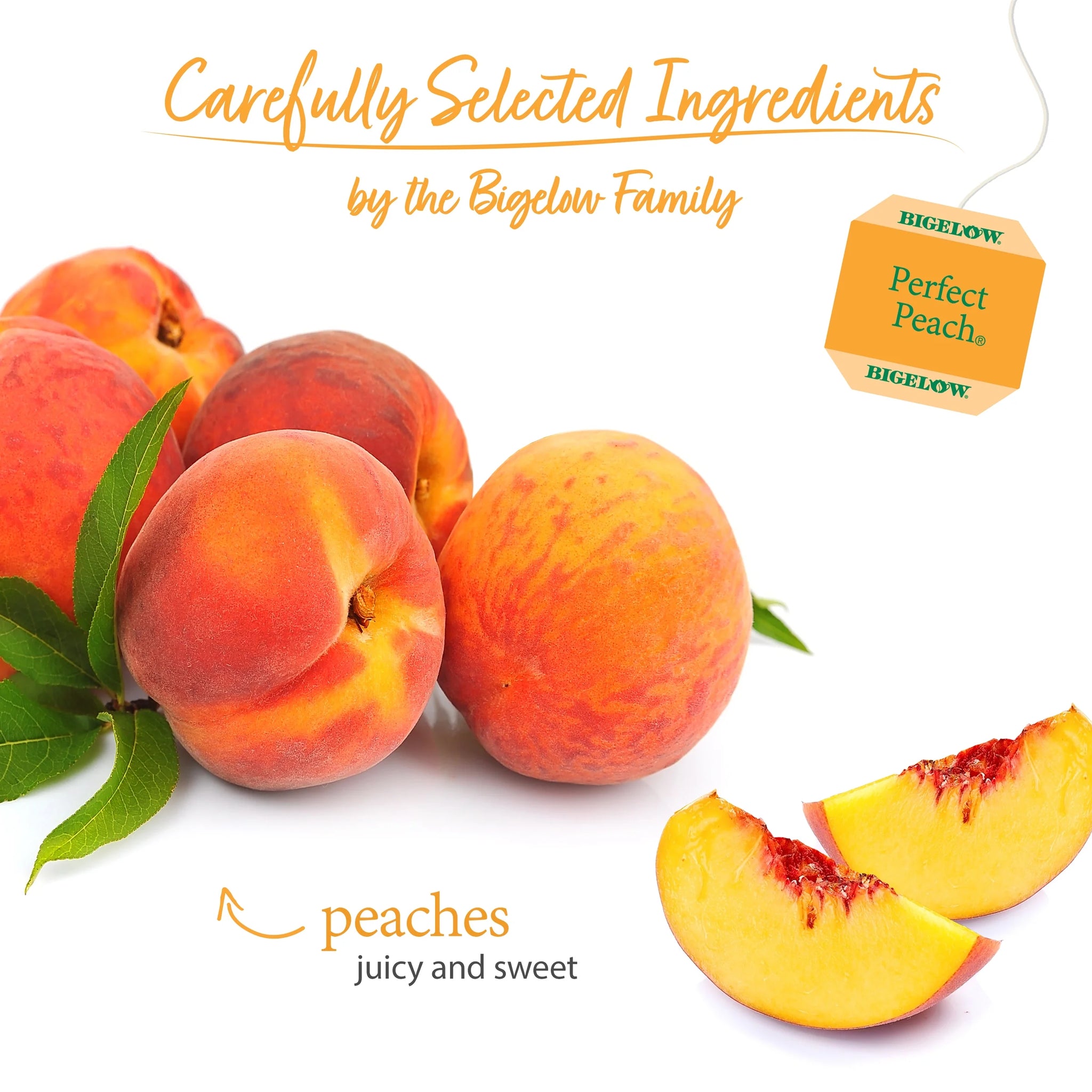 Bigelow Perfect Peach, Caffeine Free, Herbal Tea Bags, Our Perfect Peach is like a -picked peach perfectly blended with warm spice. What makes Bigelow Perfect Peach herbal tea taste so special? Our ingredients are carefully selected by the Bigelow family to deliver you an uncompromised quality tea experience. This is one of our family's favorite blends, we find it both soothing and delightful. Each box of this caffeine-free herbal tea contains 20 tea bags. To maintain the integrity of our exceptional ingredients, we wrap each tea bag in a foil pouch to ensure the fullest flavor, freshness, and aroma. It also makes it convenient to take Bigelow Tea everywhere you go. Bigelow Tea is proud to be 100% family owned and operated since 1945. We are honored to be a Certified B Corporation. This achievement recognizes our commitment to the highest standards of social and environmental impact.