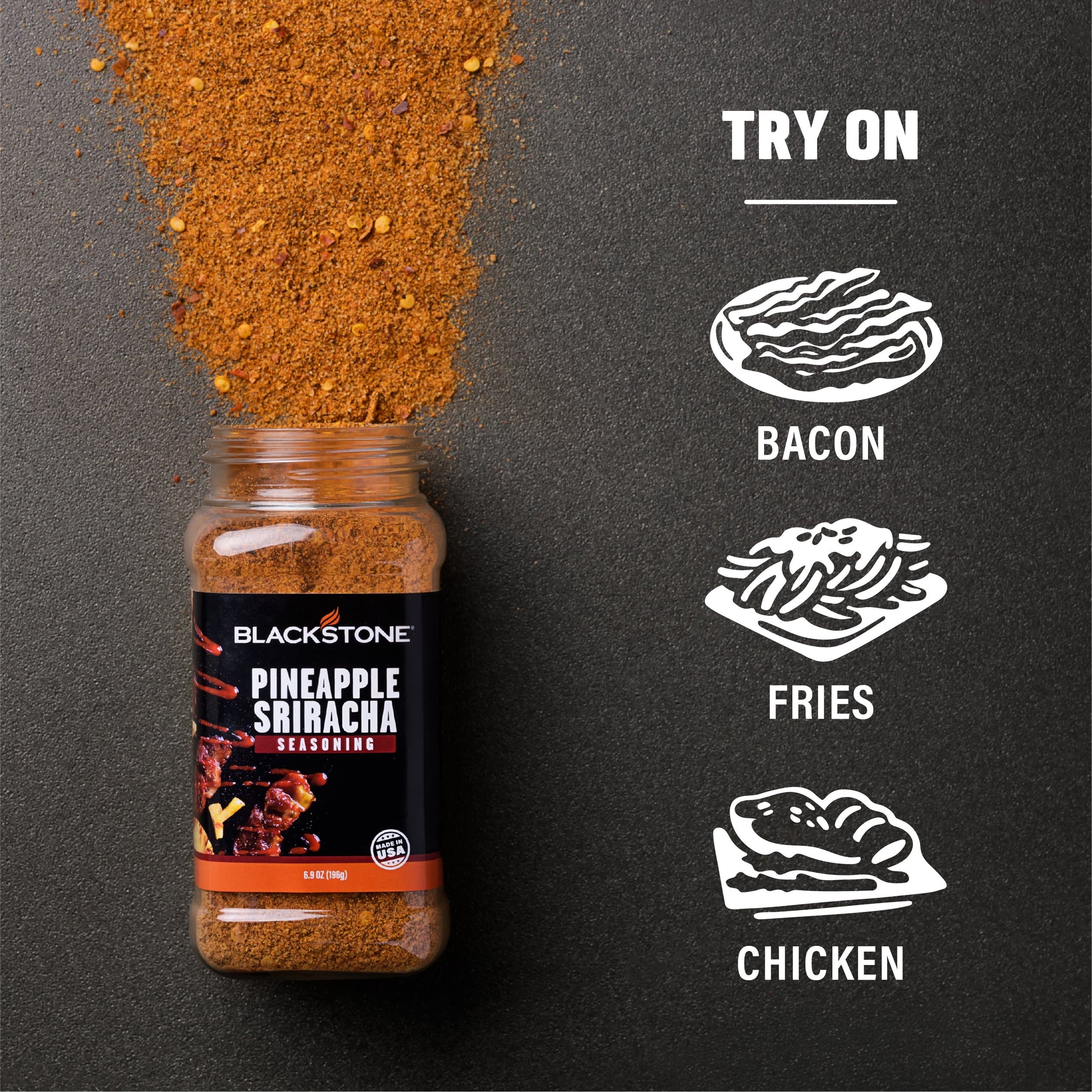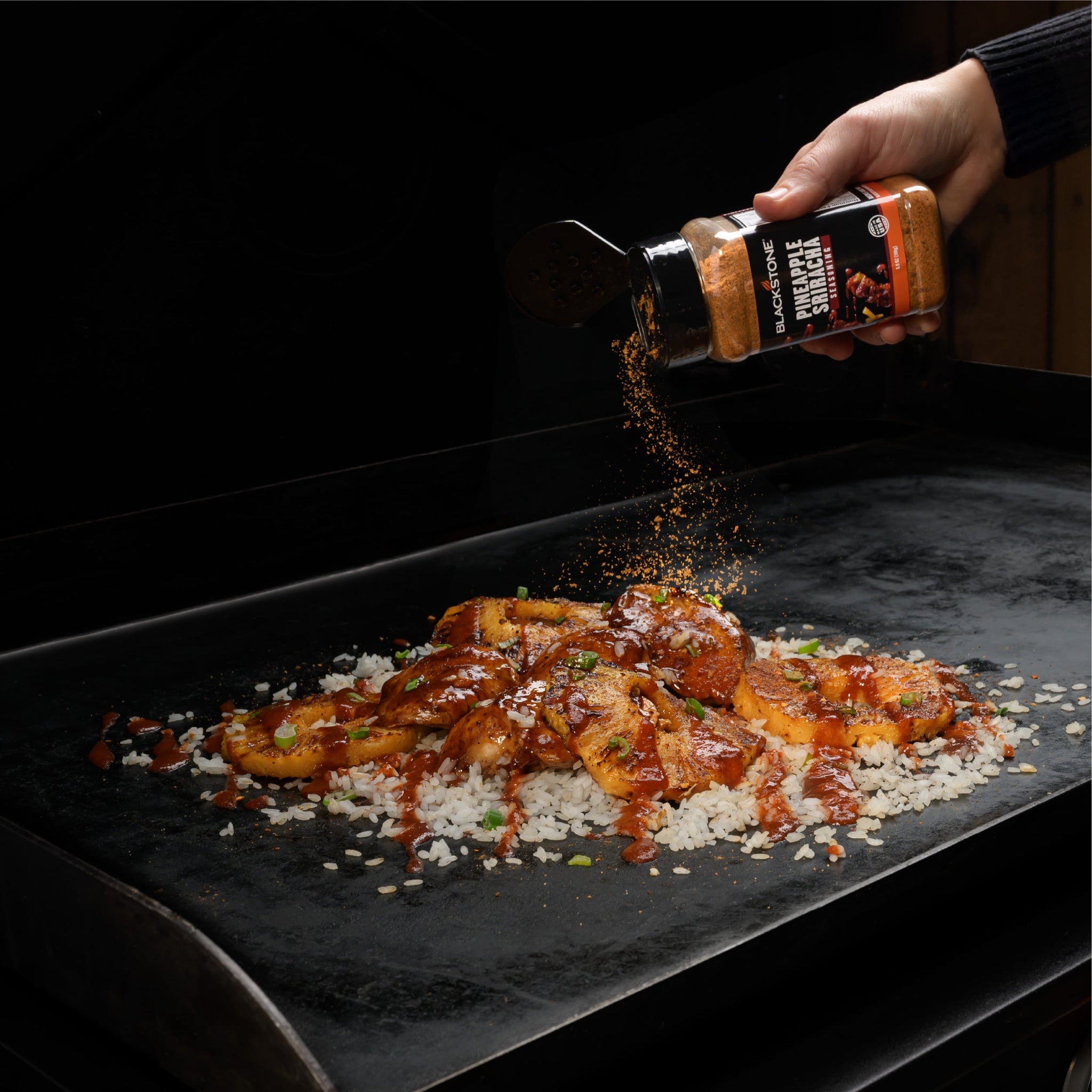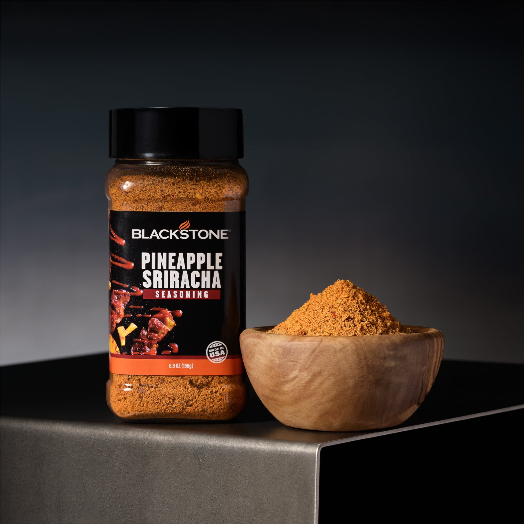 Blackstone Pineapple Sriracha Savory Dry Mix Seasoning will take you to new places with Korean-inspired red chili Sriracha and tropical flavors in the perfect mix. This granular gluten-free seasoning is designed not only to help you make a mouthwatering menu but also help your seasoned griddle coating last, thanks to its gourmet griddle blend. As bacon sizzles on your Blackstone Griddle, sweet red flavor caramelizing on top is guaranteed to thrill your taste buds. Its bold, hot, sweet, and savory aroma will draw people around the griddle bringing good company together like tasty food always does. Pineapple Sriracha will quickly become a new favorite and new flavor you won’t want to miss out on.