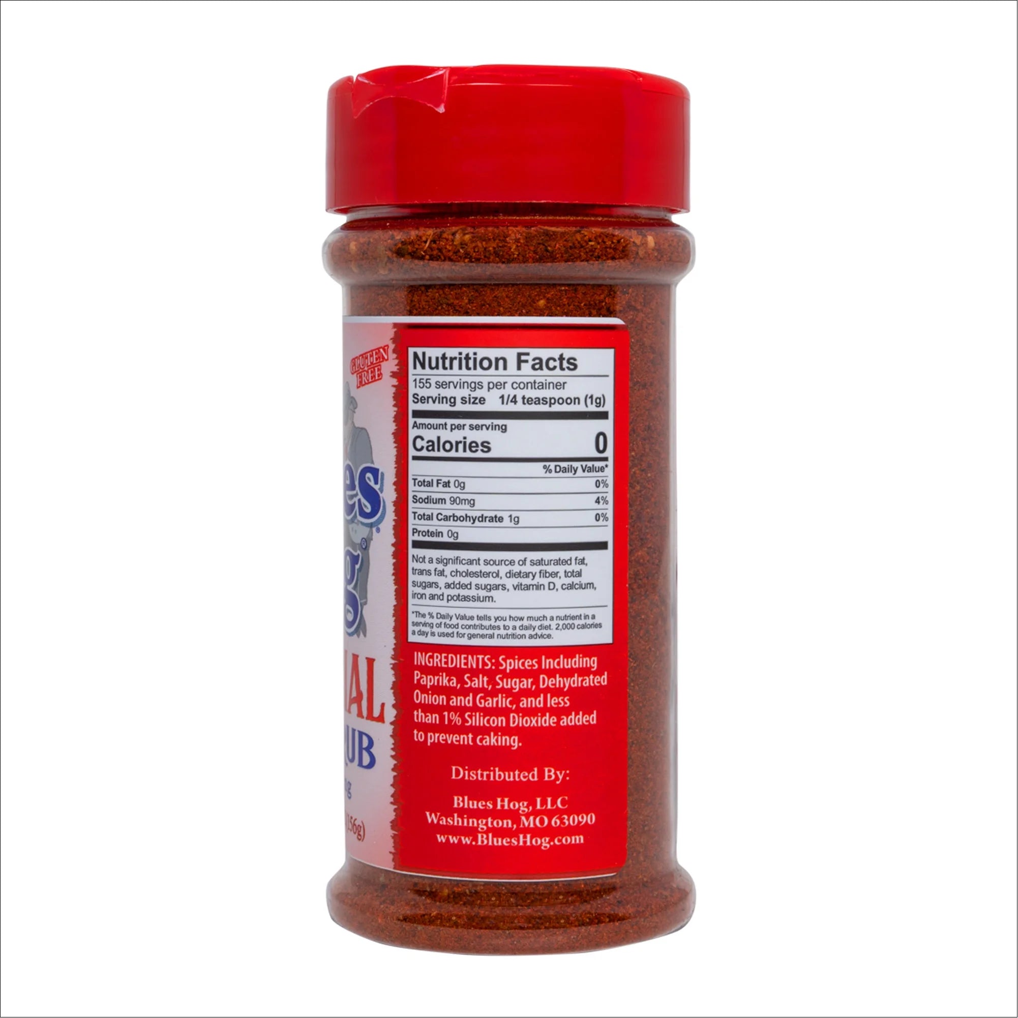 The "Rub" acts as a dry marinade by combining a unique blend of spices which enhances the natural flavor of beef, pork, poultry, wild game, fish, and compliments vegetables as well. Blues Hog Dry Rub Seasoning is ideal for the grill, oven, or smoker. Blues Hog Barbecue began in the rolling hills of Tennessee with pork shoulders and whole hogs cooked over hickory coals for family and community.