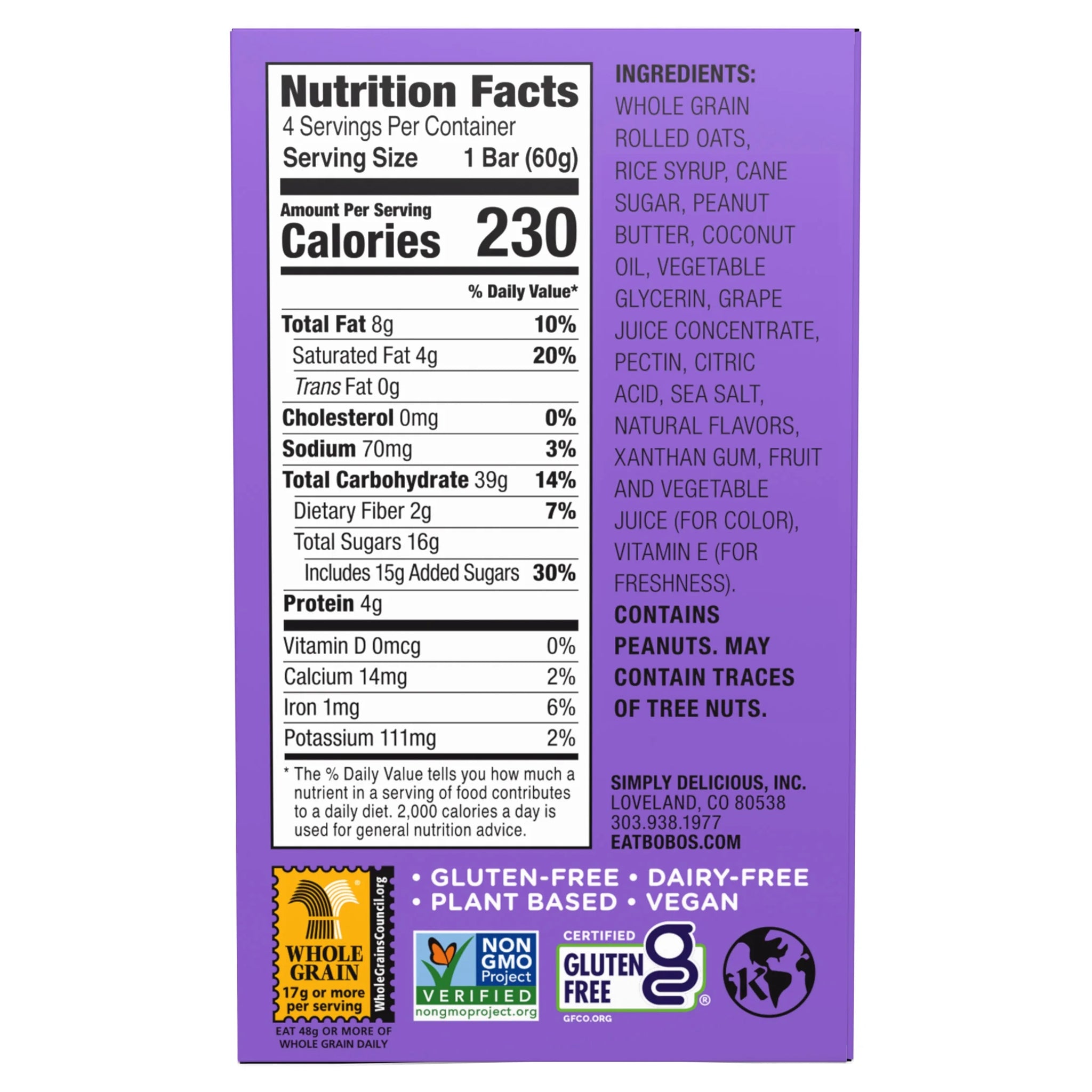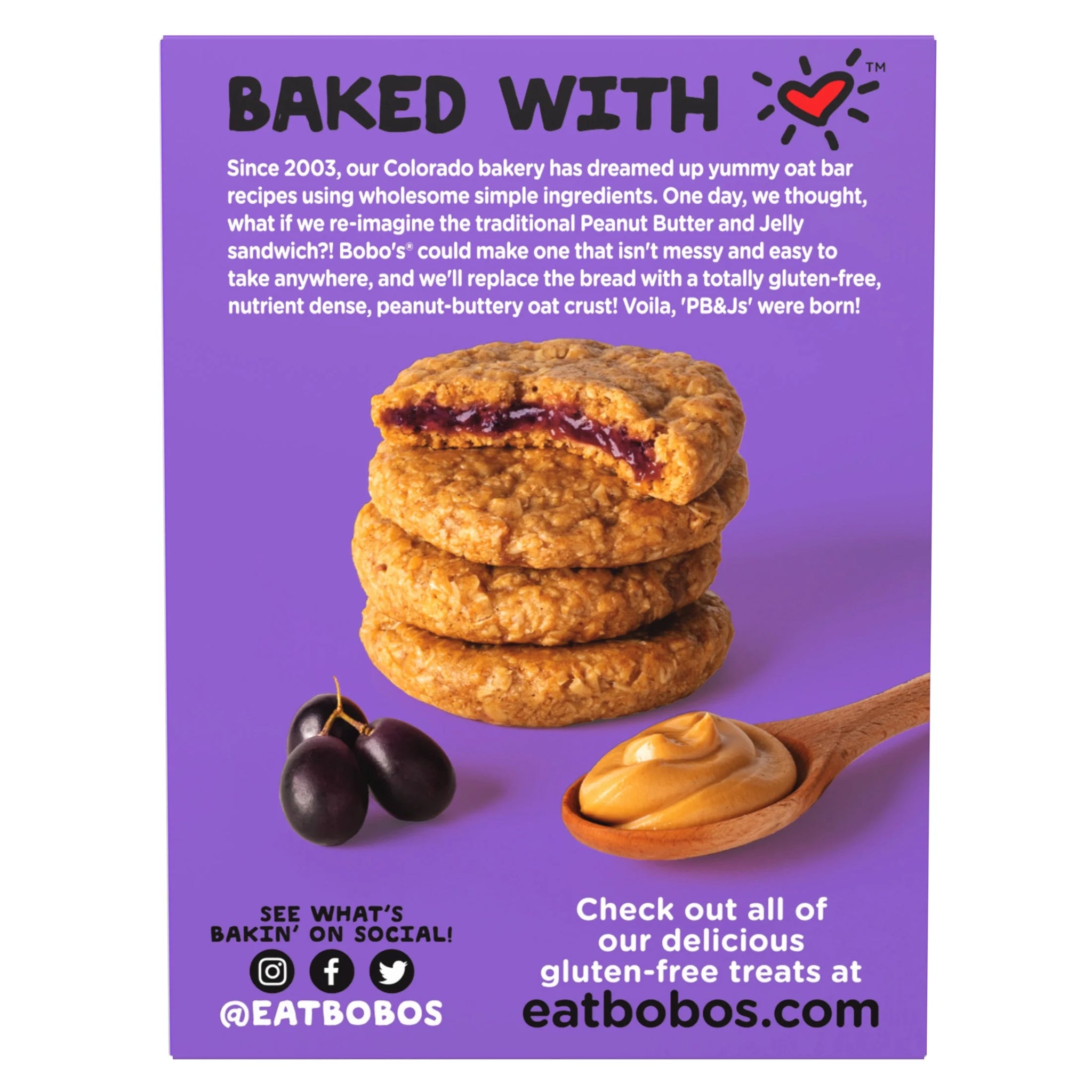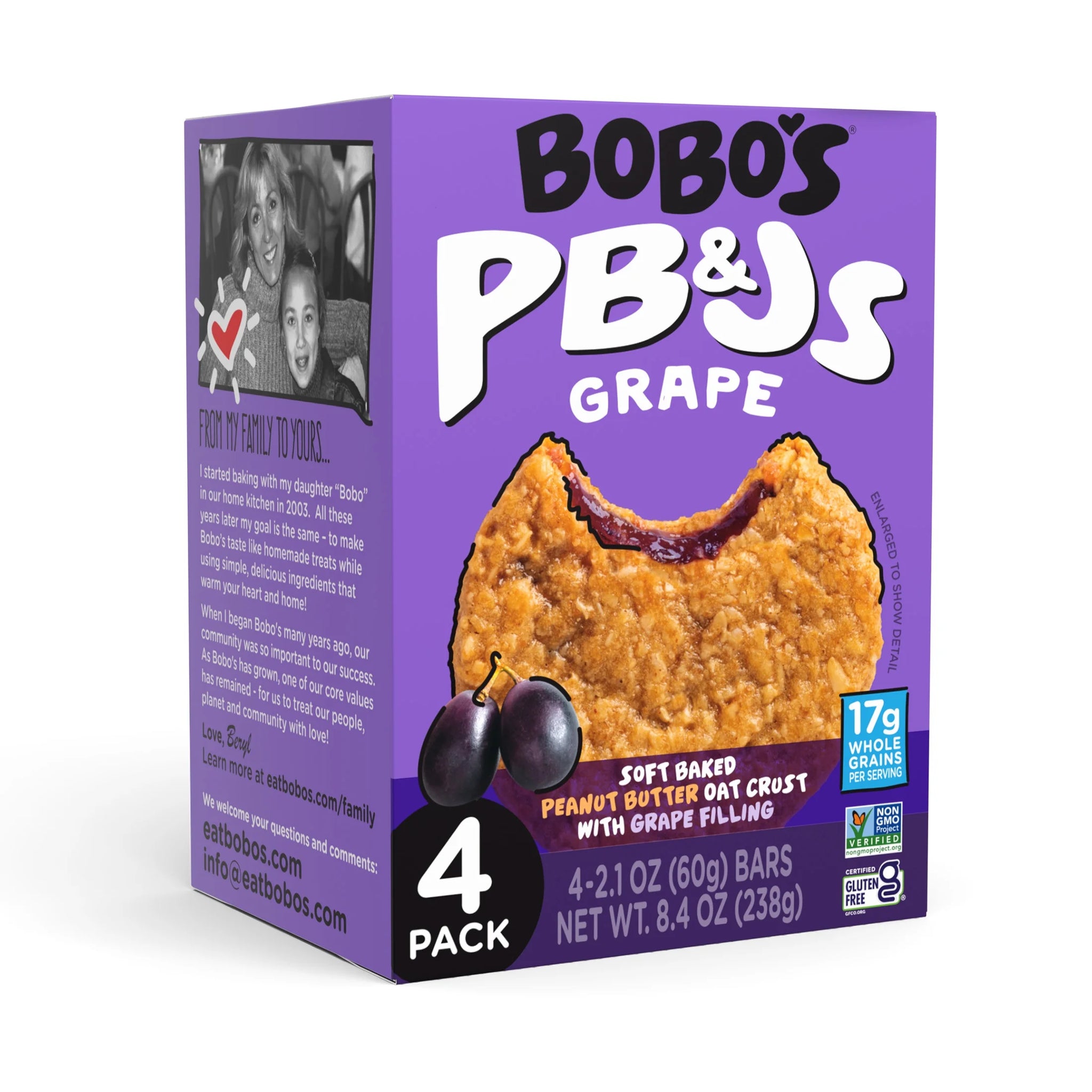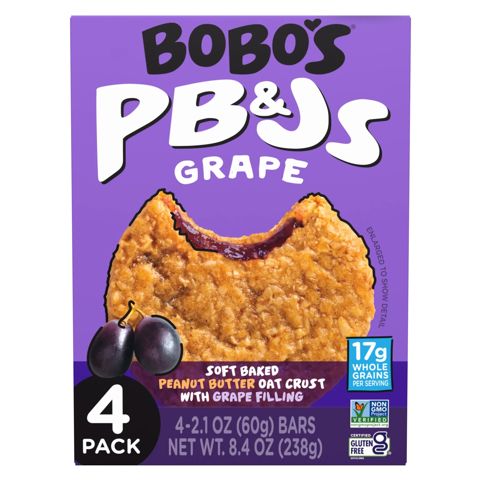 Bobo'S 2.1 Oz,4 CT Pb&Js Grape, Peanut Butter Oat Crust Snack Bars, Gluten Free, 4 Count, 2.1 Oz Each