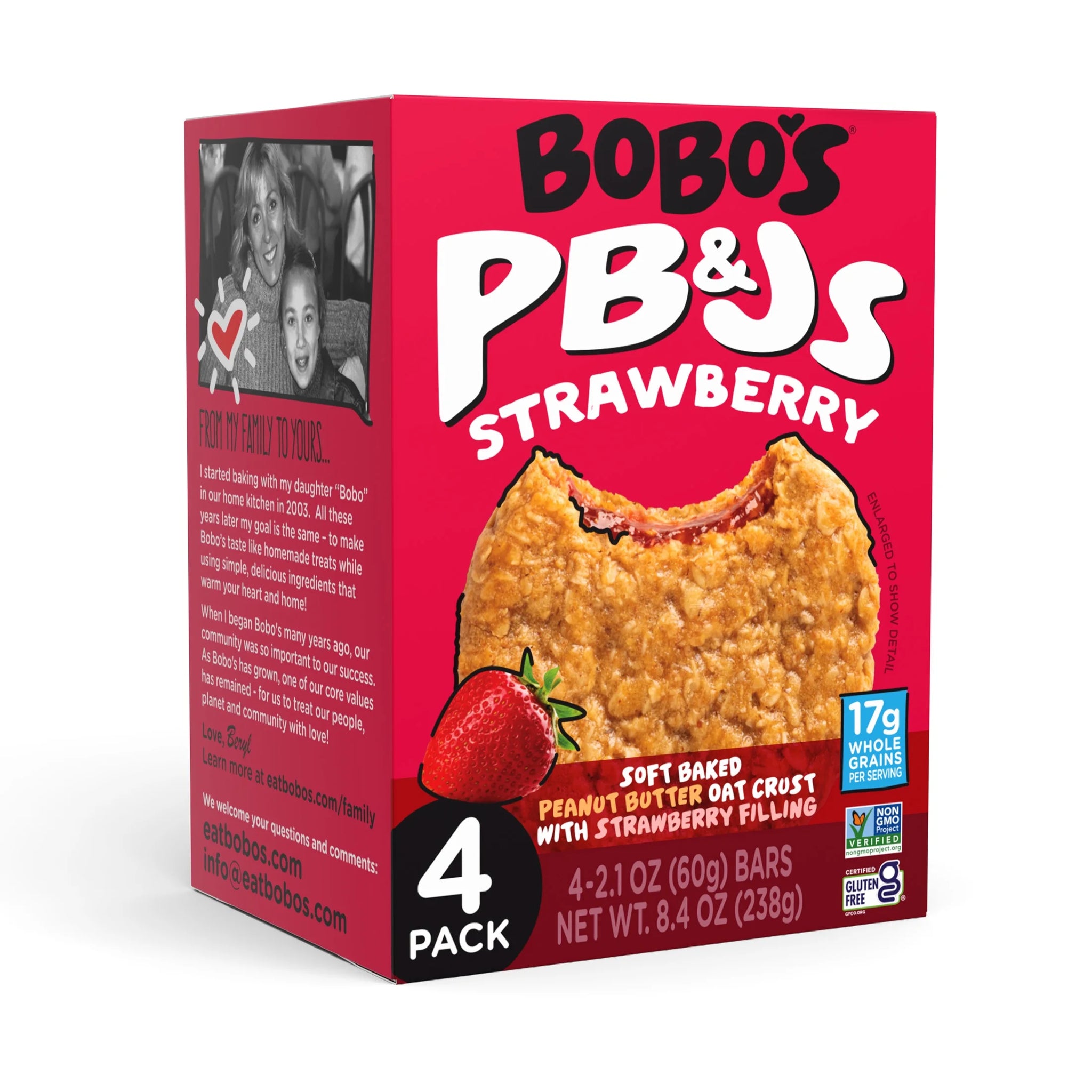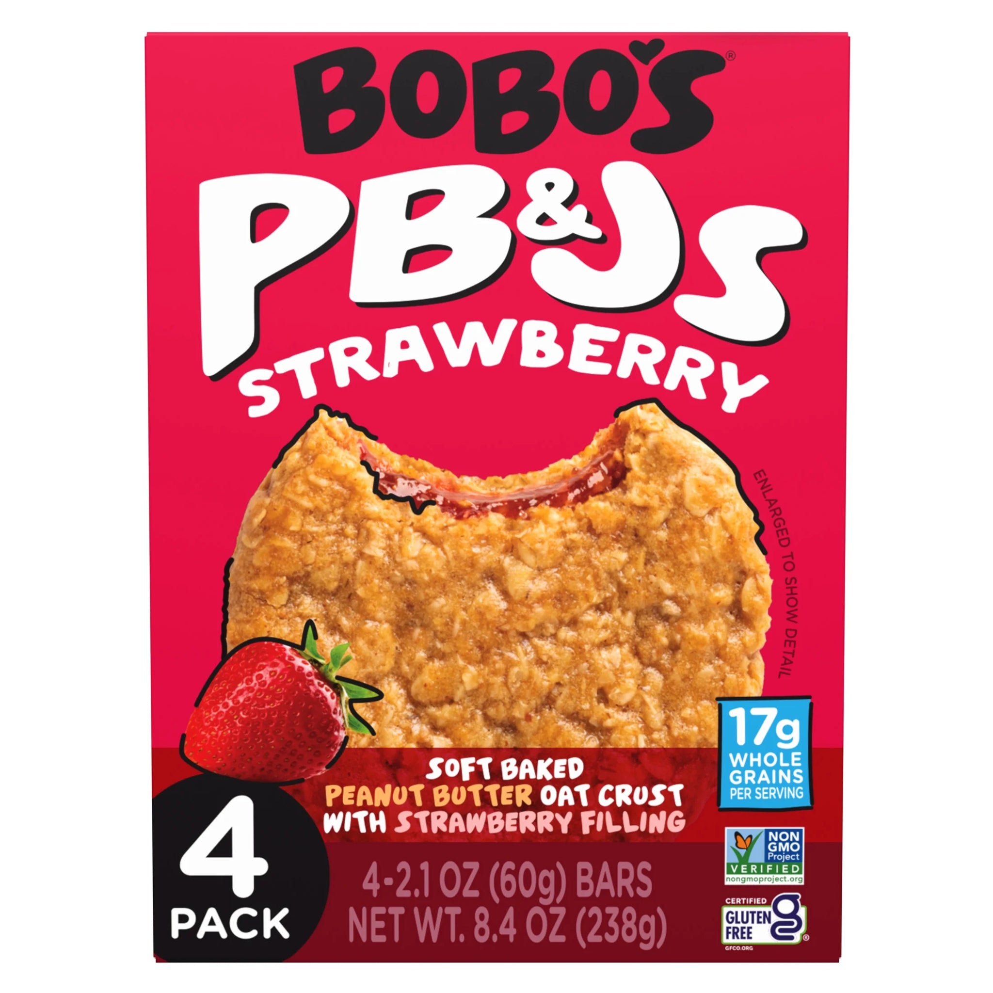 Bobo'S 2.1Oz,4 Pack Pb&Js, Peanut Butter Oat Crust with Strawberry Filling, of 2.1Oz Oat Snacks
