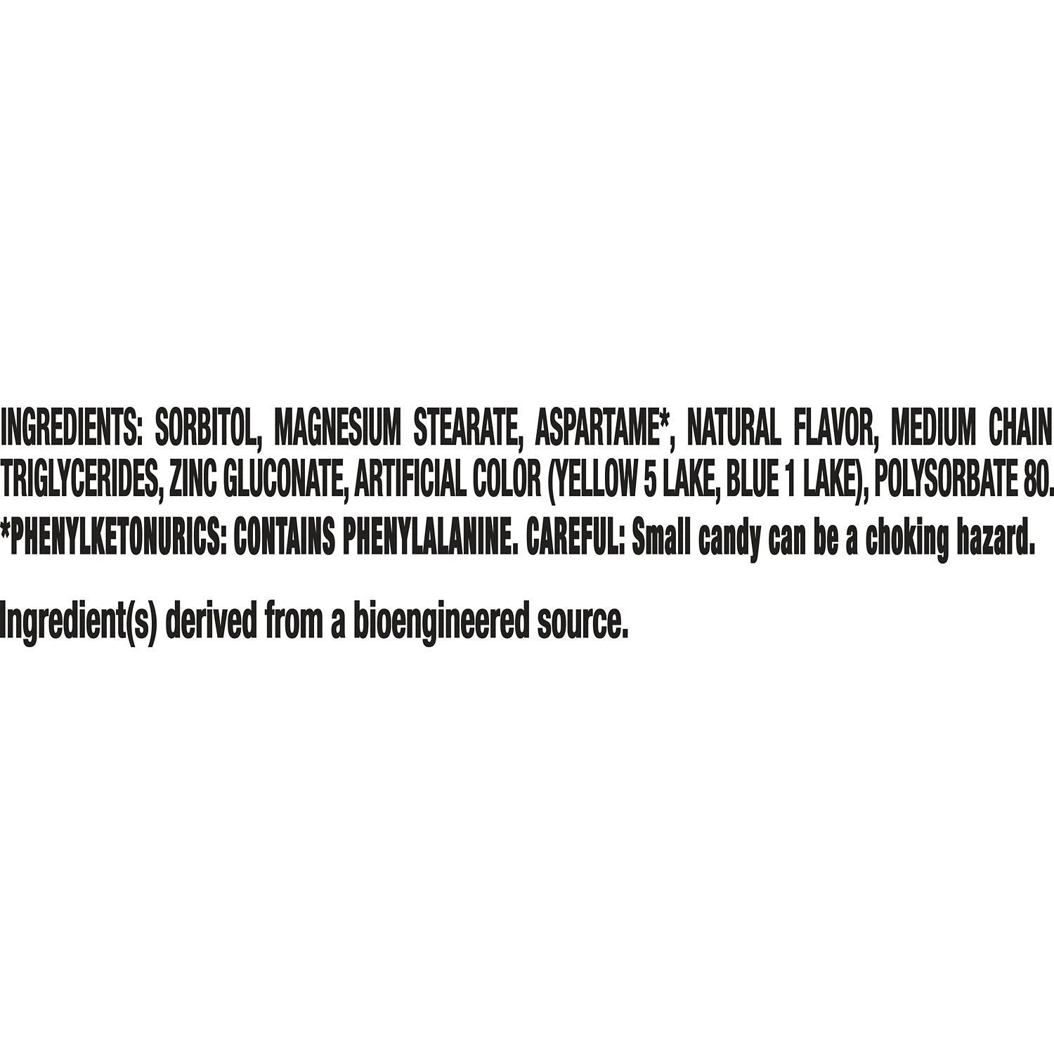 SORBITOL; MAGNESIUM STEARATE; ASPARTAME*; NATURAL FLAVOR; MEDIUM CHAIN TRIGLYCERIDES; ZINC GLUCONATE; ARTIFICIAL COLOR [YELLOW 5 LAKE; BLUE 1 LAKE]; POLYSORBATE 80 null *PHENYLKETONURICS: CONTAINS PHENYLALANINE/div>