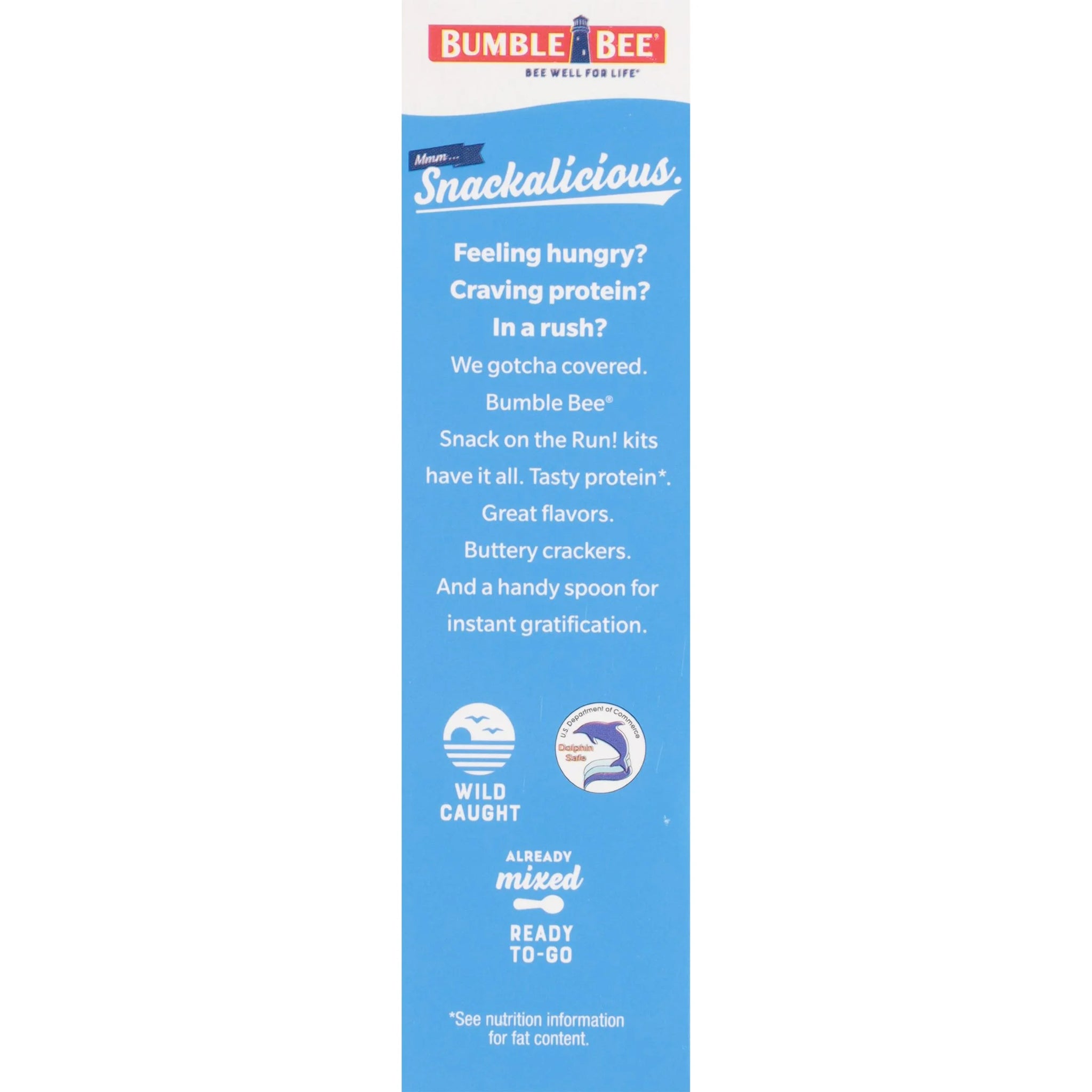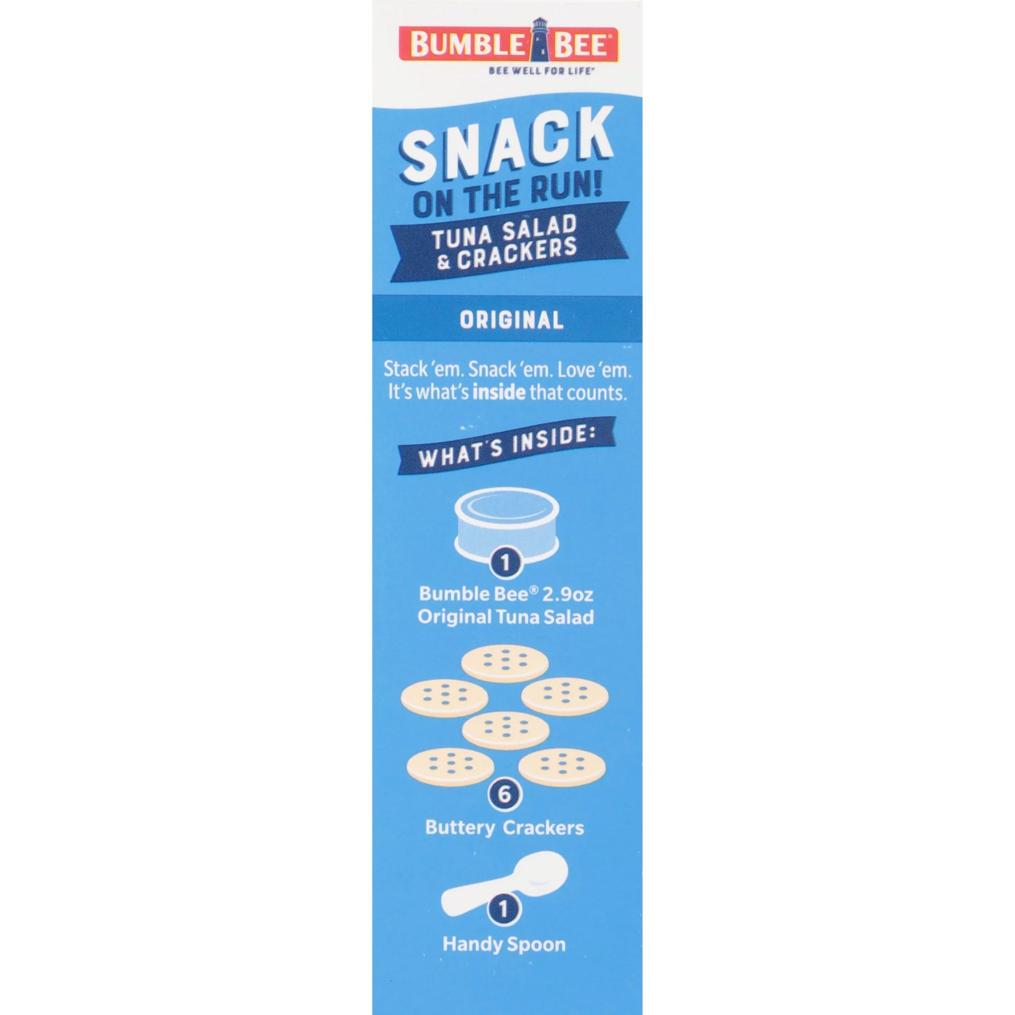 - DELICIOUS TUNA SNACK WITH CRACKERS: This 3.5-ounce Bumble Bee Snack on the Run! Tuna Salad with Crackers Kit will satisfy you and your family whenever you want a tasty tuna snack or quick lunch on the go