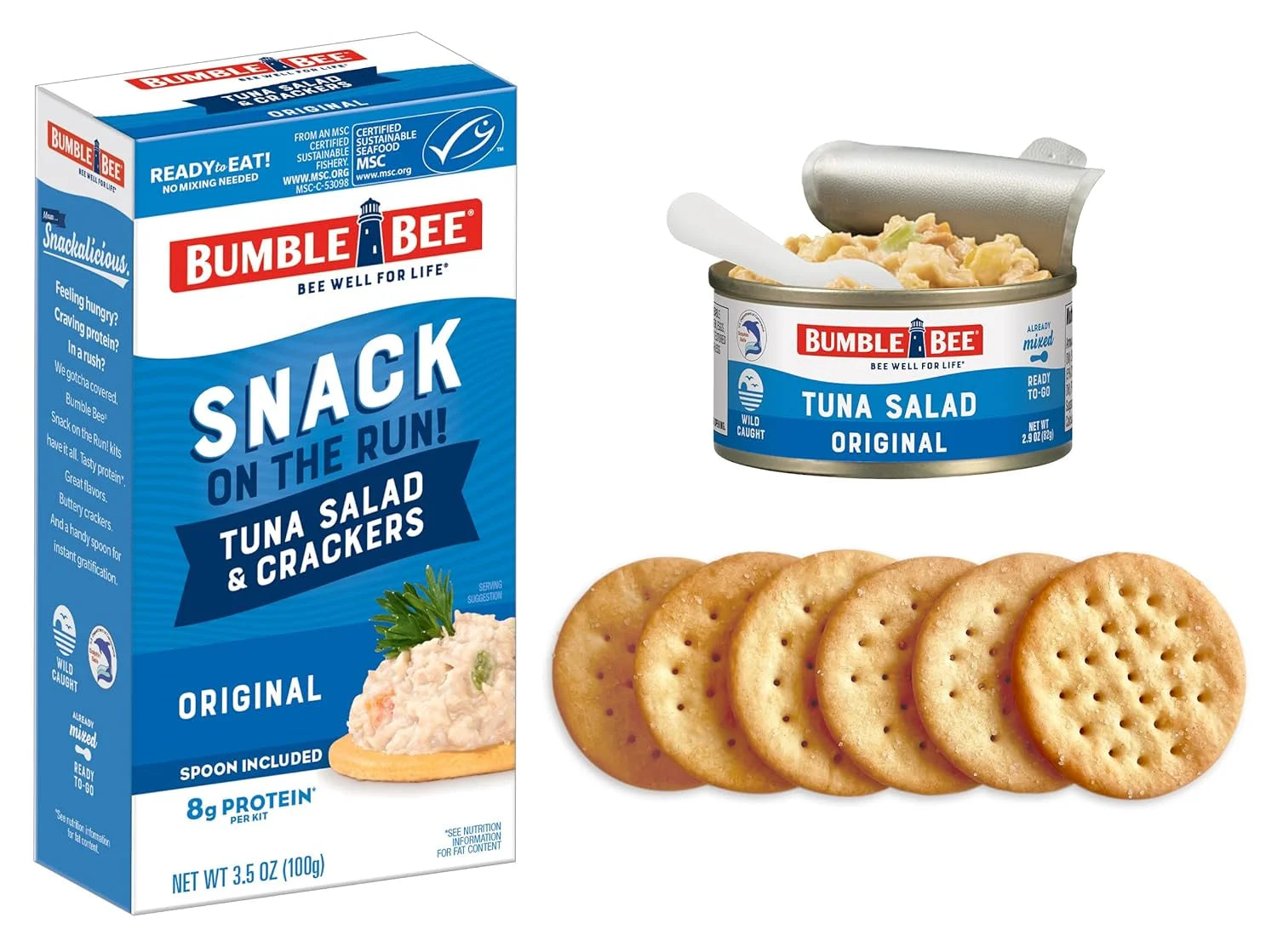 - CONVENIENT SNACKS: Enjoy Bumble Bee Snack on the Run! tuna salad with crackers kits as a great-tasting, protein packed snack, lunch or as part of any other meal; Perfectly sized for your lunch box or lunch bag