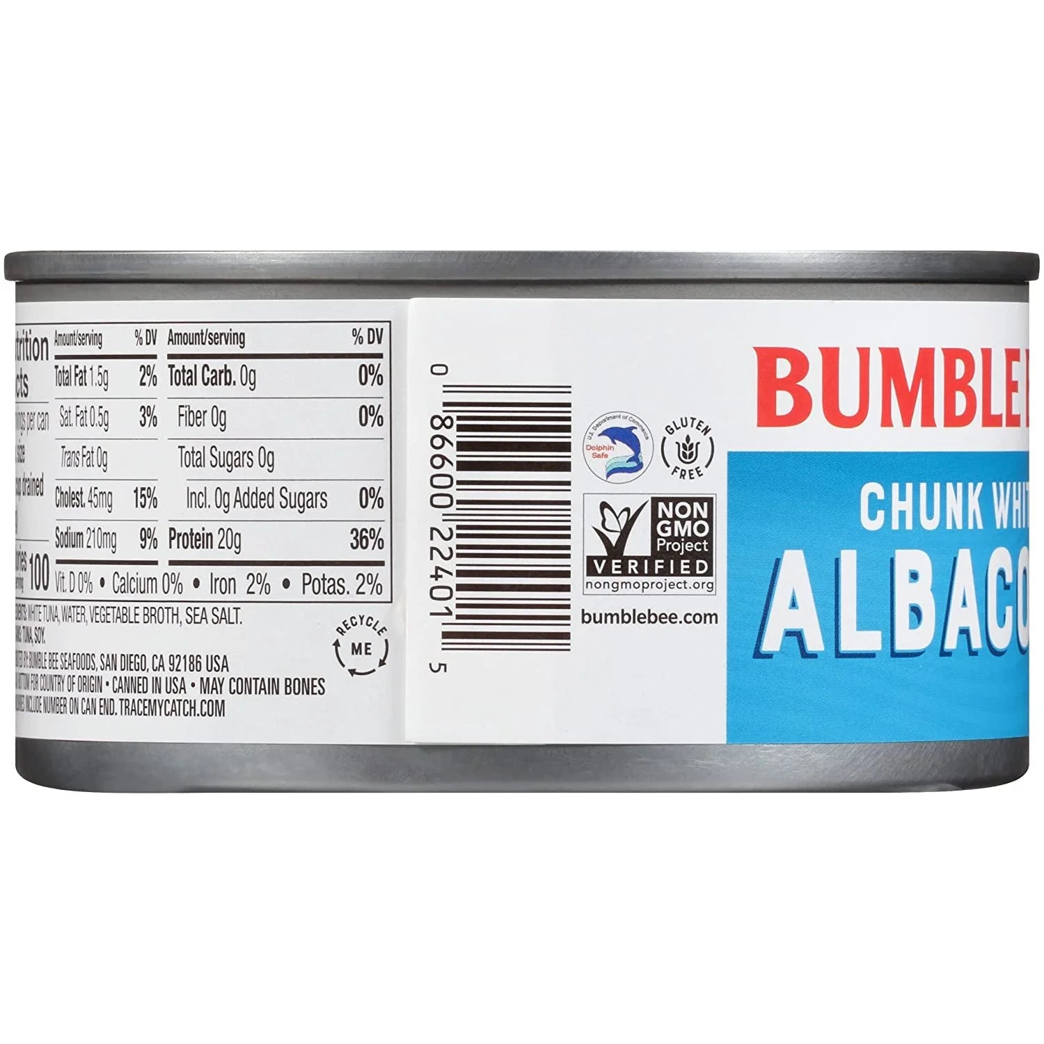 - CONVENIENT SHELF STABLE FOOD: Bumble Bee Canned Chunk White Albacore is perfect for stocking your pantry at home or bringing on the go as a high-protein option while traveling, camping, or on the job.