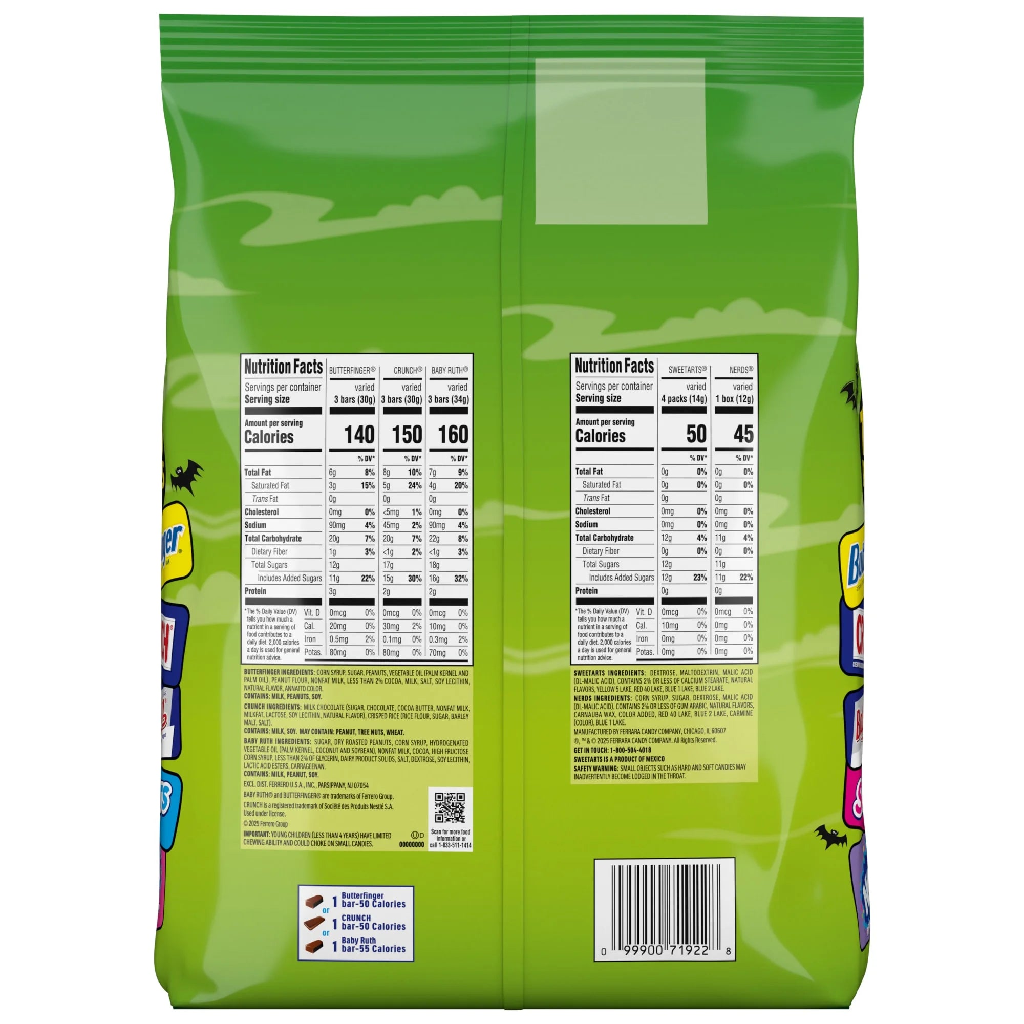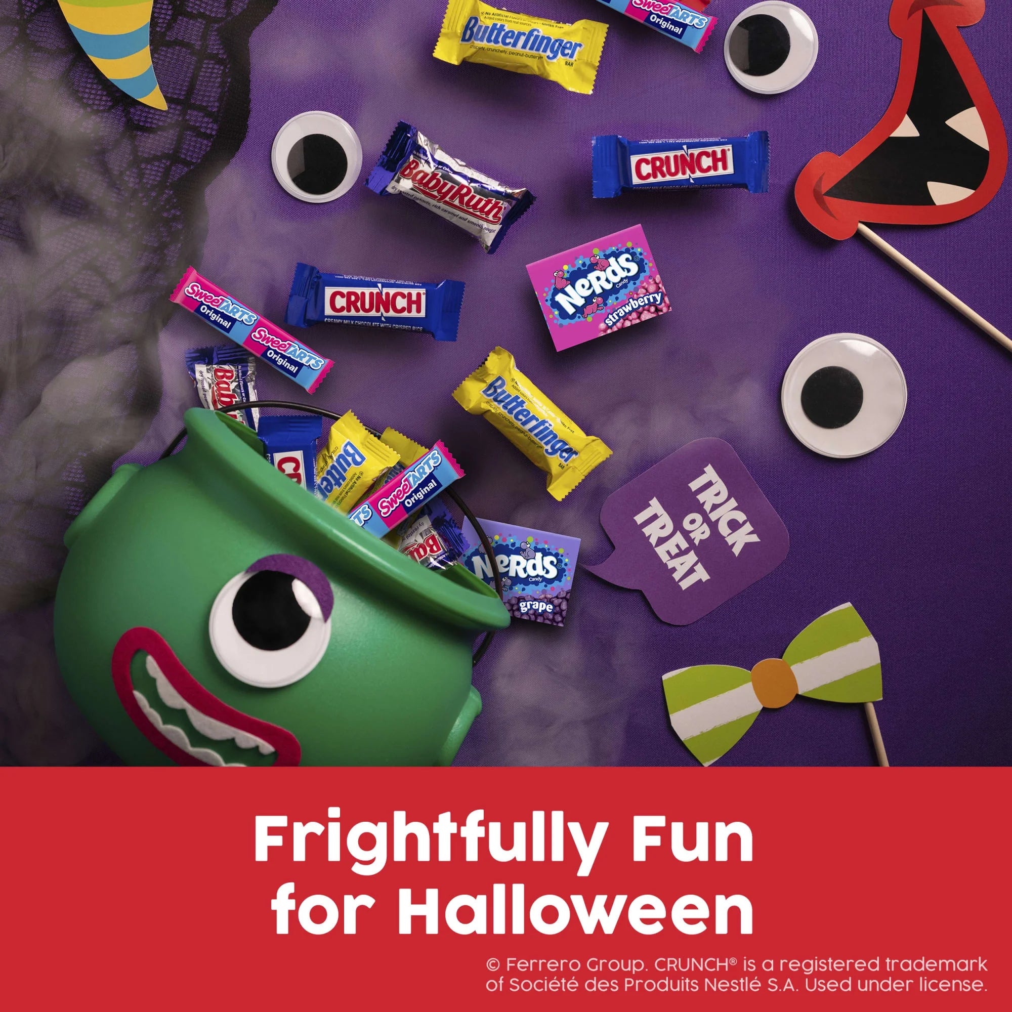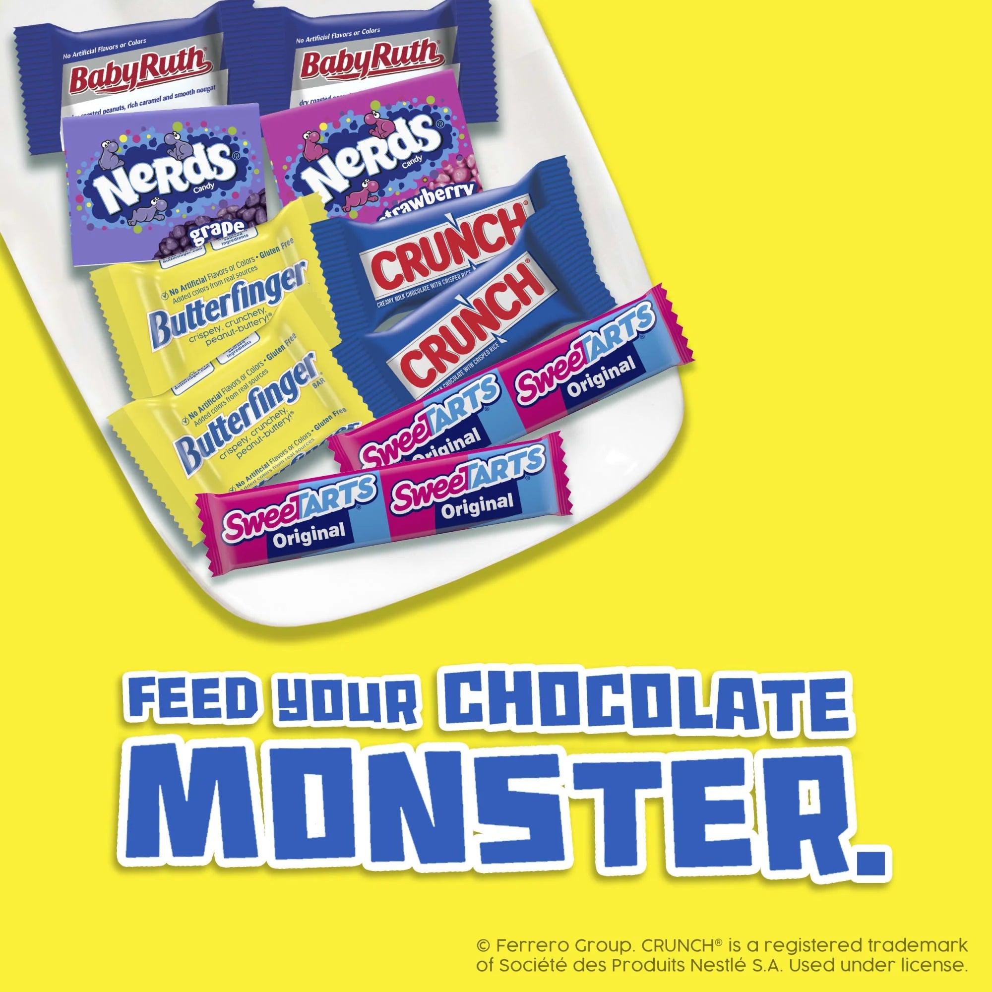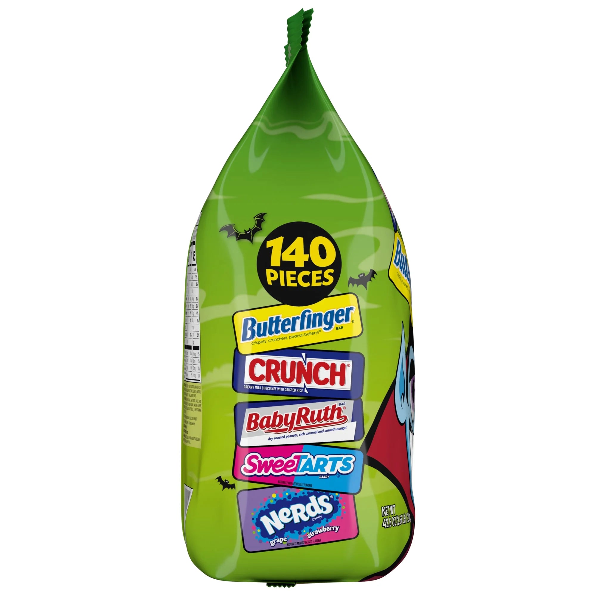 - HALLOWEEN FAVORITES MONSTER BAG: Enjoy 140 individually wrapped Butterfinger, CRUNCH, Baby Ruth, Nerds and SweetTarts mini size trick or treat candy