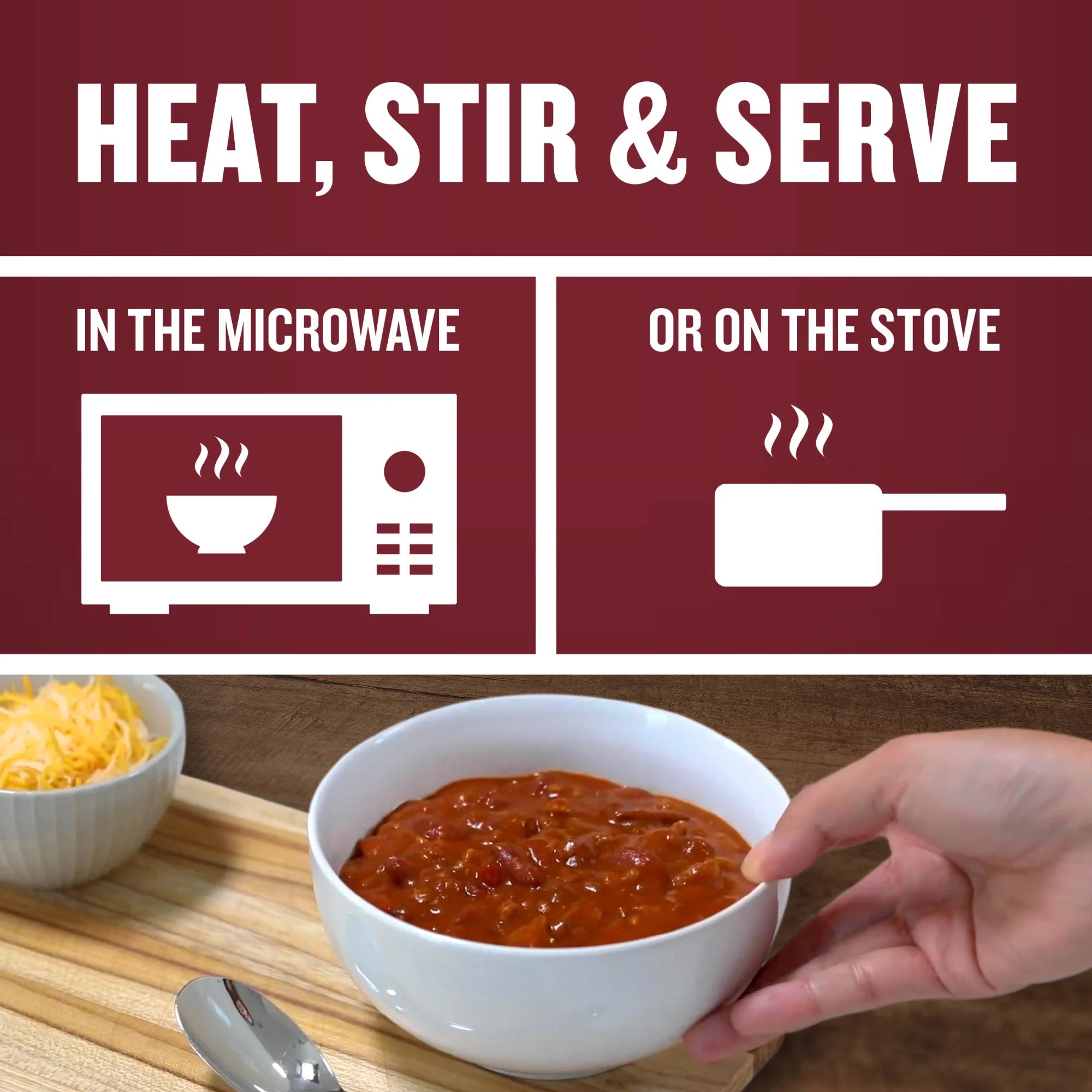 • To prepare the microwave chili, pour into a microwave-safe bowl and heat - do not add water; or heat in a saucepan on the stove, stirring occasionally