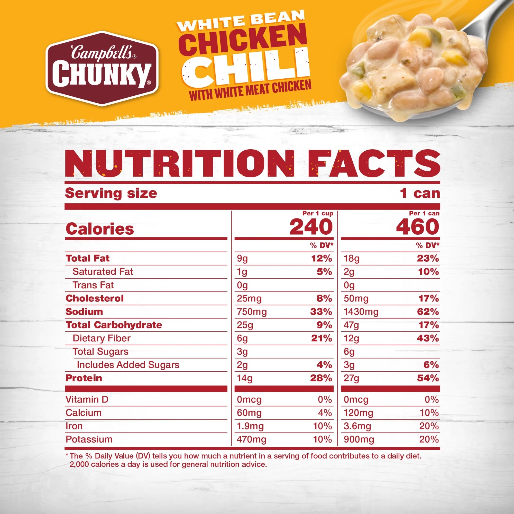 • With 27g of protein per can, this satisfying white chicken chili fuels even the heartiest of appetites