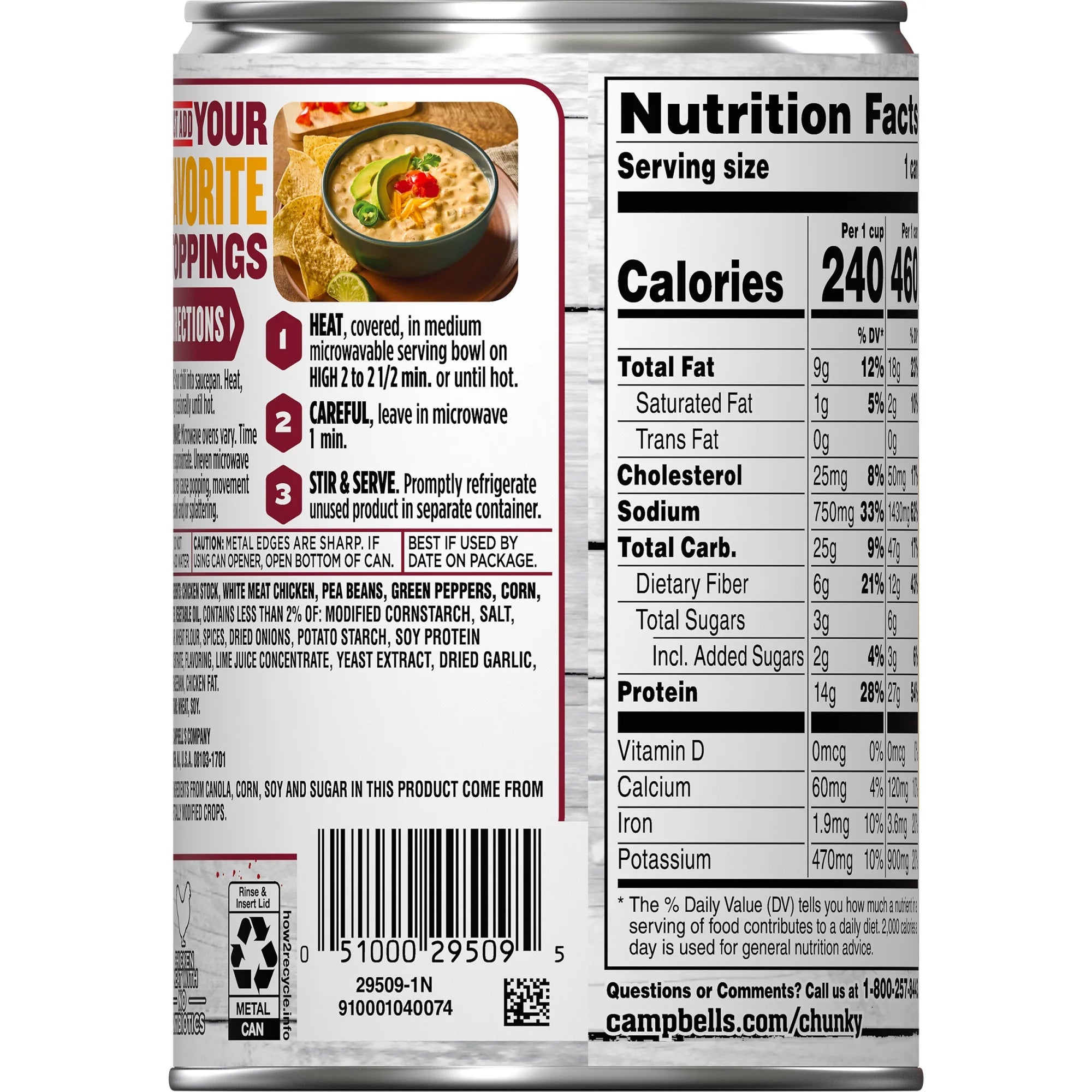 • One (1) 16.5 oz can of Campbell’s Chunky White Bean Chicken Chili
