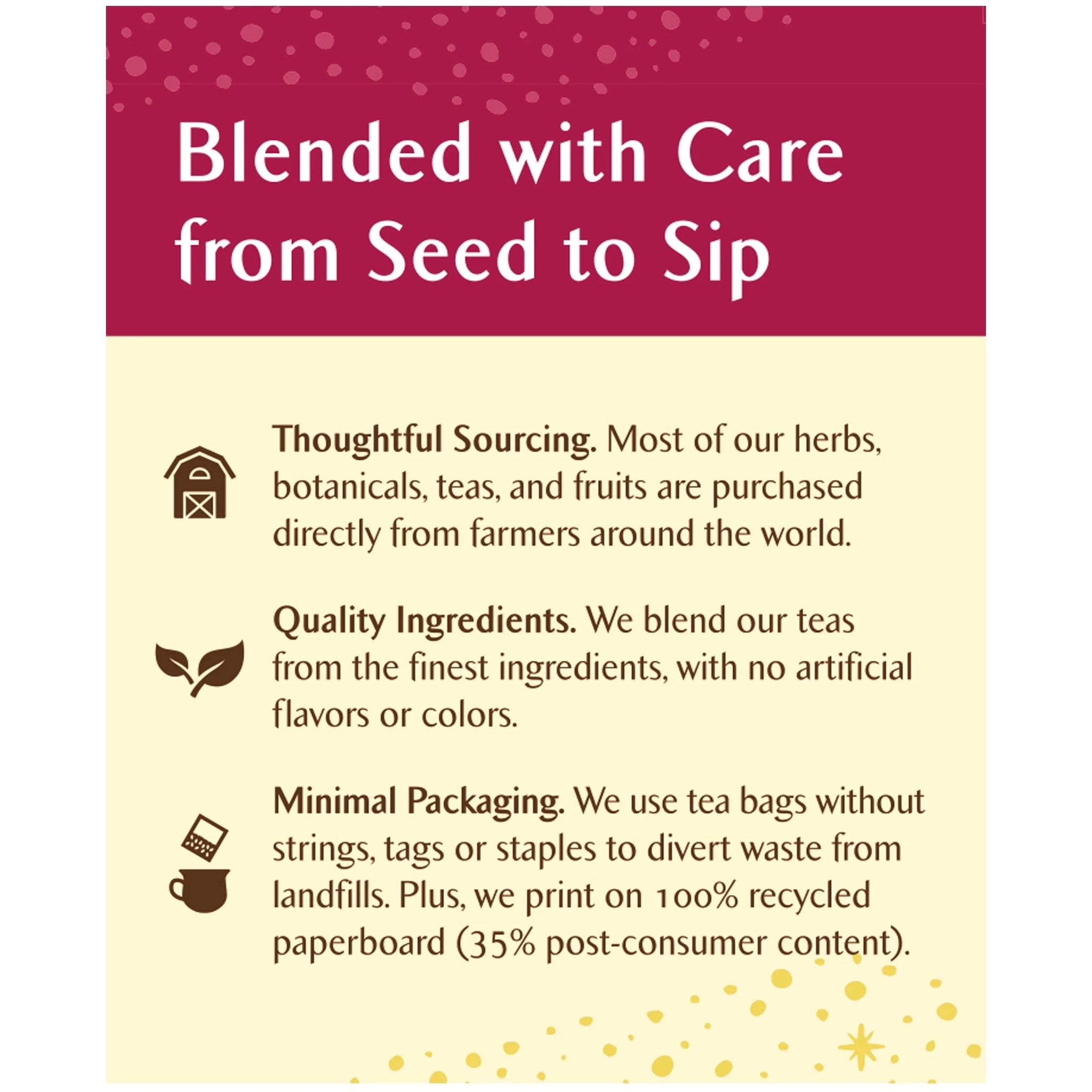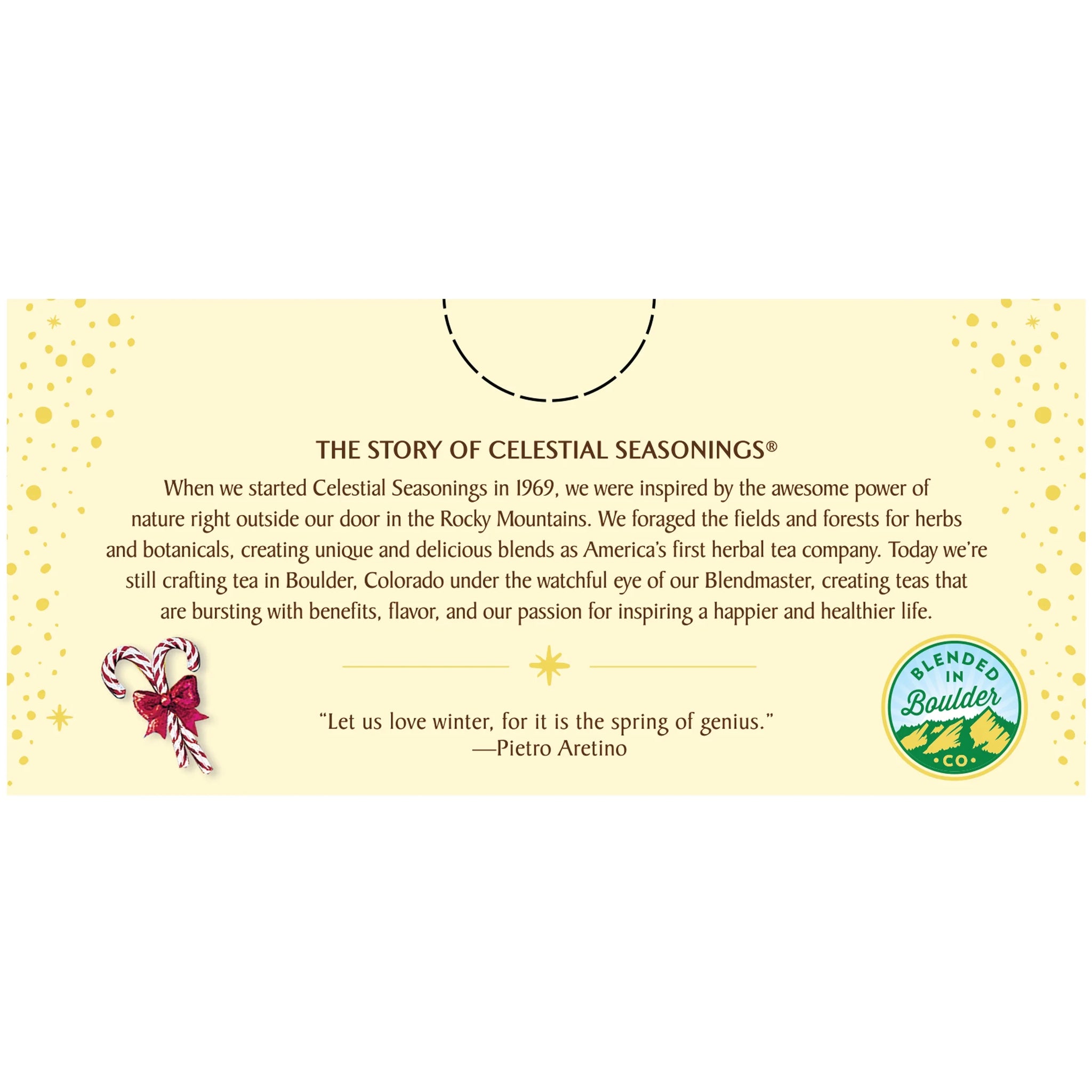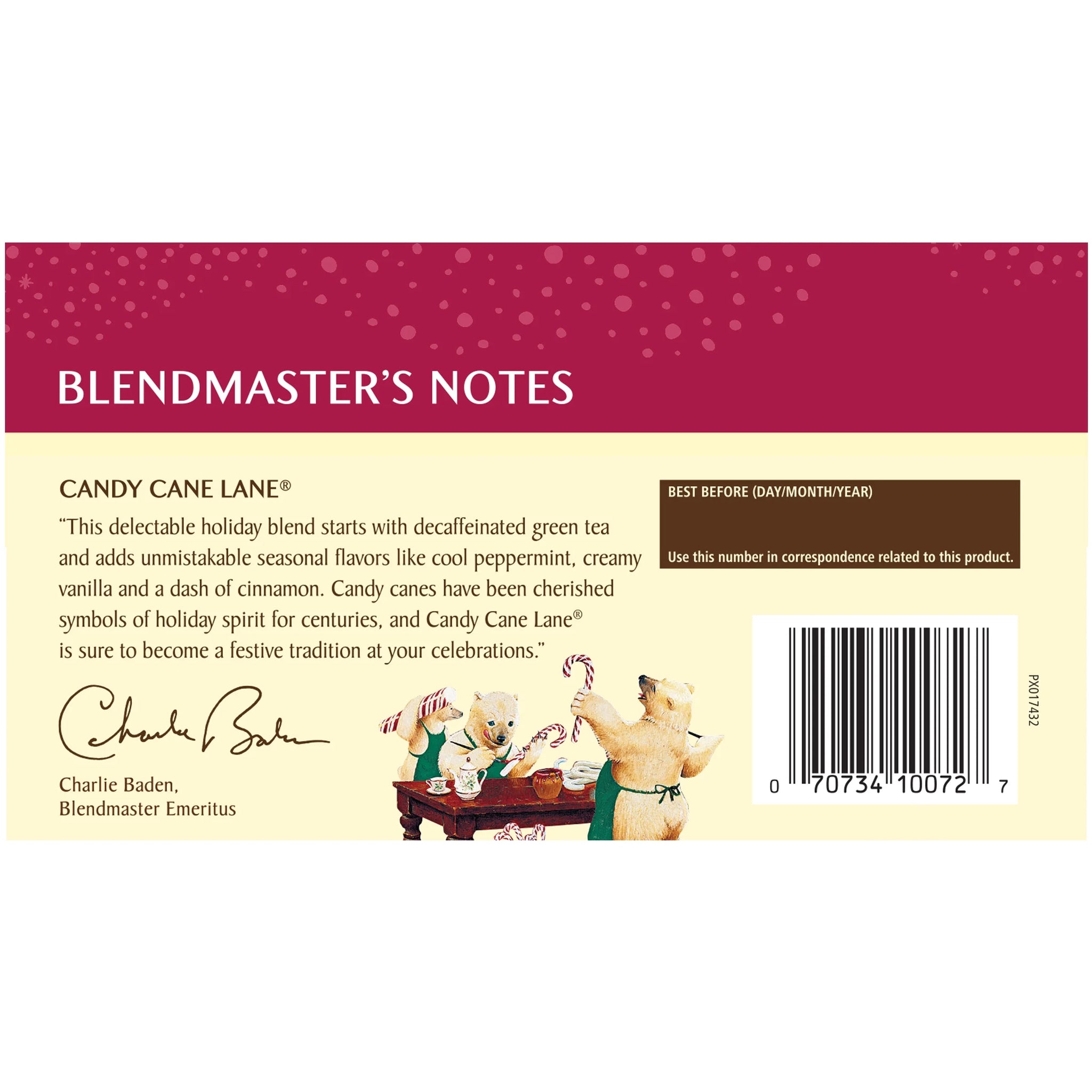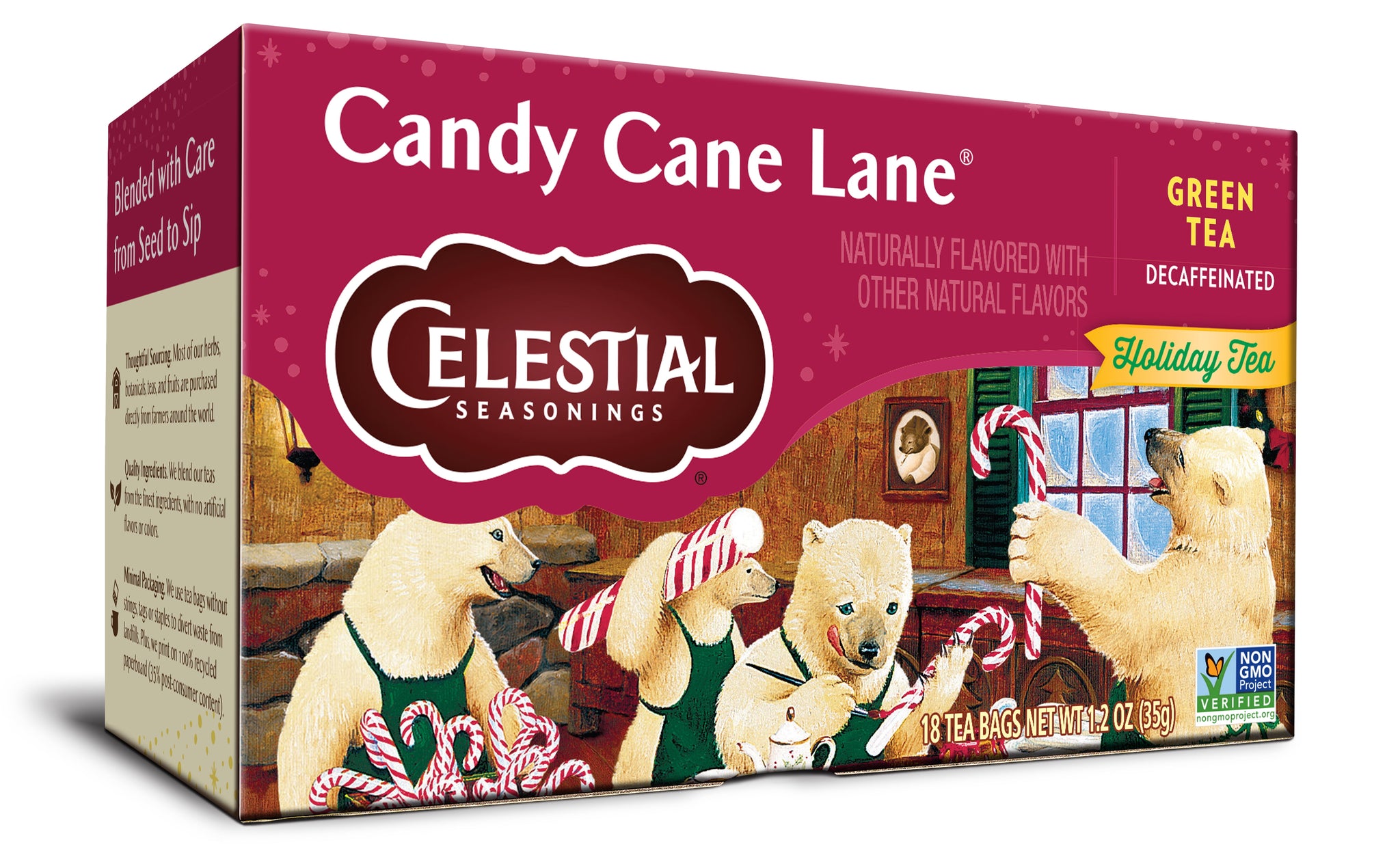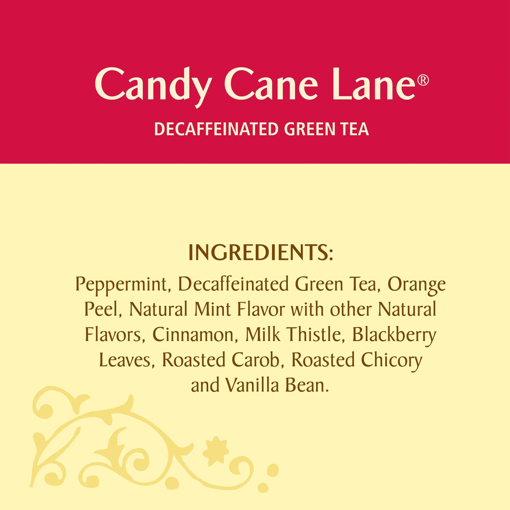 This delectable holiday blend starts with decaffeinated green tea and adds unmistakable seasonal flavors like cool peppermint, creamy vanilla and a dash of cinnamon. Candy canes have been cherished symbols of holiday spirit for centuries, and candy cane lane is sure to become a festive and healthy tradition at your celebrations. We blend our teas using the finest herbs, teas, spices and botanicals , and we lovingly package them in engaging, thoughtful boxes that truly represent the goodness found inside.