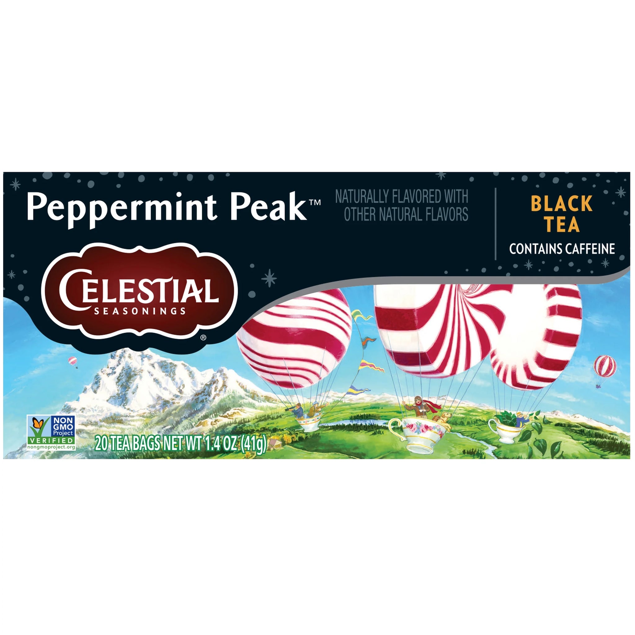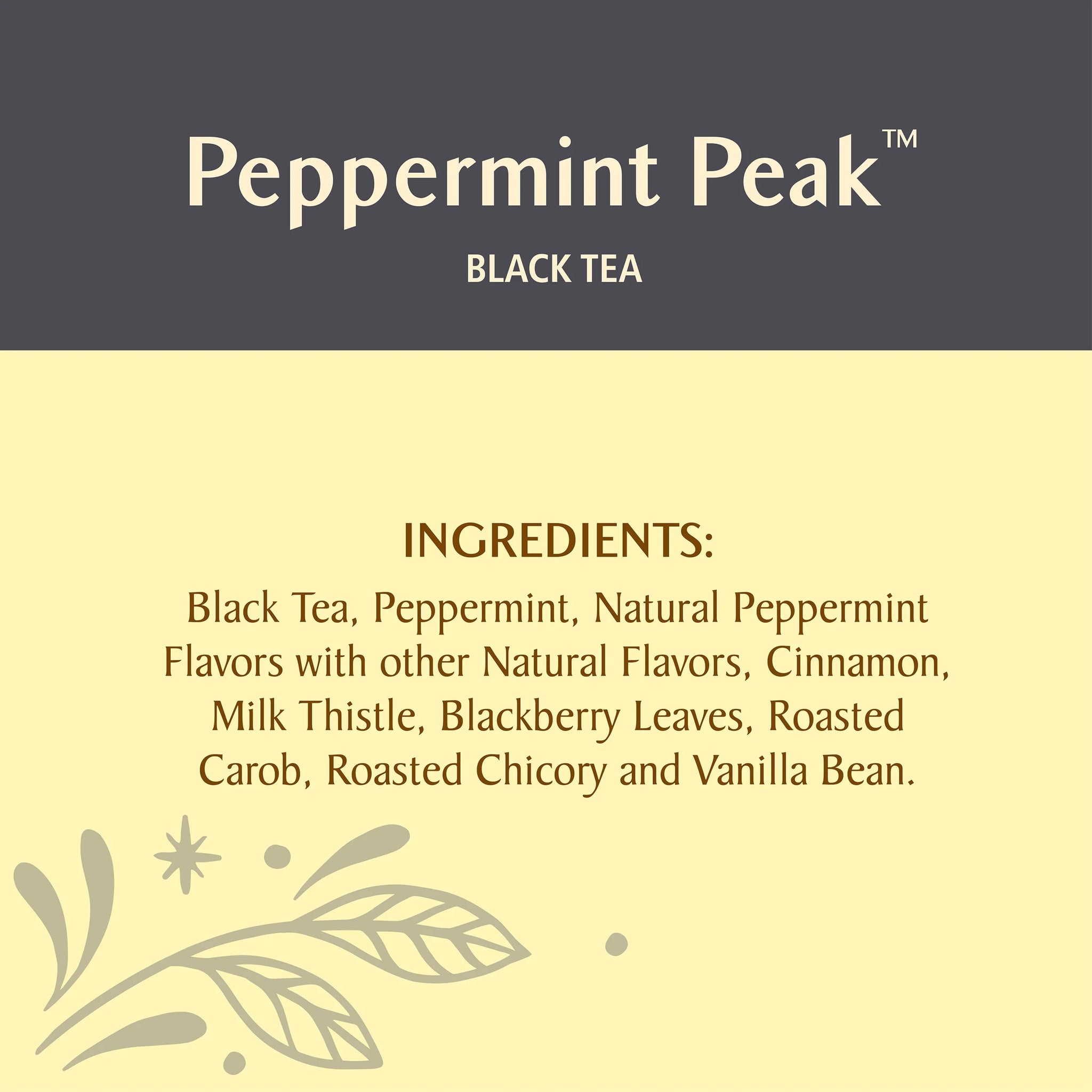 Reach new and delicious heights with this blend of cool peppermint and rich black tea. We've added creamy milk thistle, carob and vanilla bean for a smooth finish. Let this uplifting black tea take you to the top of Peppermint Peak.