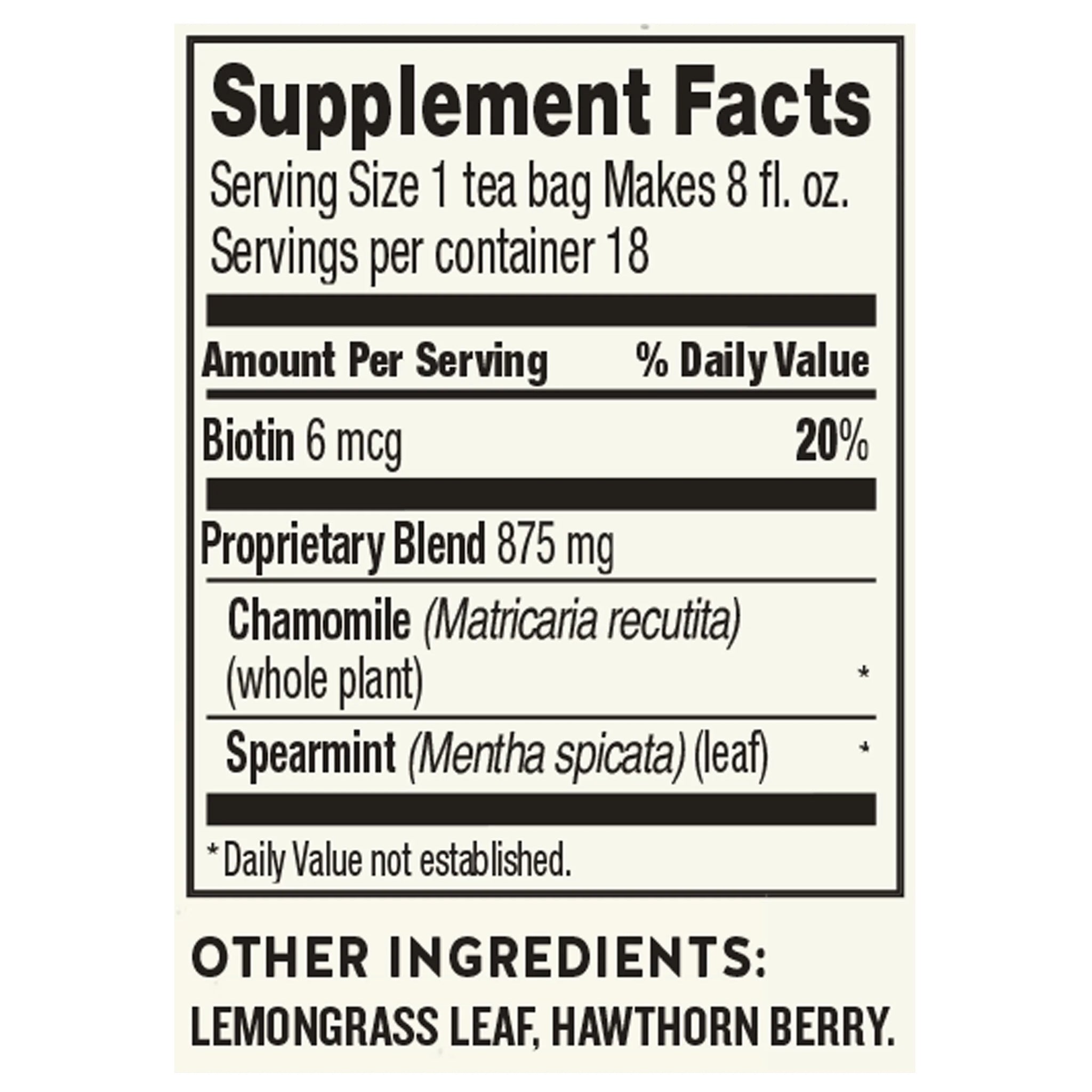 This relaxing caffeine-free tea starts with the beloved Sleepytime blend of soothing chamomile and spearmint. We then add biotin (vitamin B7) to help complement your self-care routine. More than 50 years ago, we created a truly soothing herbal tea to help folks wind down the day. We named it Sleepytime tea and it quickly became everyone’s favorite bedtime tea. Today our calming Sleepytime blend of botanicals is in herbal, decaf green and wellness teas, so you can always find the perfect cup for your bedtime routine. When we started Celestial Seasonings in 1969, we were inspired by the awesome power of nature right outside our door in the Rocky Mountains. We foraged the fields and forests for herbs and botanicals, creating unique & delicious blends as America’s first herbal tea company. Today we’re still crafting tea in Boulder, Colorado under the watchful eye of our Blendmaster, creating teas that are bursting with benefits, flavor, and our passion for inspiring a happier and healthier life.