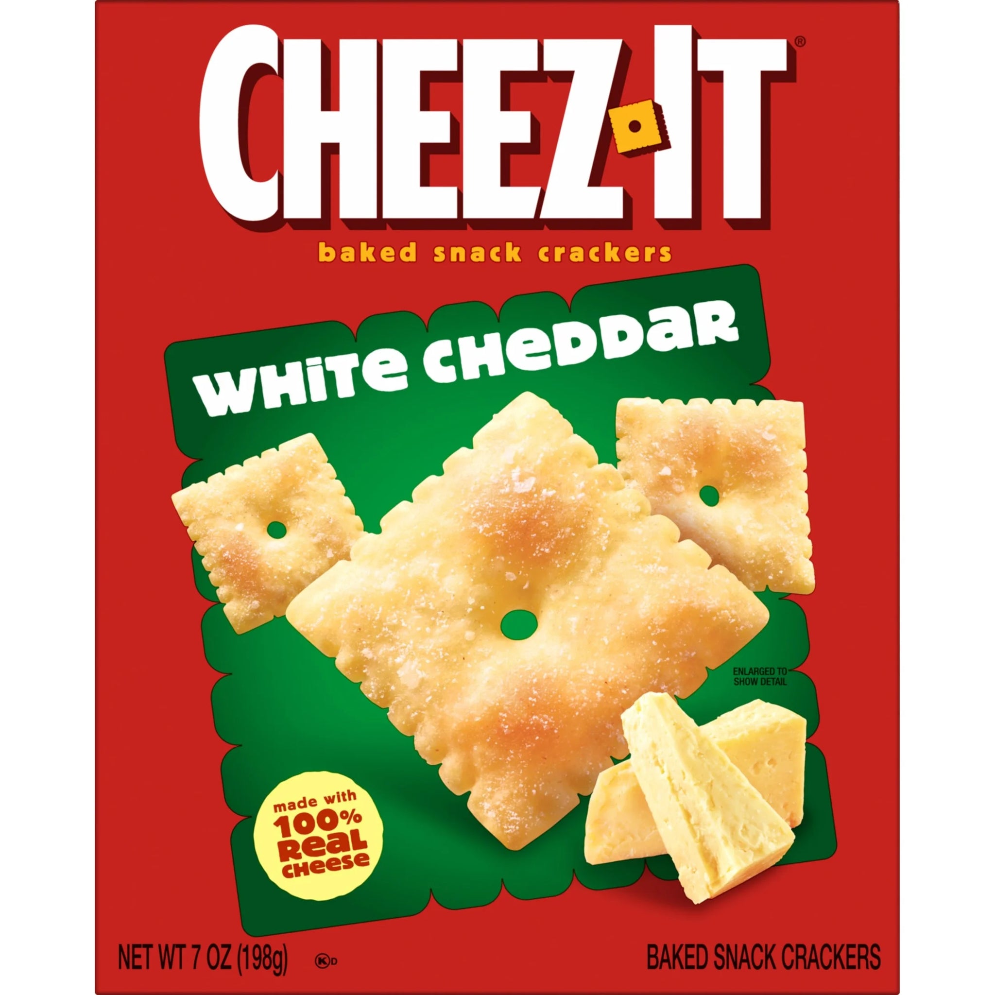 Make snack time more fun with the salty, delicious taste of Cheez-It White Cheddar Baked Snack Crackers. Cheez-It Baked Snack Crackers are made with 100% real cheese that's been carefully aged for a one-of-a-kind taste in every crunchy bite. A baked snack, Cheez-It crackers are perfect for game time, party spreads, school lunches, late-night snacking and more - the cheesy options are endless. You'll love the smooth, creamy flavor of real cheese in every perfectly toasted handful of Cheez-It White Cheddar Baked Snack Crackers. CONTAINS WHEAT, MILK AND SOY INGREDIENTS. Shelf-Stable.