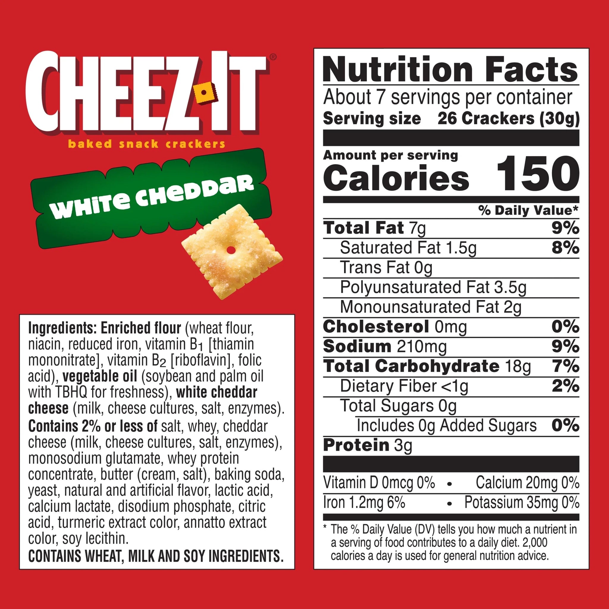 Enriched Flour (Wheat Flour, Niacin, Reduced Iron, Vitamin B1 [Thiamin Mononitrate], Vitamin B2 [Riboflavin], Folic Acid), Vegetable Oil (Soybean And Palm Oil With Tbhq For Freshness), White Cheddar Cheese (Milk, Cheese Cultures, Salt, Enzymes). Contains 2% Or Less Of Salt, Whey, Cheddar Cheese (Milk, Cheese Cultures, Salt, Enzymes), Monosodium Glutamate, Whey Protein Concentrate, Butter (Cream, Salt), Baking Soda, Yeast, Natural And Artificial Flavor, Lactic Acid, Calcium Lactate, Disodium Phosphate, Citric Acid, Turmeric Extract Color, Annatto Extract Color, Soy Lecithin./div>