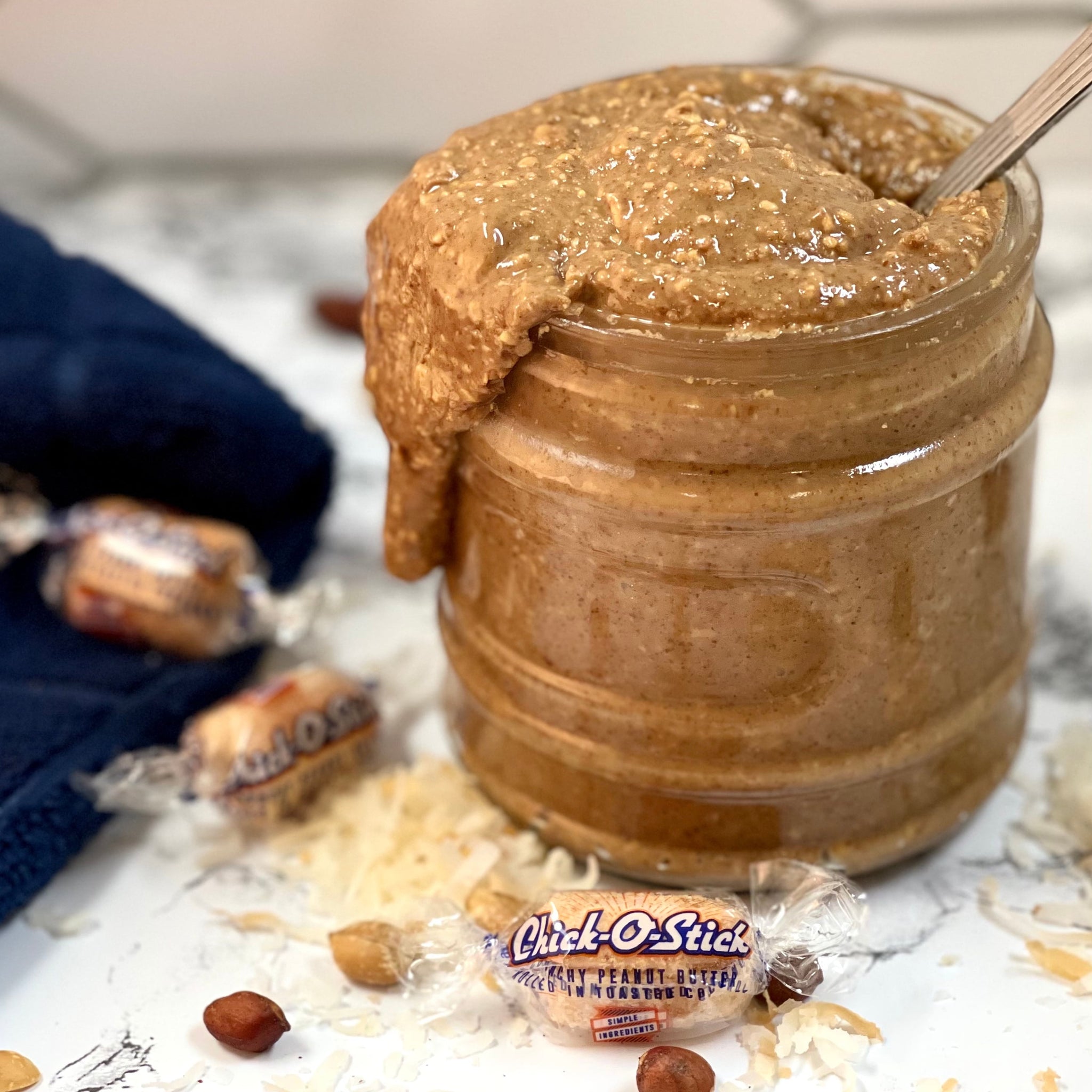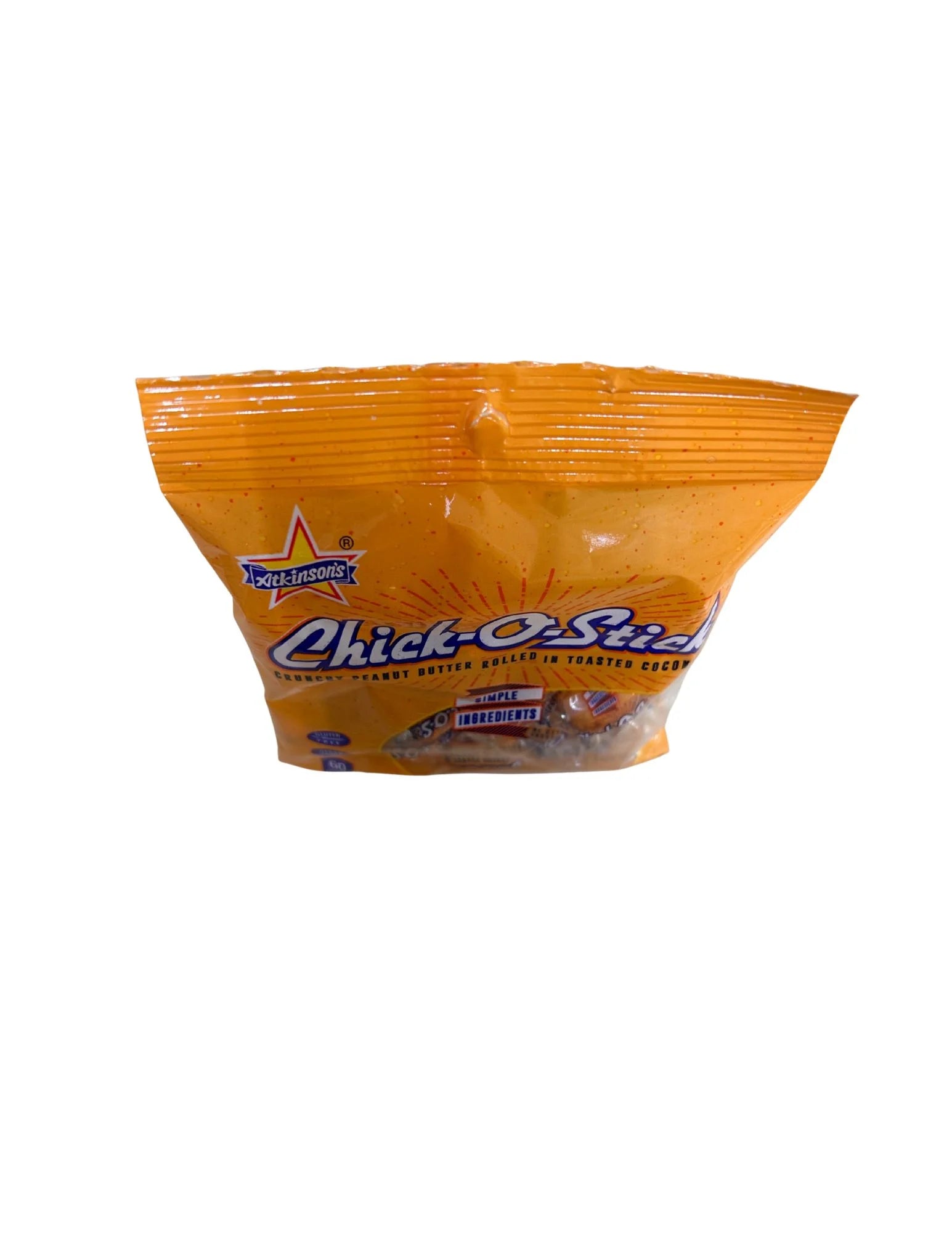 Chick-O-Stick Peanut Butter and Toasted Coconut Bite Size Candy, 3 oz Peg Bag. Just imagine the best -roasted Texas Grade A jumbo peanuts. Those are sprinkled with salt while they're still warm, and ground along with pure granulated sugar in a patented process. This concoction is then rolled into sticks that are the perfect mix of peanuts and crunchy candy. Then, each is dusted with lightly toasted coconut. What you're left with is the most perfect candy on earth. It's kind of flaky, kind of crunchy, kind of crispy, kind of chewy, and VERY peanutty. These minis are a great on the go treat for any occasion. Regular peg size bag. Manufactured in a facility that processes peanuts and uses milk and soy. Gluten free.