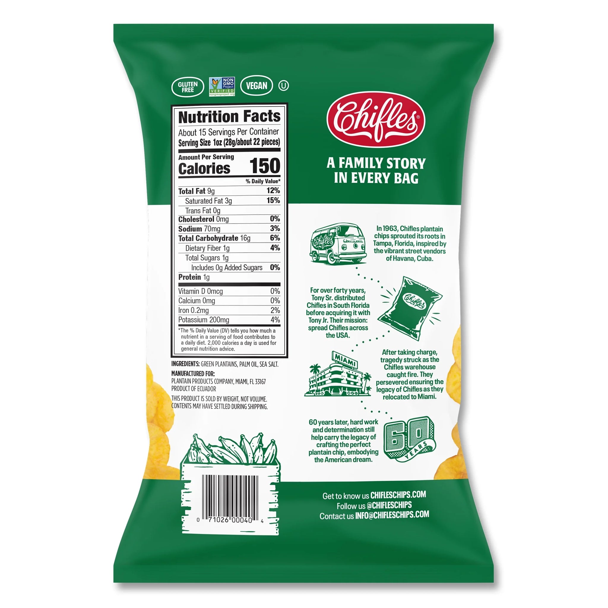 Enjoy a Feel-Good Snacking Experience: At Chifles, we turn ugly plantains into tasty snacks! We source imperfect plantains that taste delicious in order to divert perfectly good produce away from landfills and into your pantry! Our Plantain Chips are delicious alone or with your favorite dip! No wheat products, tree nuts, or peanuts enter our production facility. Experience a tasty artisan treat with no added sugar, ensuring your health is the top priority.