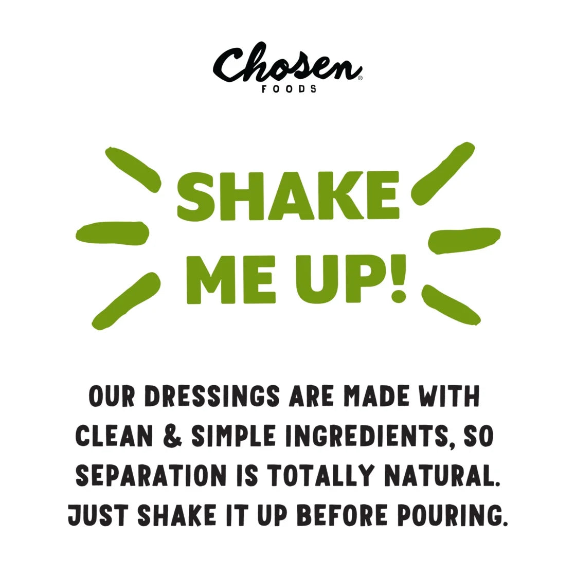 Salad's Favorite Dressing; Chosen Foods' Classic Ranch dressing & dip a delicious combination of umami, bright and herby with a super creamy texture. This ranch dressing delivers the classic flavor you love with a clean, modern twist. Your inner child—and your taste buds—will thank you! A childhood classic that is your best friend for dipping wings, veggies, or fries, and drizzling over loaded cobb salads and wraps.