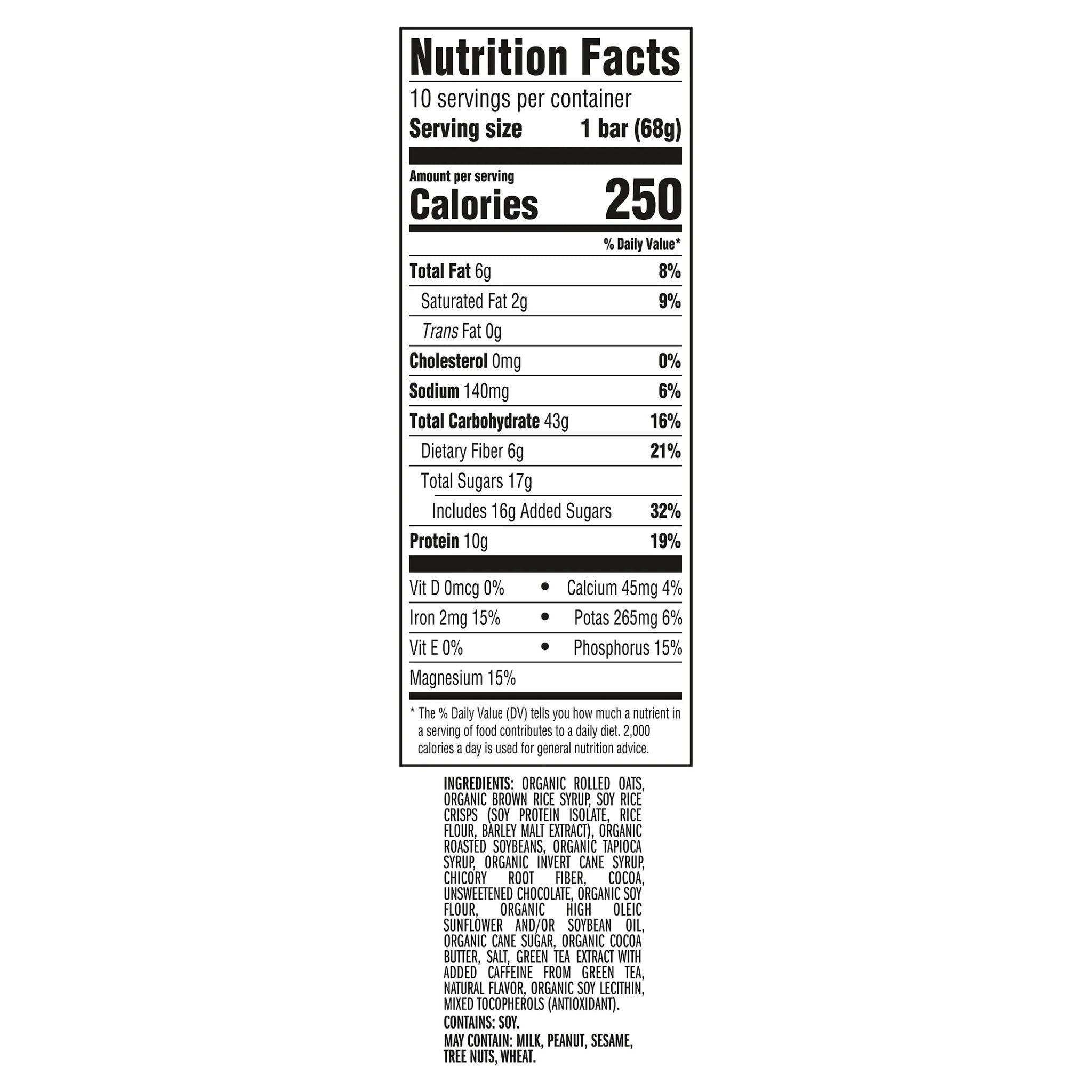 • QUALITY INGREDIENTS: Non-GMO protein bars contain 10g of protein and are made with plant-based ingredients like organic rolled oats and no high fructose corn syrup - sustaining your energy never felt (or tasted) so good