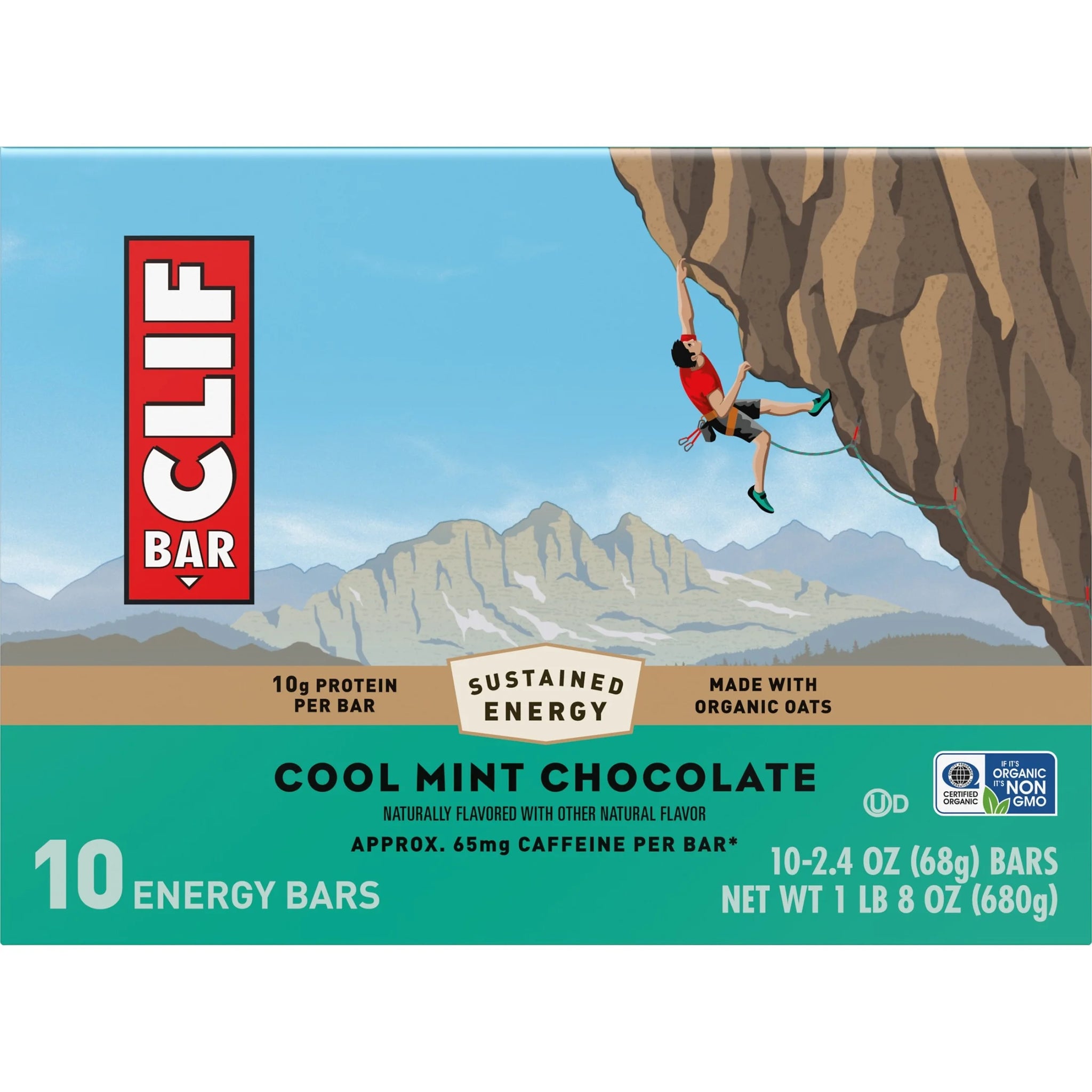 CLIF BAR 10Ct Cool Mint Chocolate with Caffeine Energy Protein Bars, Cool Mint Chocolate with Caffeine, 10Ct