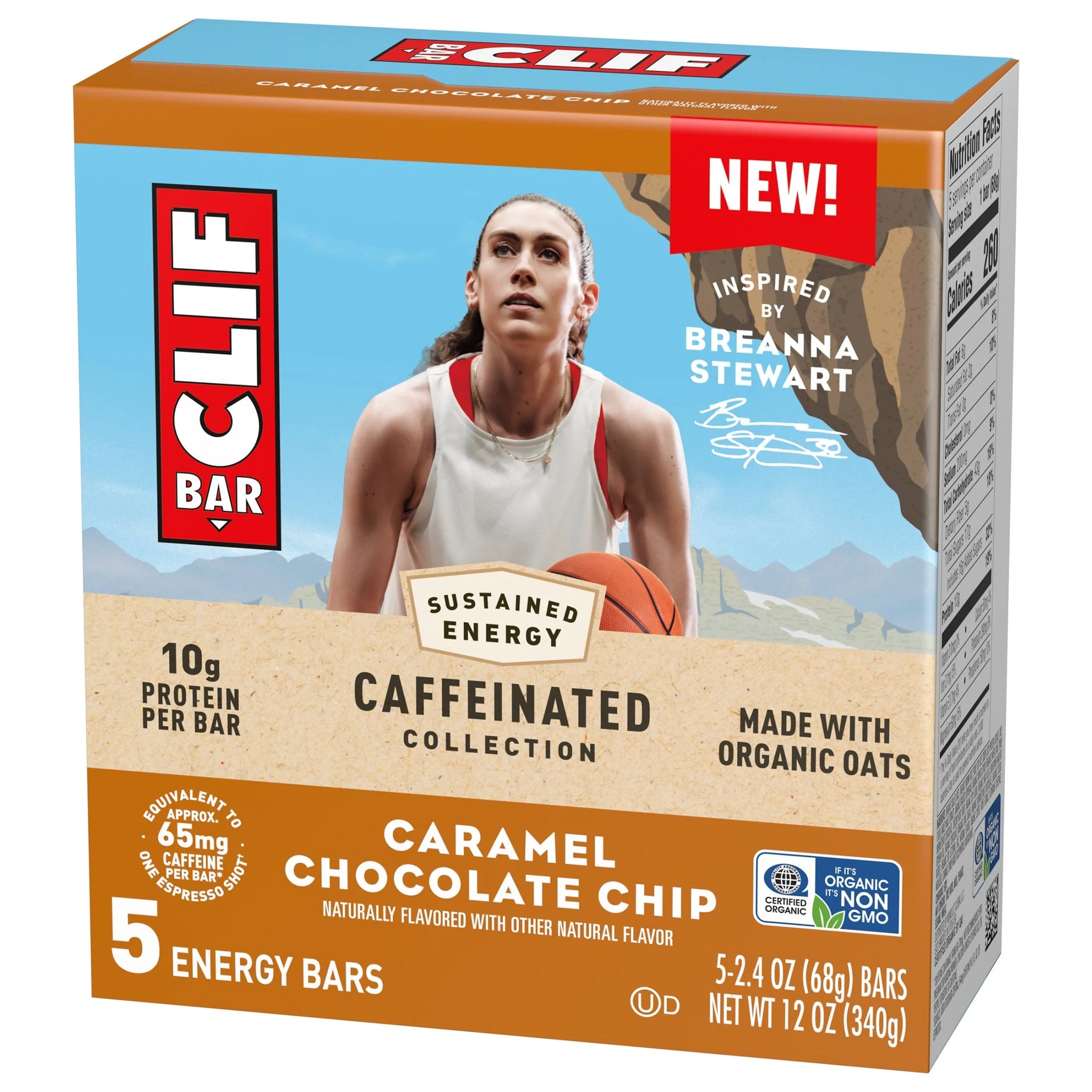 - CARAMEL CHOCOLATE CHIP FLAVOR: One 5-pack box of CLIF BAR Caffeinated Collection Caramel Chocolate Chip Energy Bars to add a kickstart of caffeine to your workout (packaging may vary)
