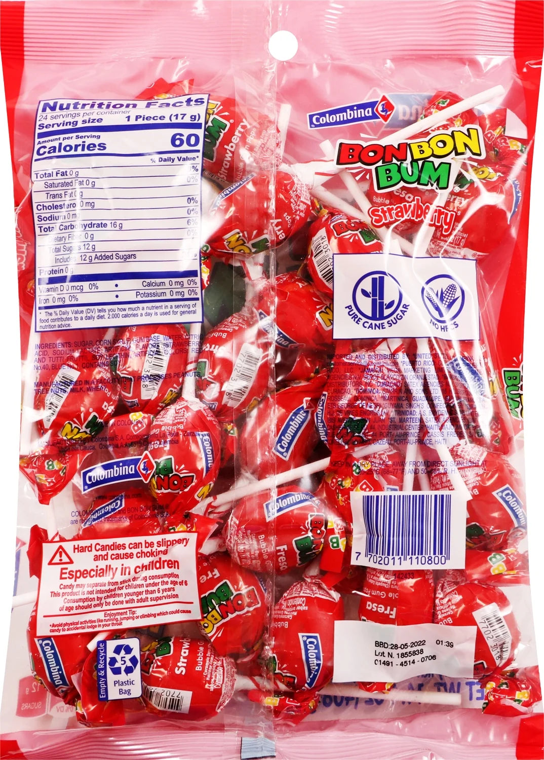 Enjoy the delicious burst of flavor from Colombina Bon Bon Bum Strawberry Lollipops in this convenient 24-count pack. These irresistible strawberry-filled lollipops are perfect for satisfying your sweet cravings anytime. With their fun shape and smooth, creamy filling, Bon Bon Bum is a favorite among kids and adults alike. Great for sharing at parties, gatherings, or simply enjoying at home, each bite delivers a refreshing and flavorful treat. Don't miss out on these classic lollipops—add a touch of sweetness to your day with Colombina Bon Bon Bum Strawberry!