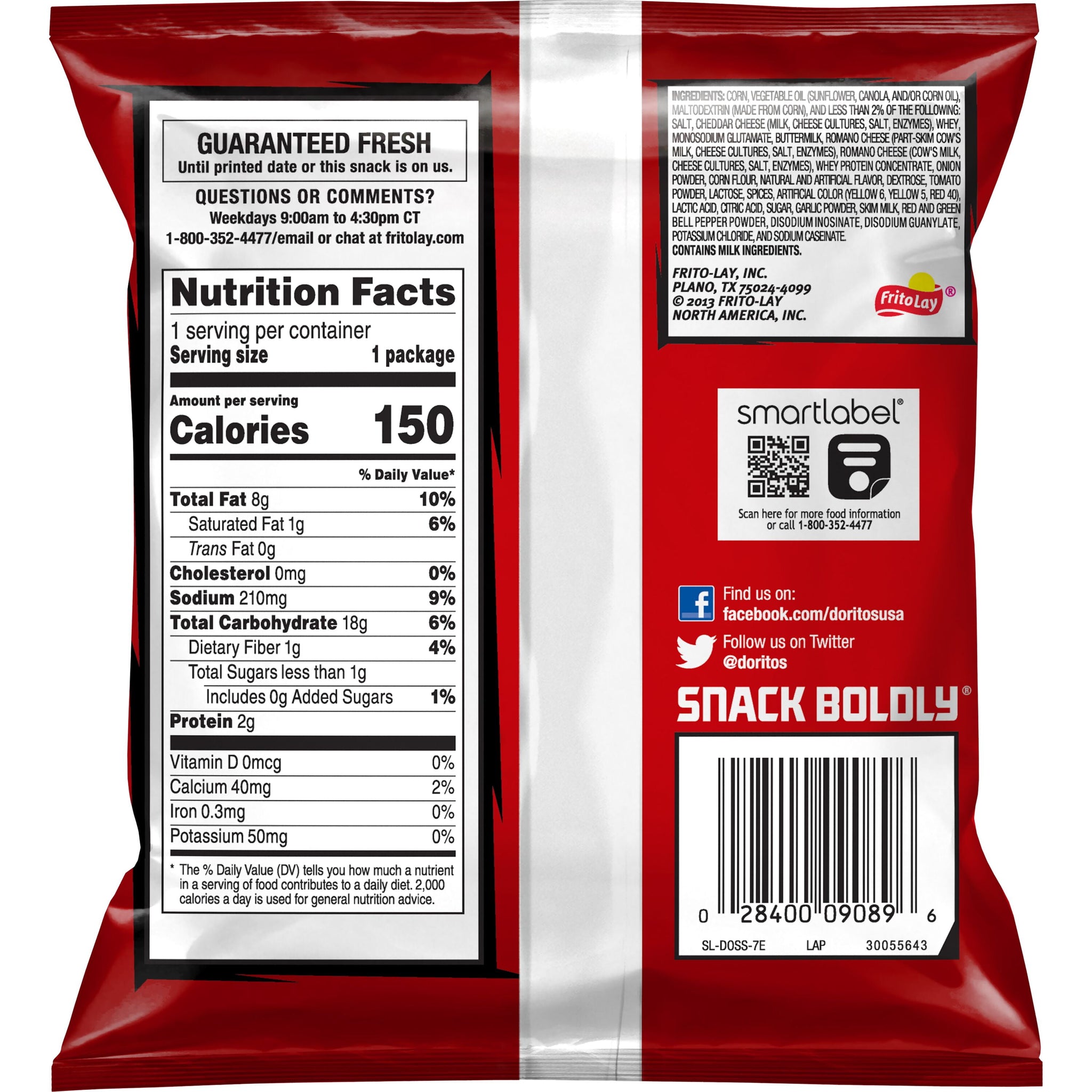 Whole Corn, Vegetable Oil (Corn, Soybean, Sunflower And/Or Canola Oil), Salt, Cheddar Cheese (Milk, Cheese Cultures, Salt, Enzymes), Maltodextrin, Wheat Flour, Whey, Monosodium Glutamate, Buttermilk, Romano Cheese (Part-Skim Cow's Milk, Cheese Cultures, Salt, Enzymes), Whey Protein Concentrate, Onion Powder, Partially Hydrogenated Soybean And Cottonseed Oil, Corn Flour, Lactose, Natural And Artificial Flavor, Dextrose, Tomato Powder, Spices, Lactic Acid, Artificial Color (Including Yellow 6, Yellow 5, Red 40), Citric Acid, Sugar, Garlic Powder, Red And Green Bell Pepper Powder, Sodium Caseinate, Disodium Inosinate, Disodium Guanylate, Nonfat Milk, Whey Protein Isolate, And Corn Syrup Solids. Contains Milk And Wheat Ingredients./div>