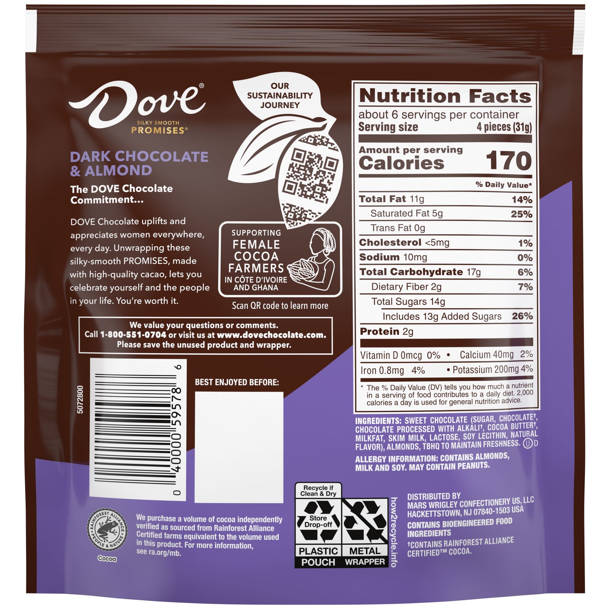 • Contains one (1) 6.74-ounce bag of DOVE PROMISES Dark Chocolate and Almond Candy Bar Assortment