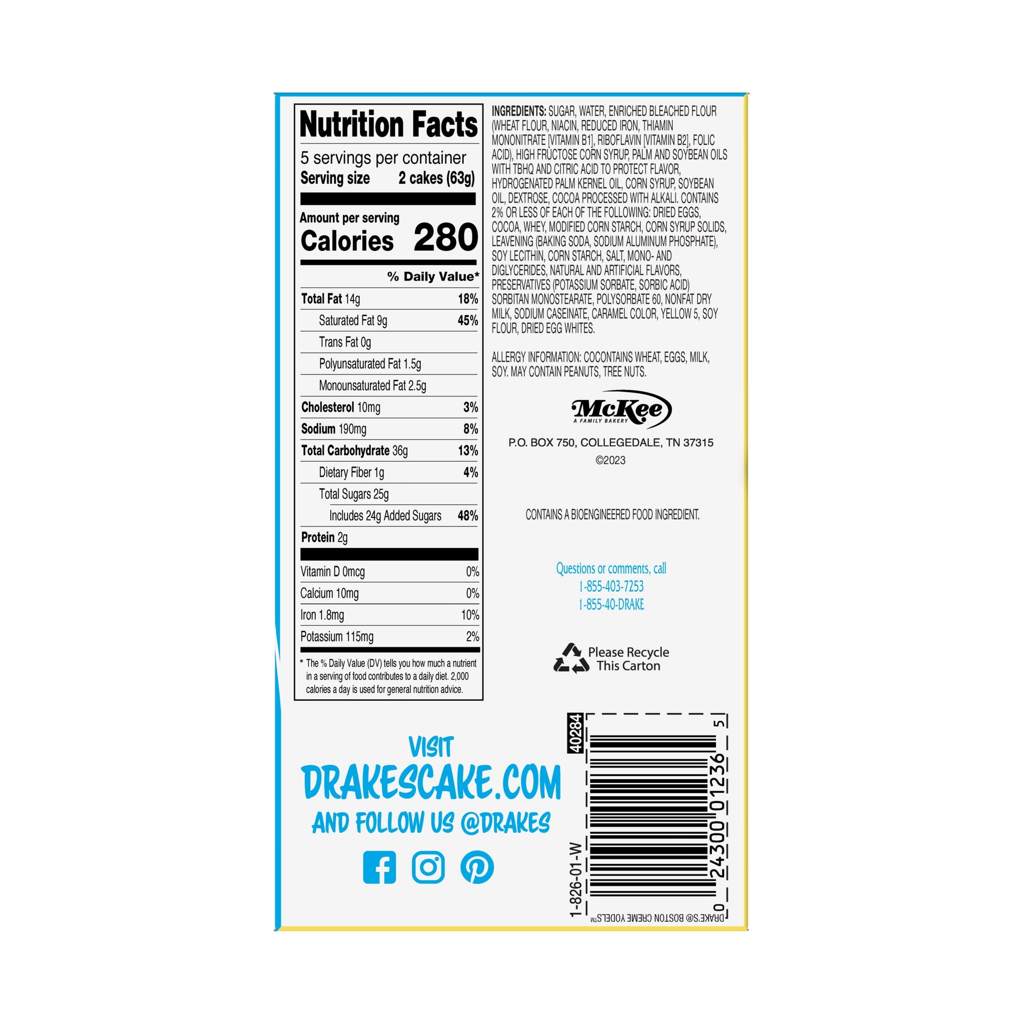 An instant classic from Drake's® Cakes, Boston Creme Yodels are sure to make anyone sing with our delicious Boston creme filling. Our signature moist golden cake is rolled with a layer of Boston creme-flavored creme to create a fun swirl. This perfect blend of cake and creme is then covered in our classic Drake's frosting to recreate the iconic taste of Boston Cream Pies. Ten (10) twin-wrapped cakes per carton leave these scrumptious delights open to many snacking opportunities. Maybe you enjoy in the morning with a cup of coffee, or try them frozen as a delicious warm-weather treat. They are also the perfect size to add to a lunchbox, purse or pocket for on-the-go snacking.