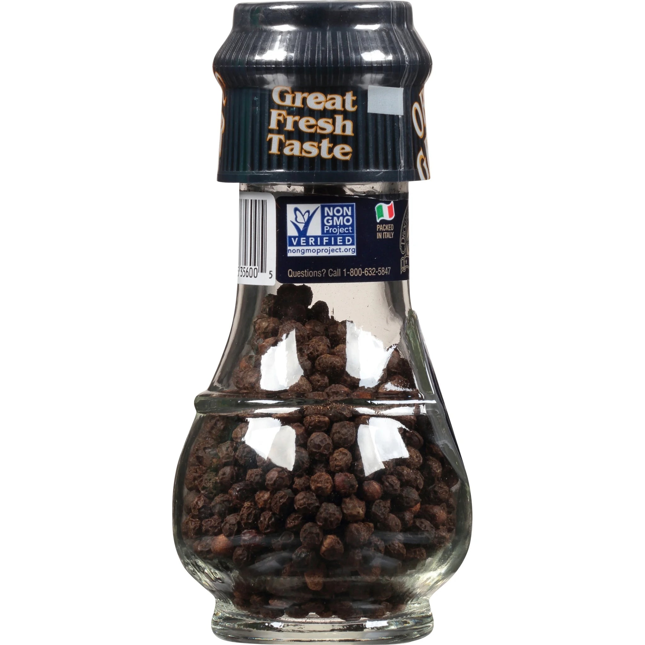 Drogheria & Alimentari Organic Black Peppercorns Mill, 1.59 oz Bottle. Drogheria & Alimentari Organic Black Peppercorns Mill adds distinctly vigorous, fragrant flavors to hearty meals. A staple spice in kitchens around the world, just a pinch of freshly-ground pepper will transform the taste of just about any dish or recipe. Brought to you by Italy’s leading herb and spice , organic black peppercorns deliver rich, flavorful spice to every bite. Use in cooking or grind directly to garnish classic Italian pasta dishes, bread dips, meats and vegetables. This Drogheria & Alimentari Organic Black Peppercorns Mill is in a Glass bottle that is 1.59 ounces. Store this shelf-stable item at an ambient temperature.