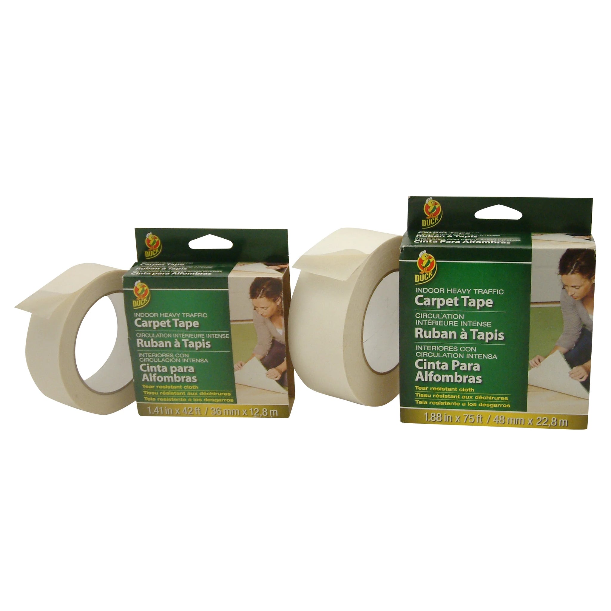 Need a carpet tape that can hold up to heavy indoor foot traffic? Duck Heavy Traffic Carpet Tape makes installing, holding, seaming or repairing carpet seams in high-traffic indoor areas, like a doorway or closet, a cinch. Its durable construction provides long lasting support, plus an easy-to-remove liner makes for a quick and easy application too. Its aggressive adhesion holds your carpet in place, adhering well to various flooring surfaces. This carpet tape also comes in a variety of sizes so you can use it anywhere in the home or office. null -