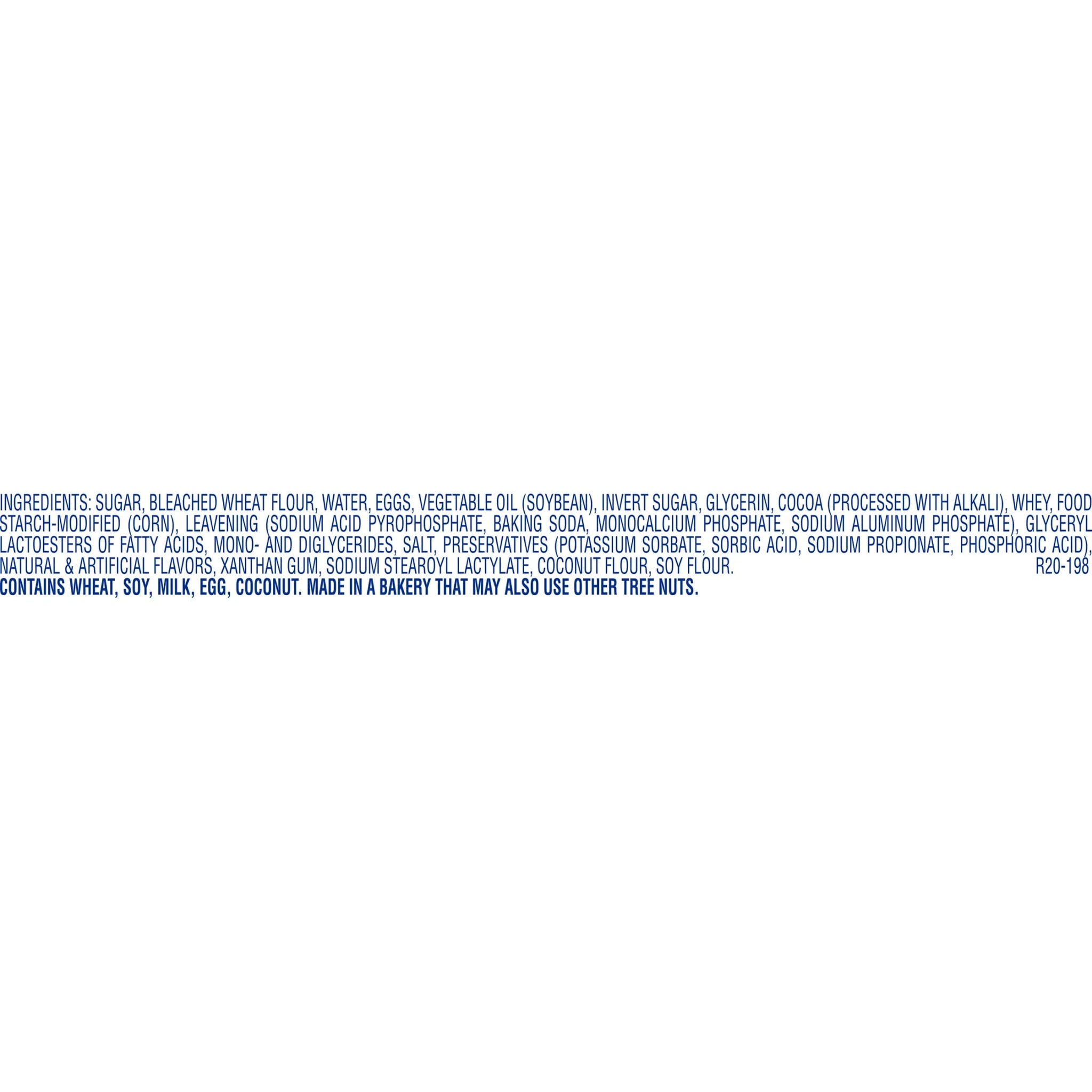 Sugar, Bleached Wheat Flour, Water, Eggs, Vegetable Oil (Soybean), Invert Sugar, Glycerin, Cocoa (Processed With Alkali), Whey, Food Starch-Modified (Corn), Leavening [Sodium Acid Pyrophosphate, Baking Soda, Monocalcium Phosphate, Sodium Aluminum Phosphate], Glyceryl Lactoesters Of Fatty Acids, Mono- And Diglycerides, Salt, Preservatives [Potassium Sorbate, Sorbic Acid, Sodium Propionate, Phosphoric Acid], Natural & Artificial Flavors, Xanthan Gum, Sodium Stearoyl Lactylate, Coconut Flour, Soy Flour./div>
