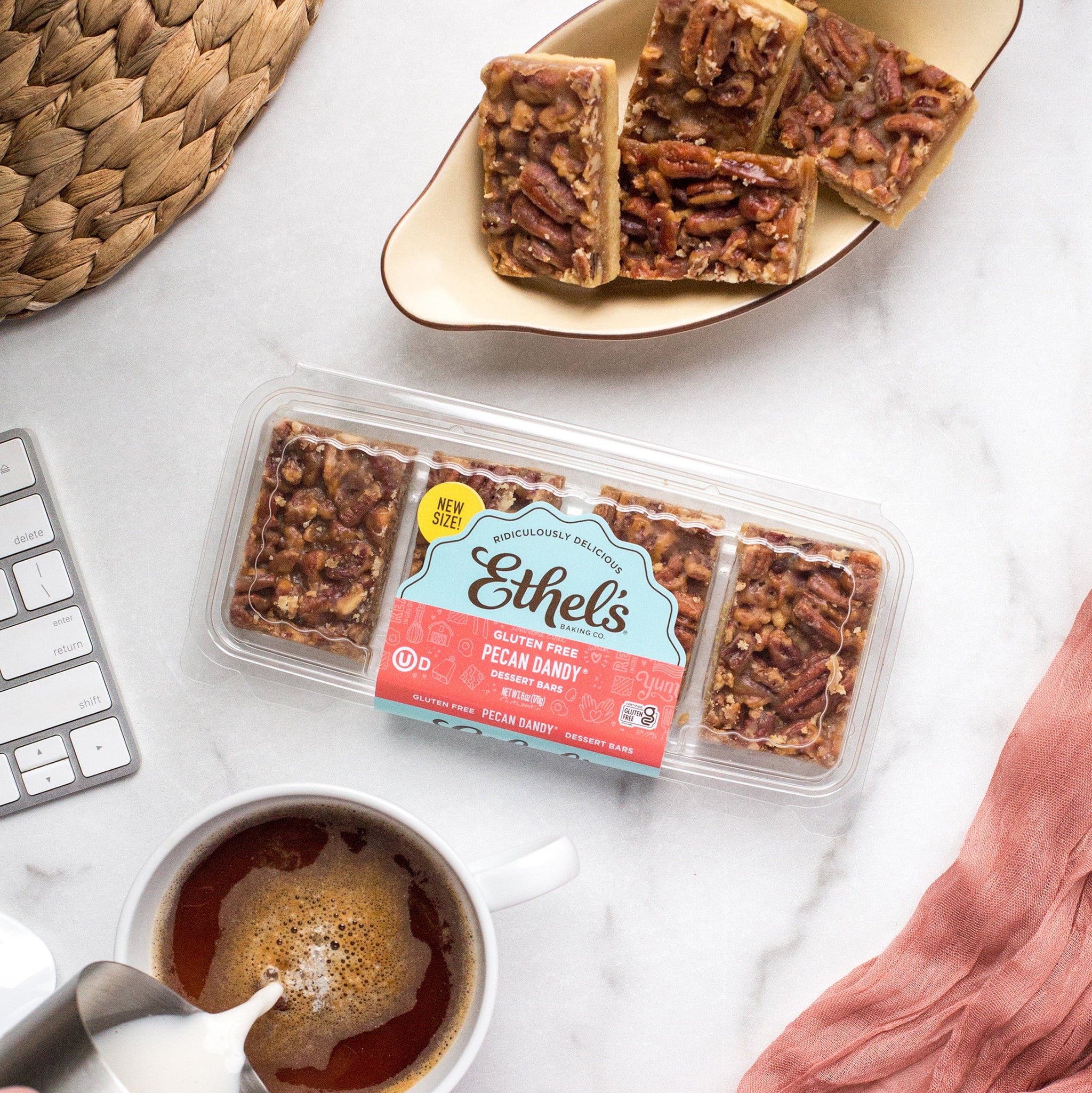 Savor the irresistible charm of Ethel's Baking Co. Pecan Dandy Dessert Bars—crafted with care and baked to golden perfection. Each 1.5 oz bar features a rich, buttery shortbread base that crumbles delicately with every bite. The filling is luxuriously gooey and sweet, layered with a generous topping of crunchy, slow-roasted pecans that add a satisfying contrast in texture. These shelf-stable treats come in a convenient 4-count tray, perfect for sharing or indulging solo. Whether you're craving a midday pick-me-up or a decadent dessert, these bars deliver homemade flavor and a melt-in-your-mouth experience without the need for refrigeration.