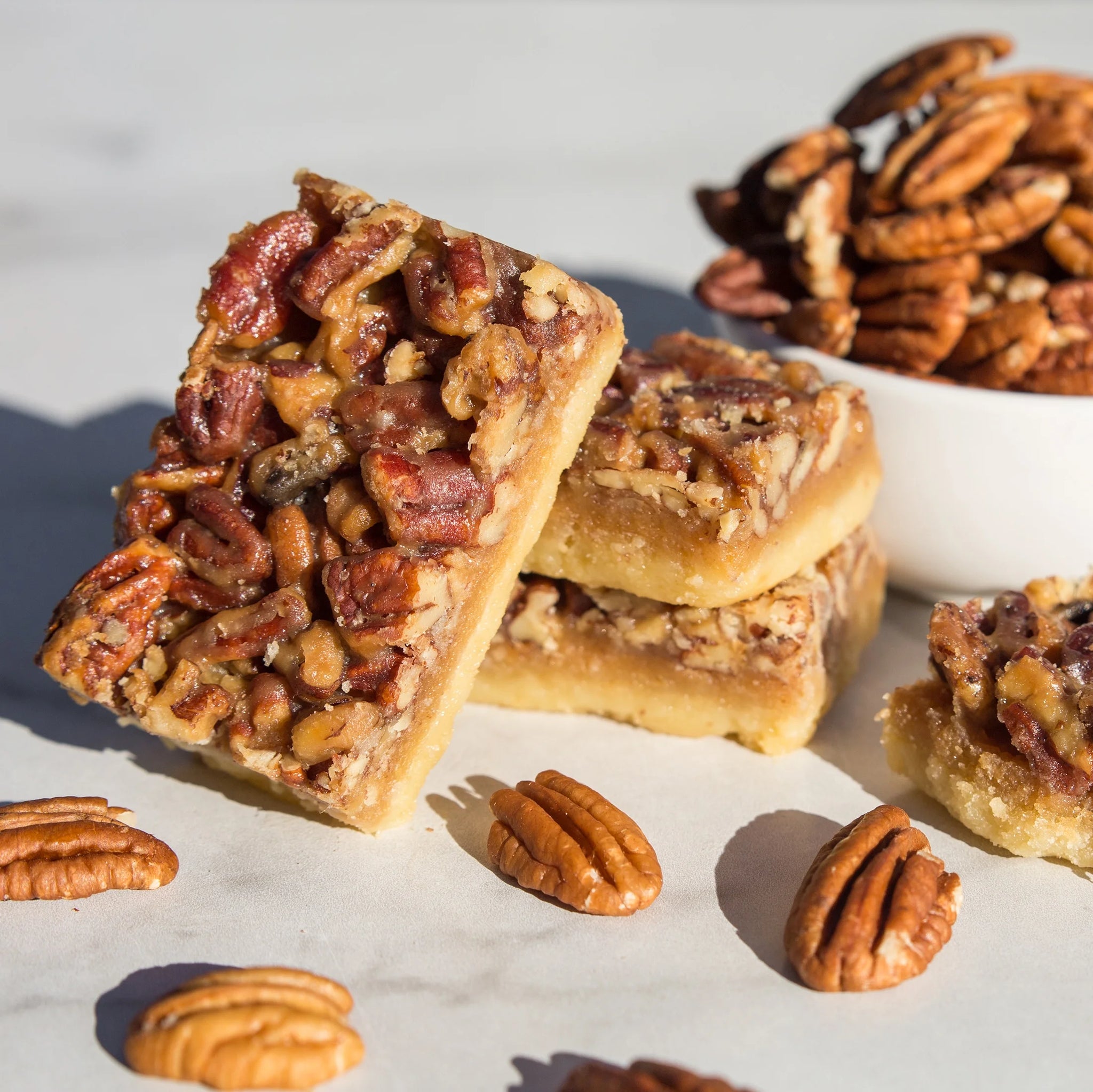 • Gooey Caramelized Filling- The center is luxuriously smooth and chewy, delivering a satisfying contrast to the crisp pecan topping.