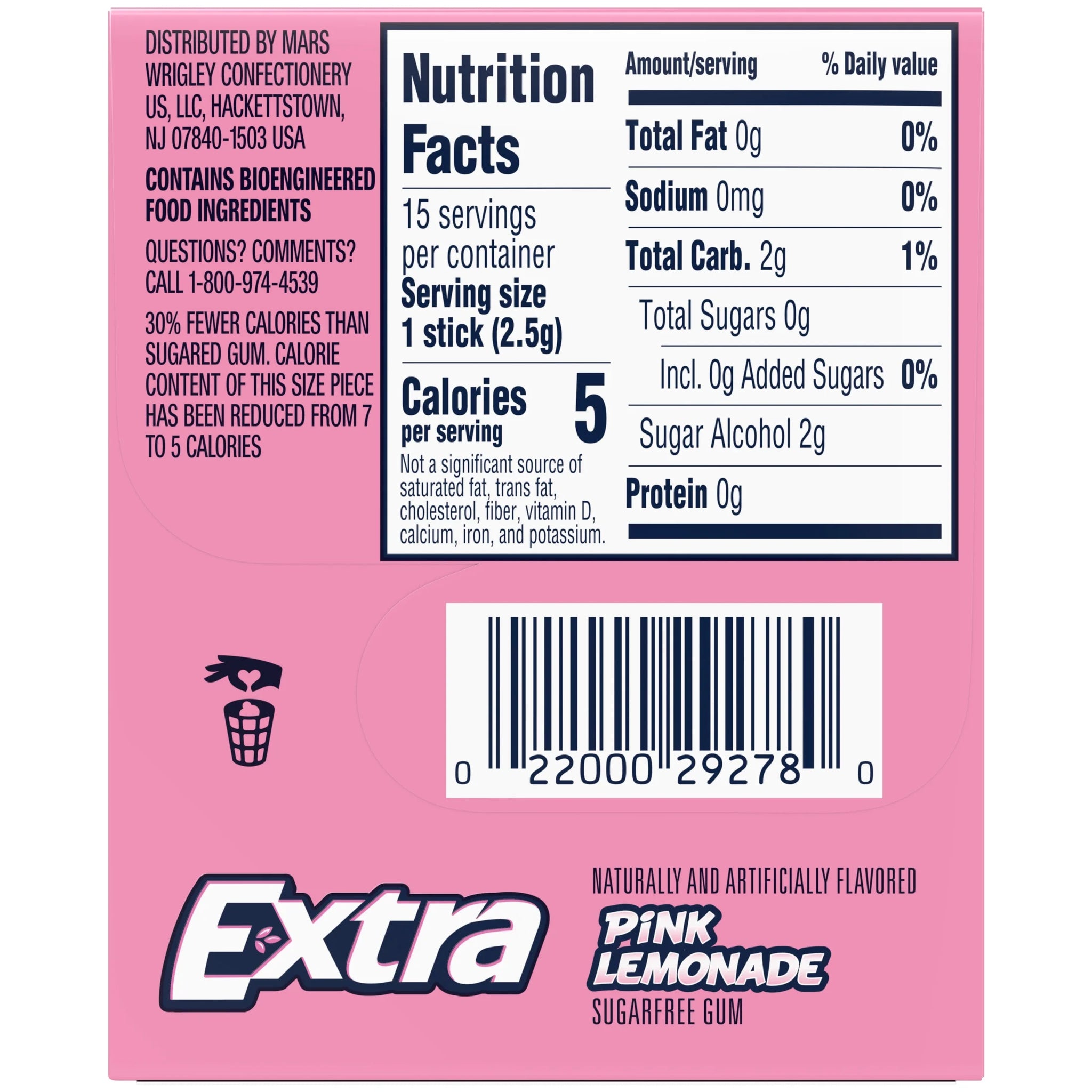 • Contains one (1) 15-piece pack of EXTRA Pink Lemonade Sugar Free Chewing Gum