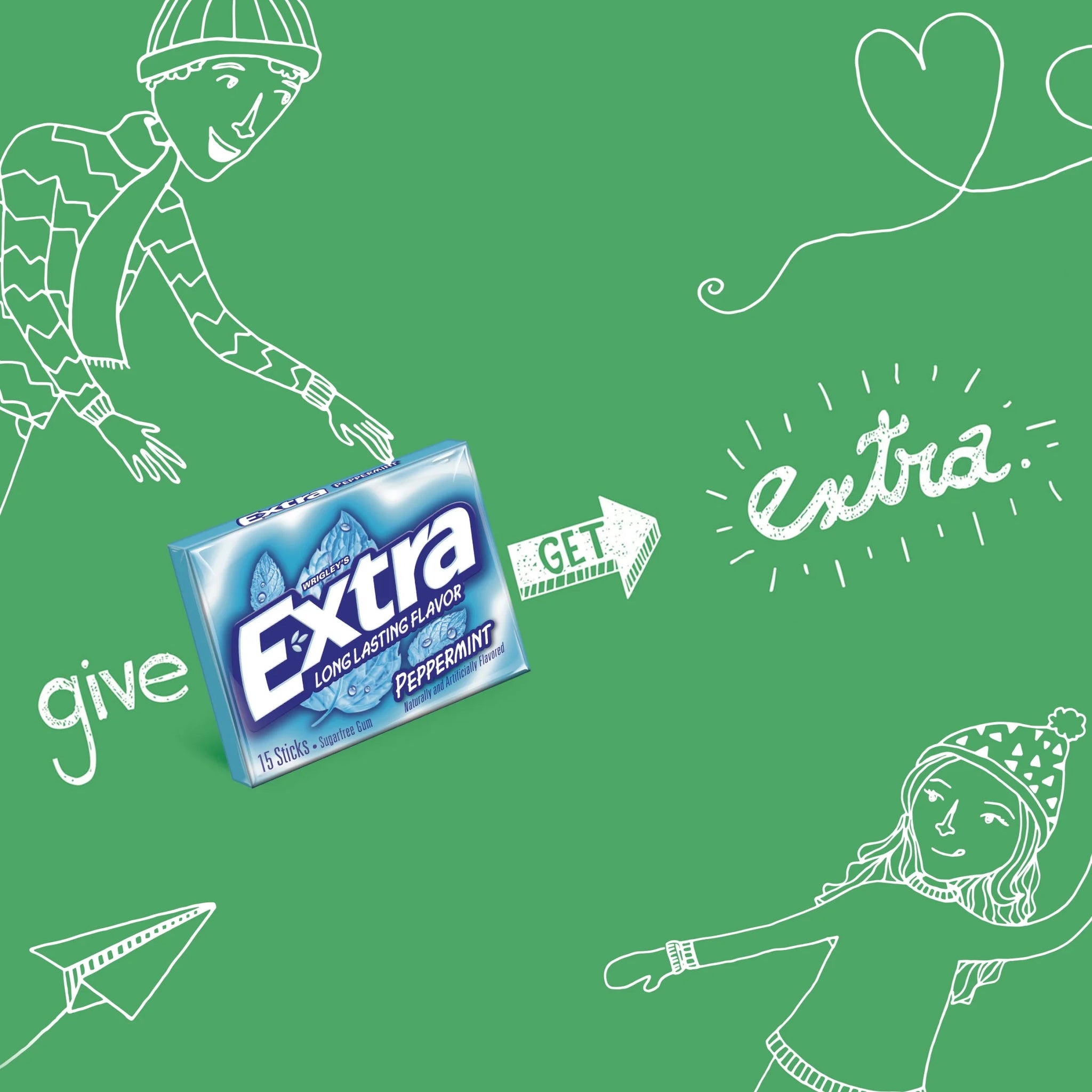 Connections can happen anywhere. So get in your EXTRA Zone with EXTRA Peppermint Sugar Free Chewing Gum. EXTRA Chewing Gum is essential to have with you at all times to not only freshen your breath with long-lasting, invigorating peppermint flavor, but to keep you dedicated to those special moments. Keep an EXTRA chewing gum pack in your car, back pocket, backpack, or tote bag. Keep minty EXTRA at your fingertips, because you never know when you need a refresh or engage in a refreshing moment. Chewing away distractions and celebrate life's meaningful with EXTRA. Add a pack of EXTRA Peppermint Sugar Free Chewing Gum to your cart now.