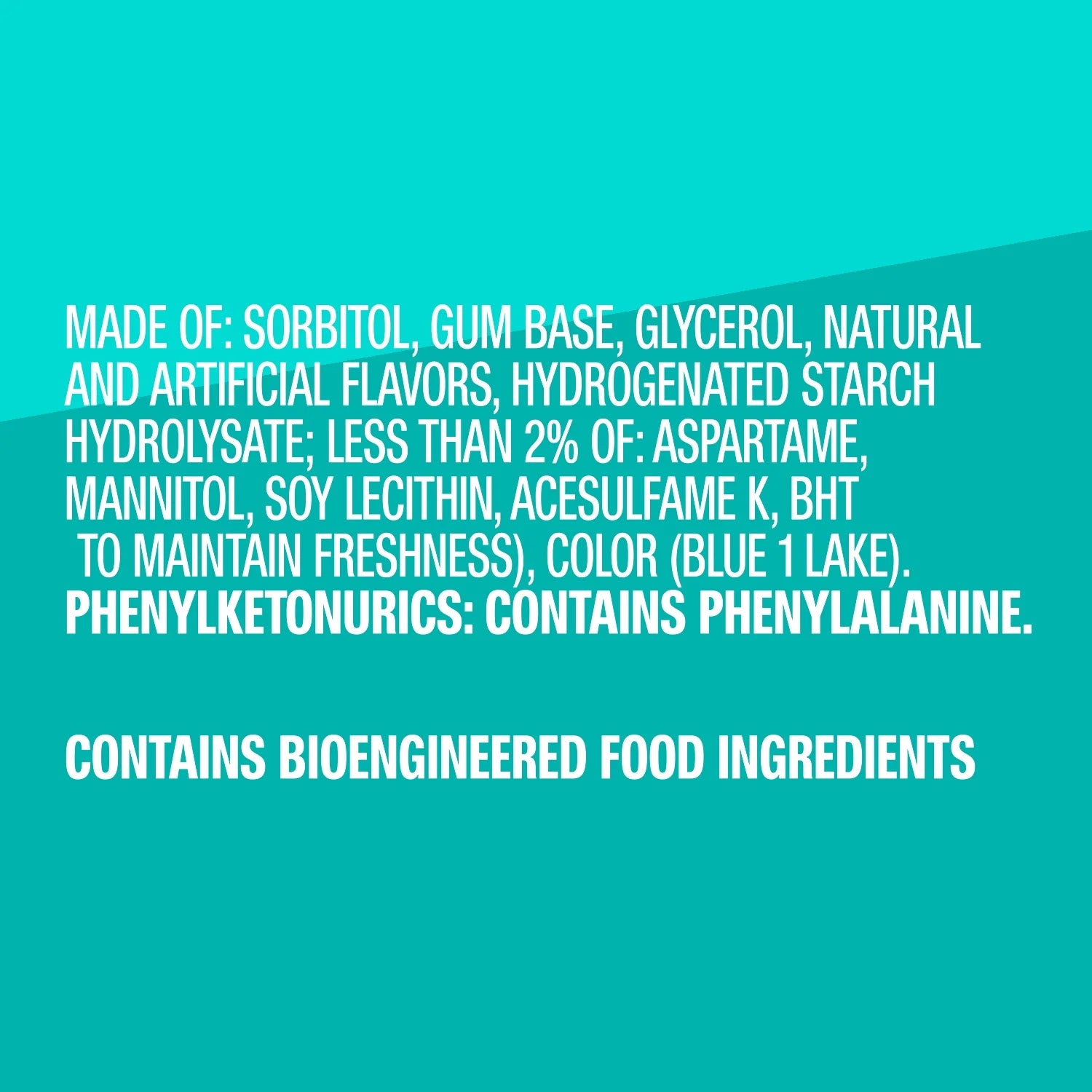 Sorbitol, Gum Base, Glycerol, Natural and Artificial Flavors, Hydrogenated Starch Hydrolysate; Less than 2% of: Aspartame, Mannitol, Soy Lecithin, Acesulfame K, BHT (to Maintain Freshness), Color (Blue 1 Lake)./div>