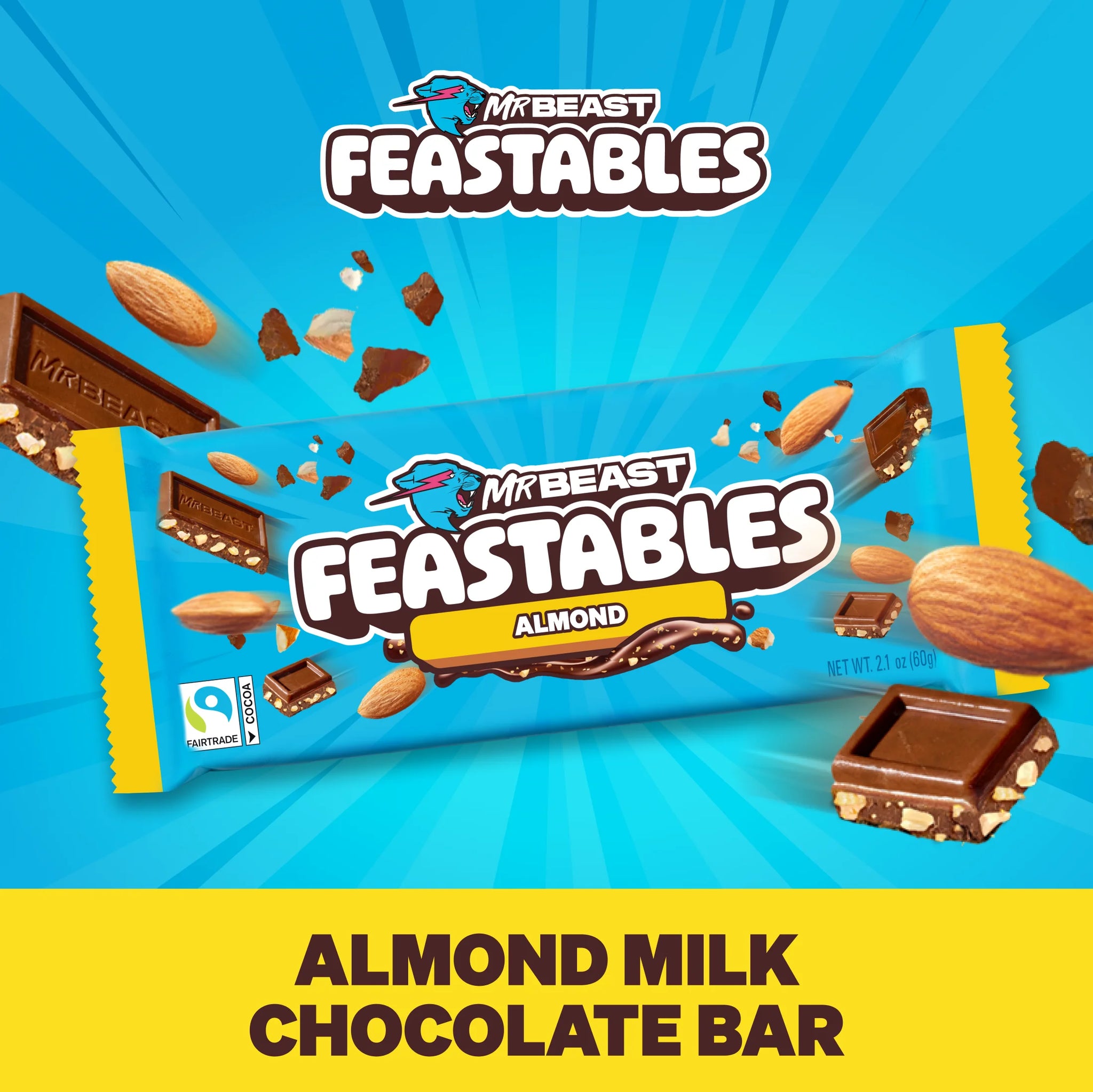- New bars, even better taste: Experience the sweet, rich and delectable flavor of the reformulated Feastables MrBeast Almond Chocolate Bar, crafted for ultimate satisfaction.
