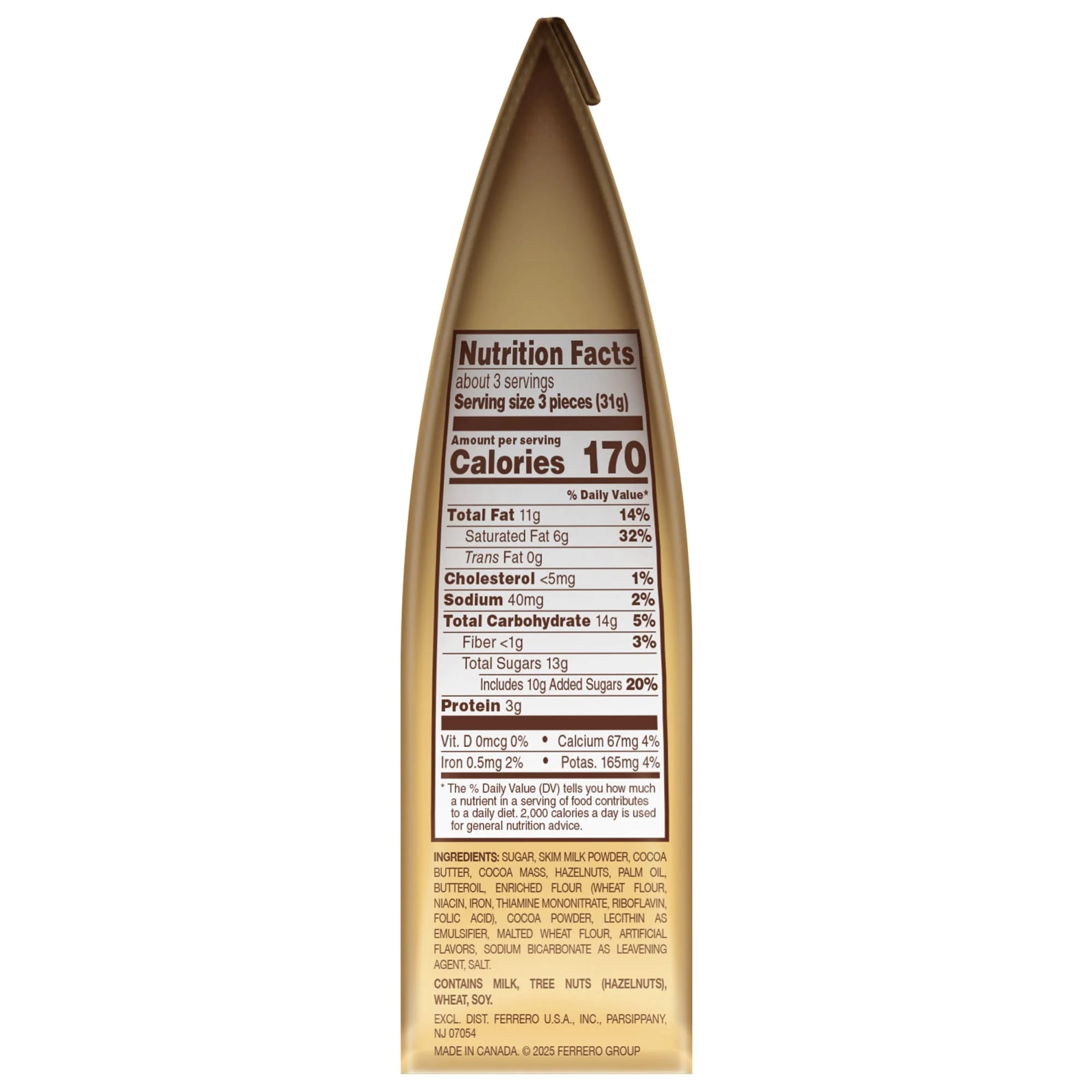 Indulge in the refined richness of Ferrero Rocher Assorted chocolate squares, crafted for moments of everyday luxury. Each piece combines an exquisite assortment of 3 flavors: Milk Hazelnut, Dark Hazelnut, and White Hazelnut. Try any flavor in this sophisticated combination of flavors and delight your senses with smooth chocolate, crunchy crispies, roasted hazelnuts, and creamy filling. All elegantly presented in individually wrapped chocolates. These indulgent Ferrero Rocher Assorted chocolate squares come in a 10-pack of individually wrapped premium chocolates, offering the perfect balance of quality and convenience. Whether you're treating yourself, stocking up for informal gatherings, or assembling a chocolate assortment gift, Ferrero Rocher Assorted chocolate squares bring elevated taste to any moment. Celebrate with Ferrero Rocher across all seasons, whether it’s Valentine’s Day, Easter, or Mother’s Day - Ferrero Rocher chocolate squares are ideal for thoughtful, everyday gestures. Whether you're thanking a teacher, showing appreciation for a caregiver, or surprising a loved one, these indulgent treats also make elegant stocking stuffers during the holidays. Unwrap the Ferrero Rocher premium chocolate squares to reveal its distinctive shape and begin a journey of indulgent delight.