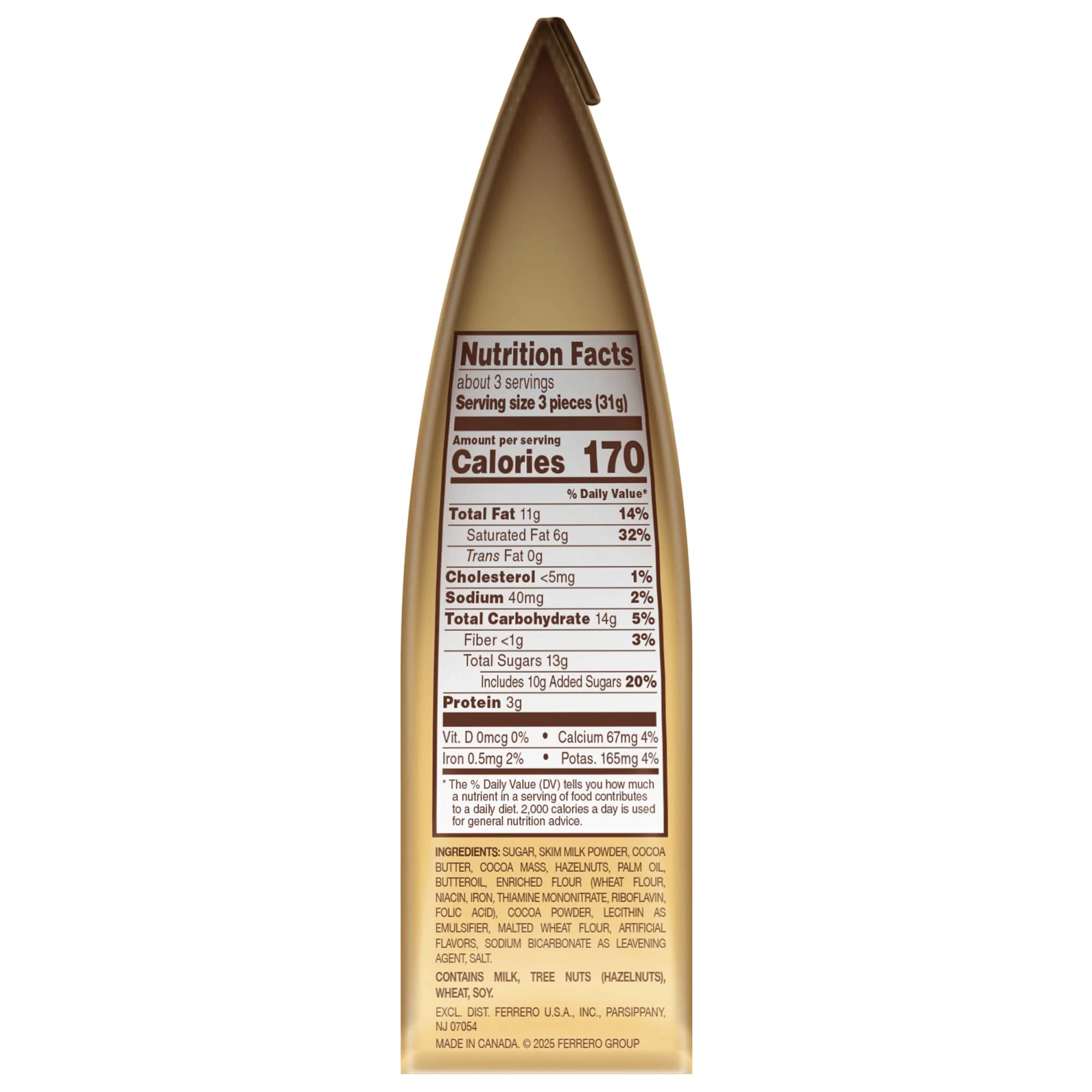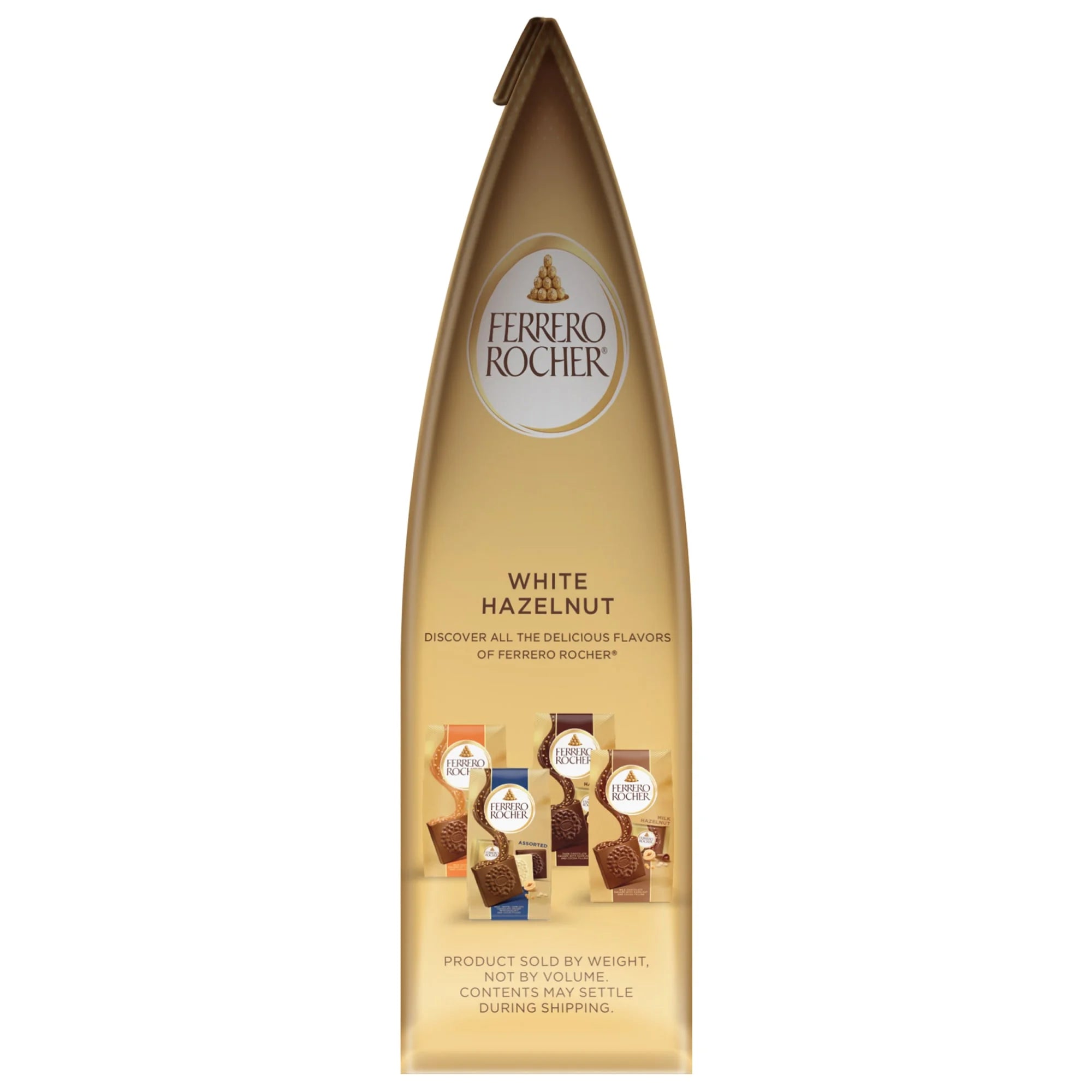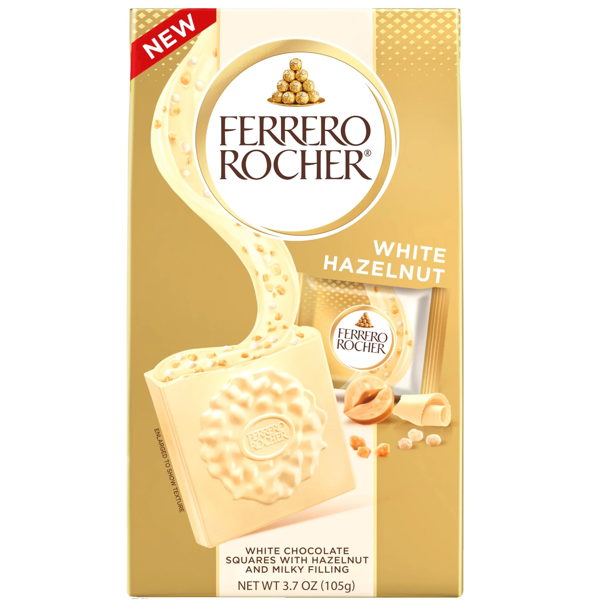 Indulge in the refined richness of Ferrero Rocher White Hazelnut chocolate squares, crafted for moments of everyday luxury. Each piece combines an elegant white chocolate shell is layered with delicately roasted hazelnuts, crunchy crispies, and a creamy milky filling, resulting in a refined multi-sensorial taste experience. All elegantly presented in individually wrapped chocolates. These indulgent Ferrero Rocher White Hazelnut chocolate squares come in a 10-pack of individually wrapped premium chocolates, offering the perfect balance of quality and convenience. Whether you're treating yourself, stocking up for informal gatherings, or assembling a chocolate assortment gift, Ferrero Rocher White Hazelnut chocolate squares bring elevated taste to any moment. Celebrate with Ferrero Rocher across all seasons, whether it’s Valentine’s Day, Easter, or Mother’s Day - Ferrero Rocher chocolate squares are ideal for thoughtful, everyday gestures. Whether you're thanking a teacher, showing appreciation for a caregiver, or surprising a loved one, these indulgent treats also make elegant stocking stuffers during the holidays. Unwrap the Ferrero Rocher Premium chocolate squares to reveal its distinctive shape and begin a journey of indulgent delight.