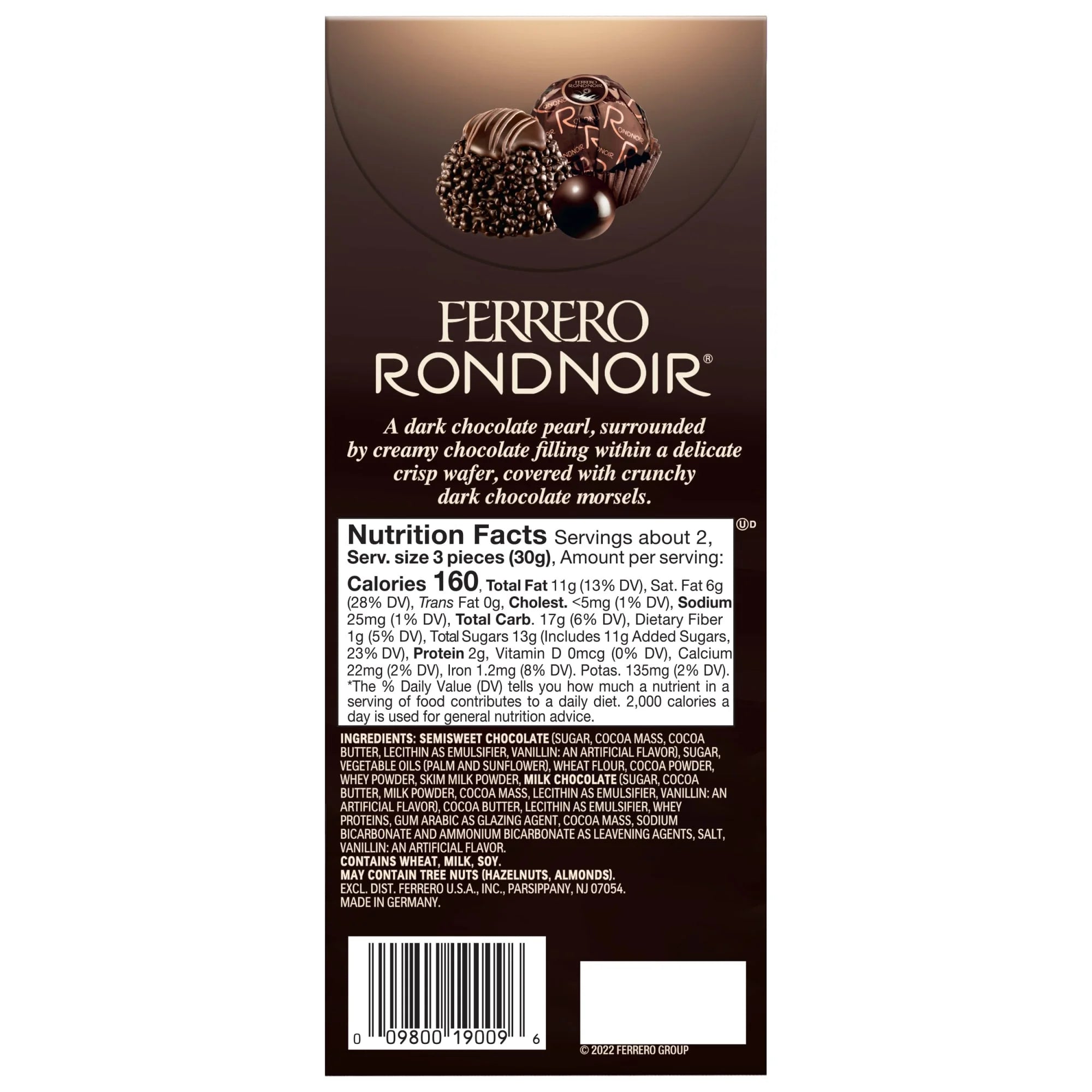 - GOURMET CHOCOLATE GIFT BOX: Share the indulgent taste of Ferrero Rondnoir with this 8-count, stand-up bag of individually wrapped candy for gifting